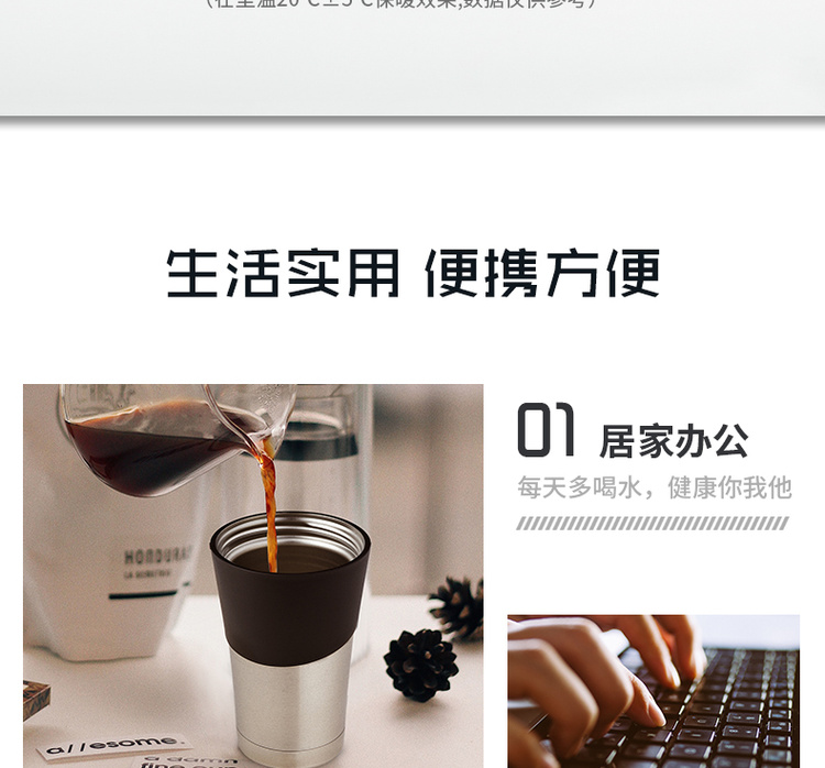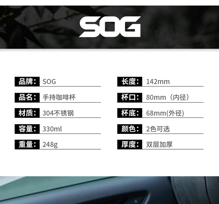 SOG索格 330ml不锈钢窄口便携随行咖啡杯直饮水杯隔热防烫杯子