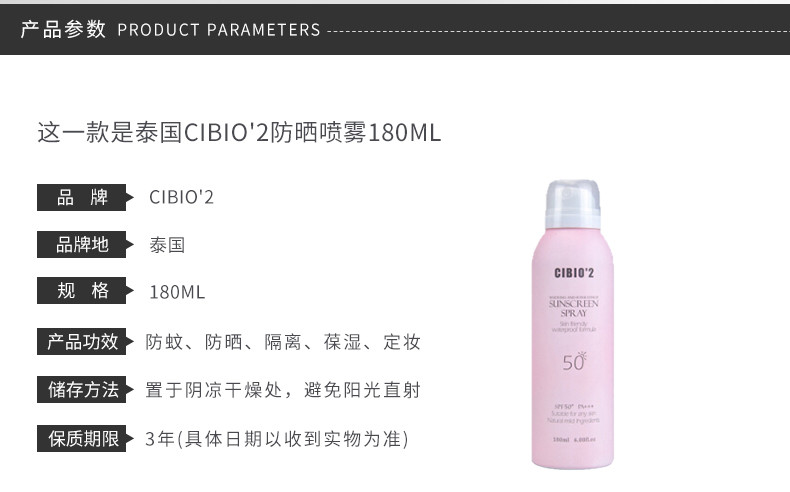 CIBIO'2 防晒喷雾 粉色 180ml 泰国