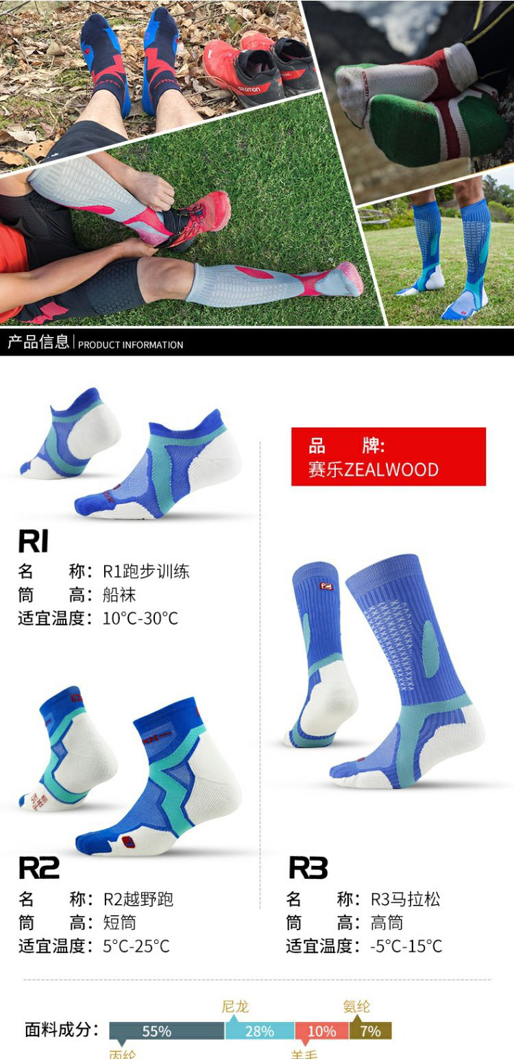 成分:55%丙纶、10%美利奴羊毛、28%尼龙、7%氨纶。