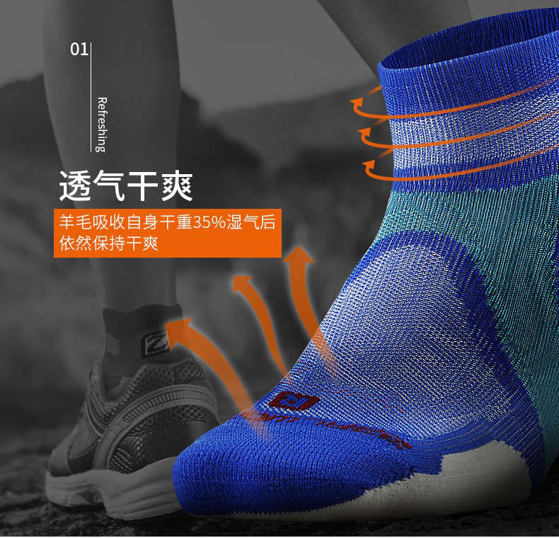 这个混合面料,强度和弹性十足,加上美利奴羊毛的加入,可以让袜子更加亲肤,速干,防臭。
