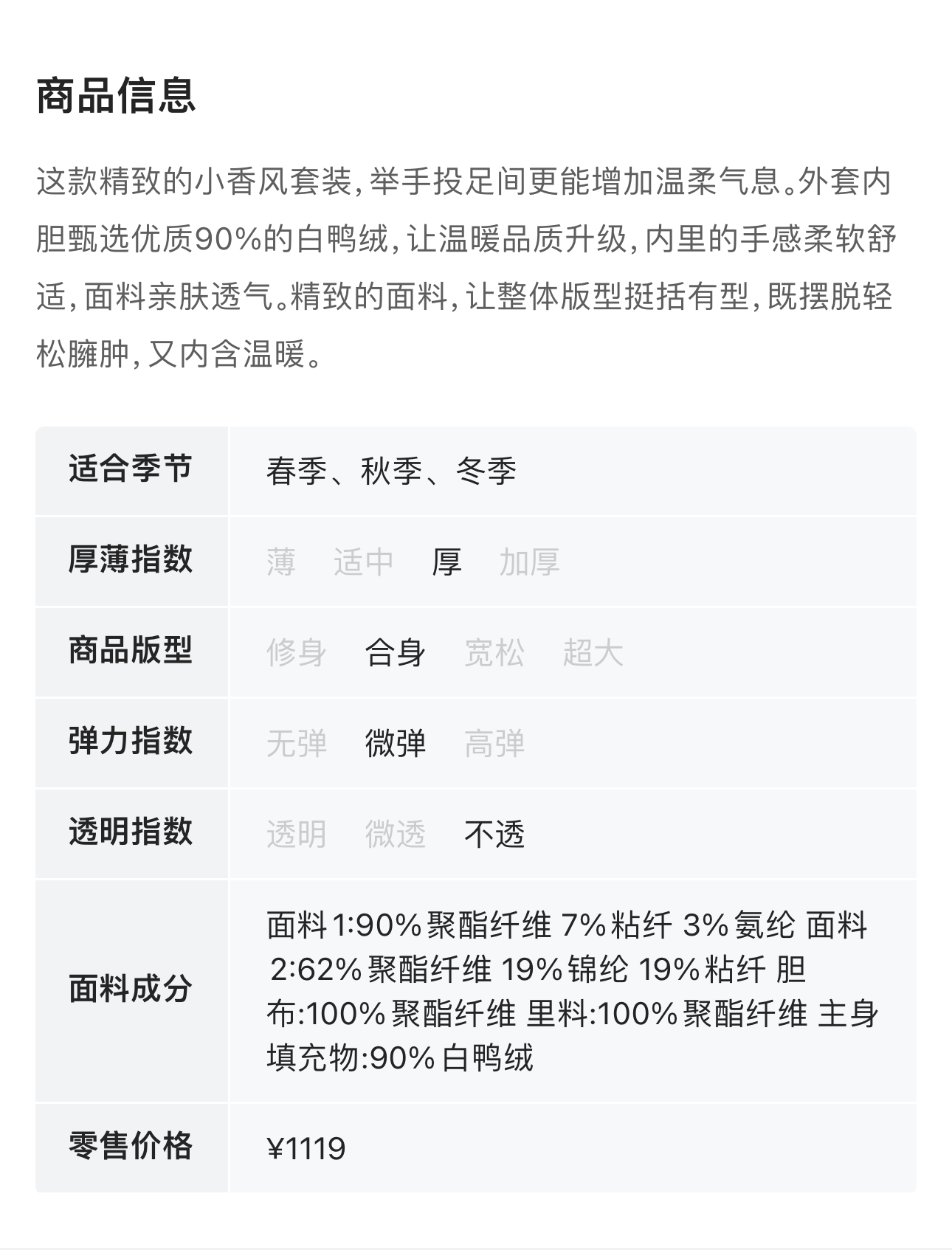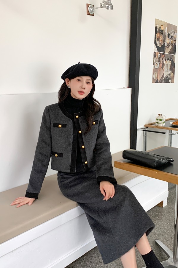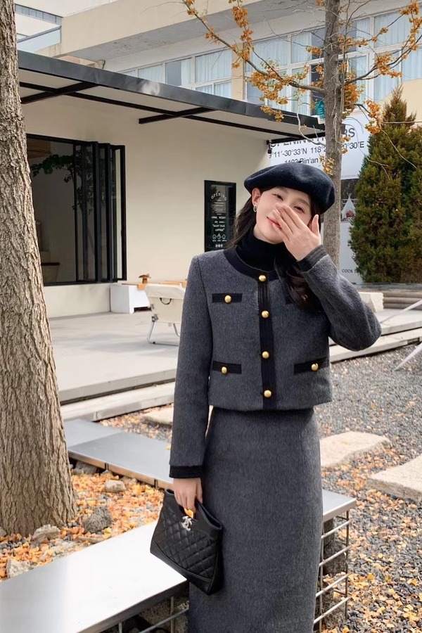 ELLA JADE 深灰色小香风羽绒外套半裙套装 19701