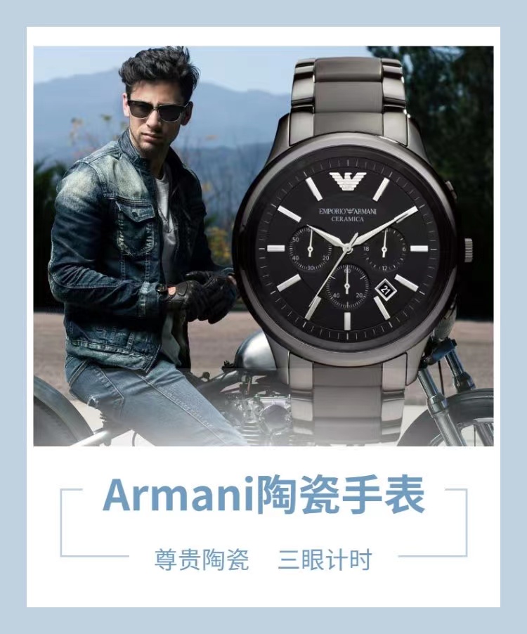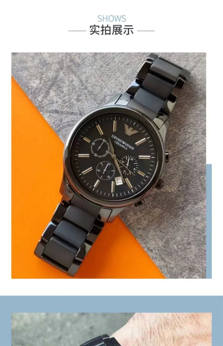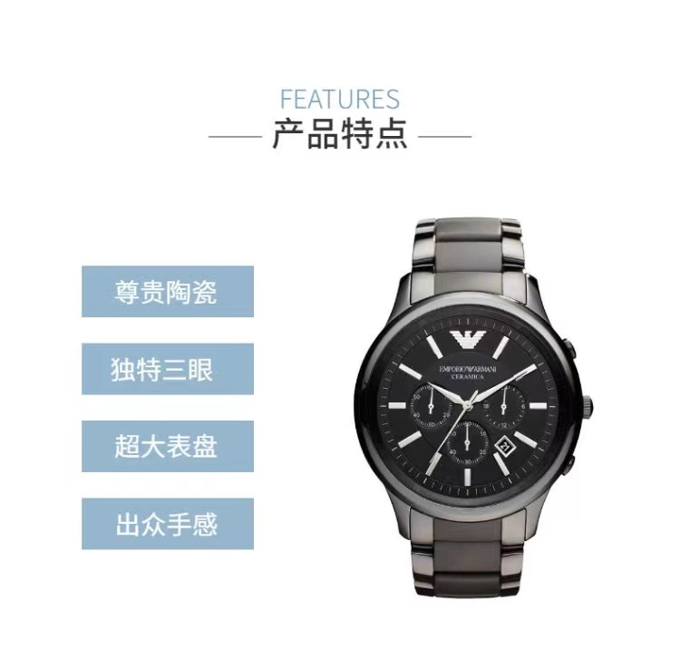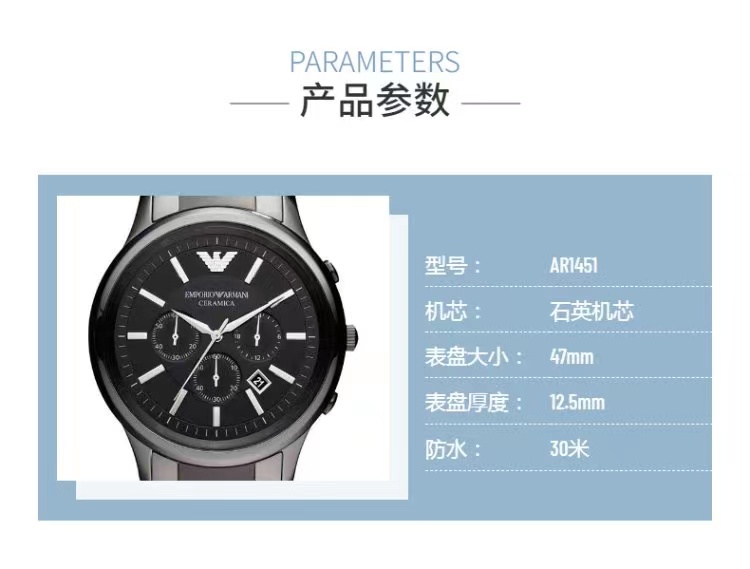 Armani阿玛尼手表男黑色陶瓷表带大表盘石英表AR1451