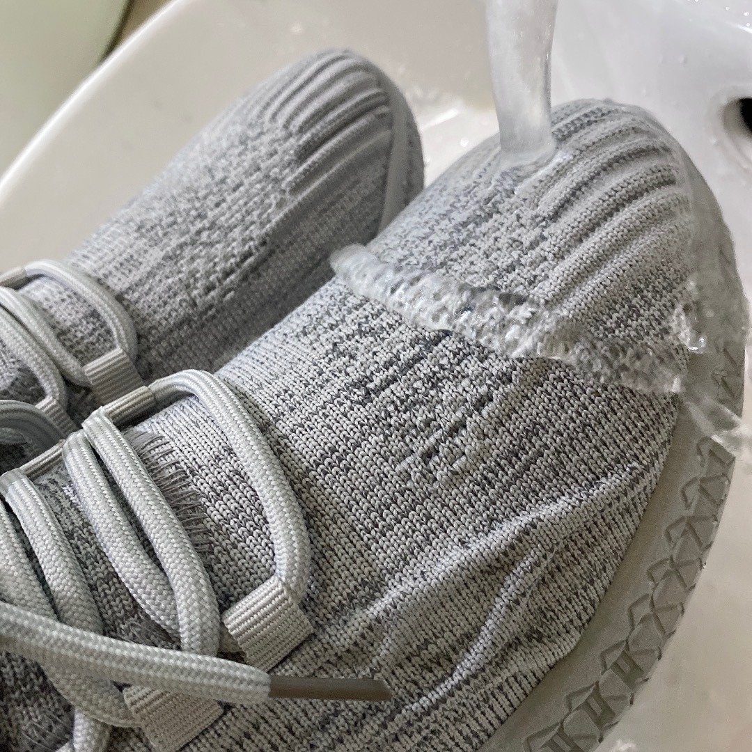 2、鞋面采用飞织面料,跟普通鞋相比,有防溅水防油污的效果,日常情况下足够用。但用水对着冲或浸泡肯定也会进水的,不能替代雨鞋哈;
