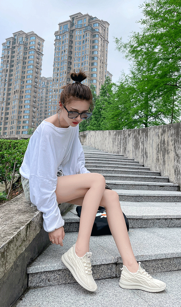 飞织鞋面的质地,轻薄触感,非常透气舒适