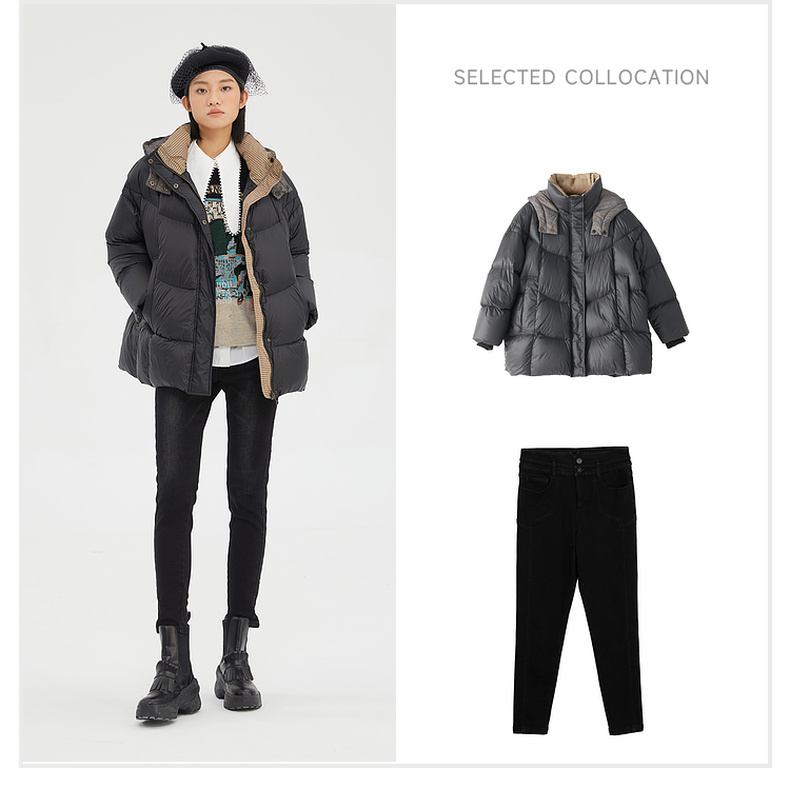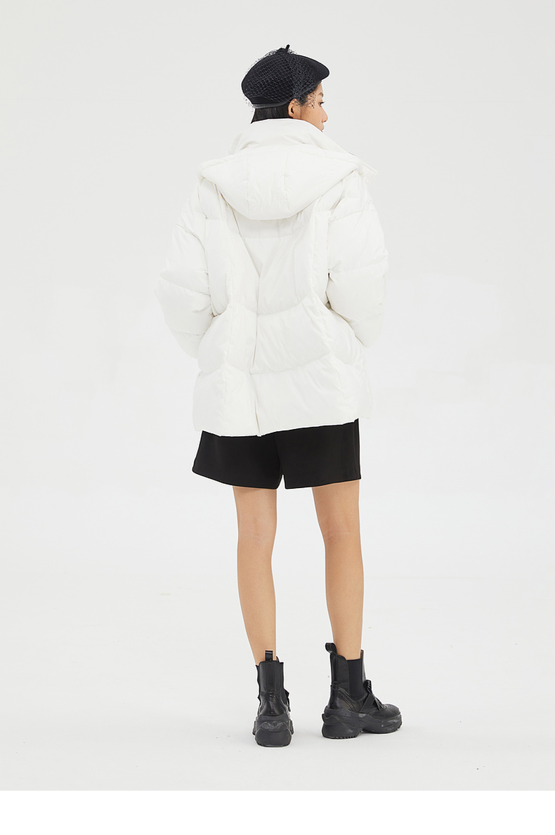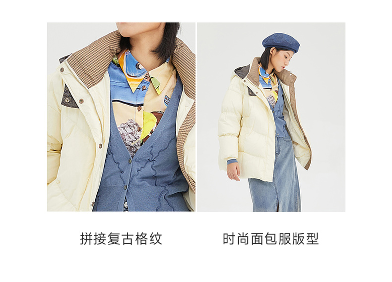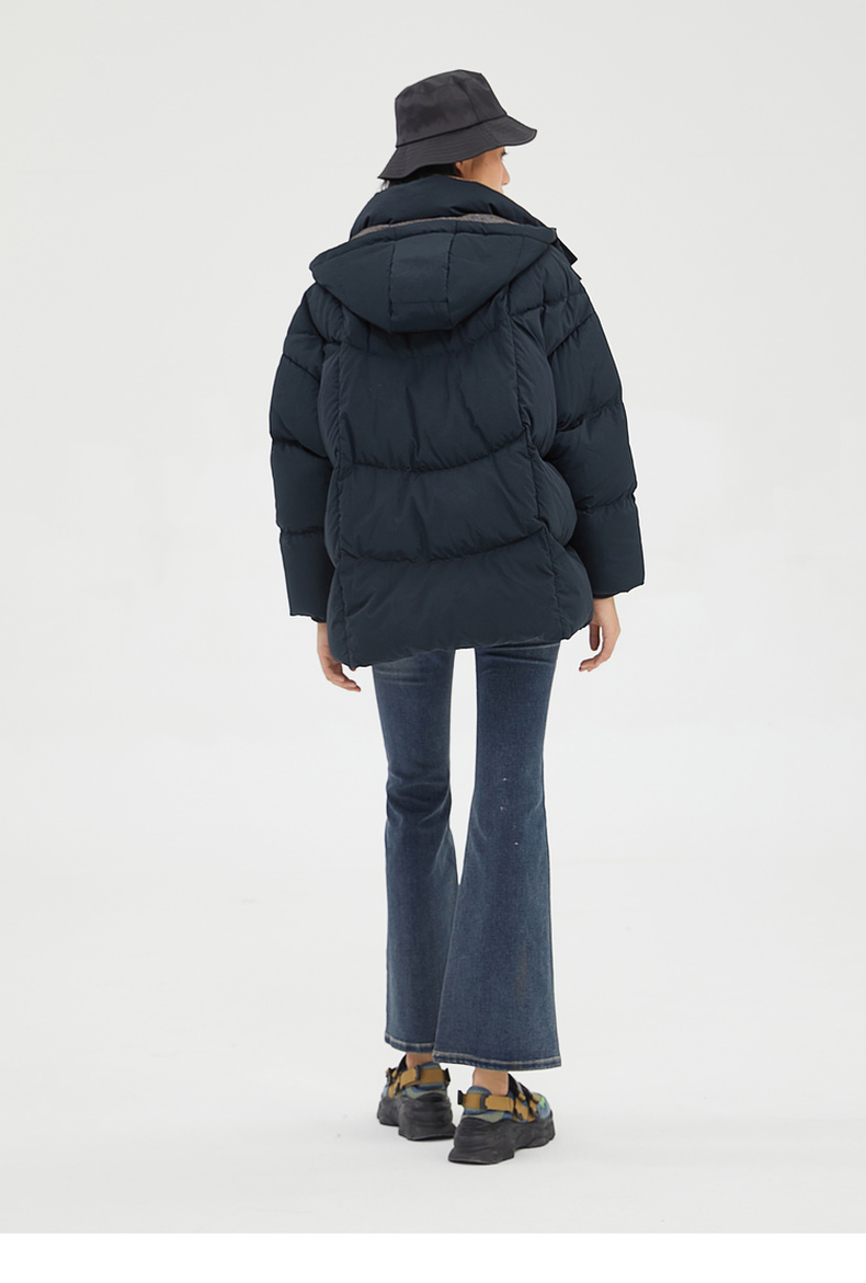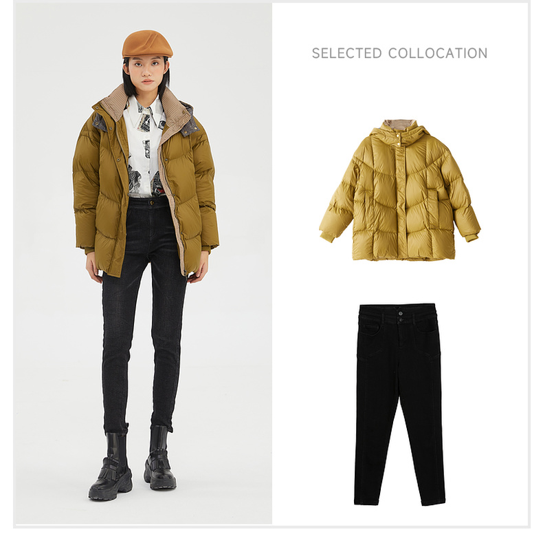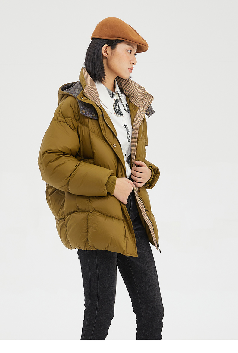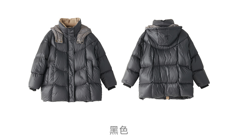 谜底2022冬季新品休闲时尚连帽面包服宽松中长羽绒服女229MY6184