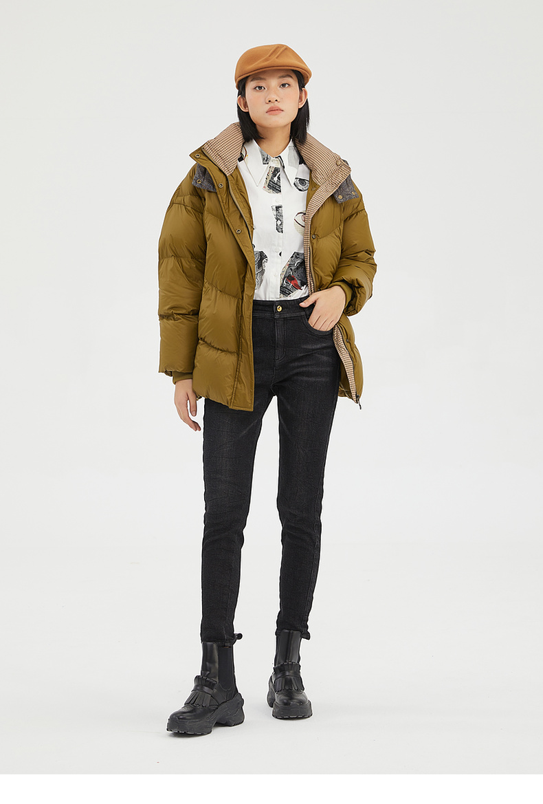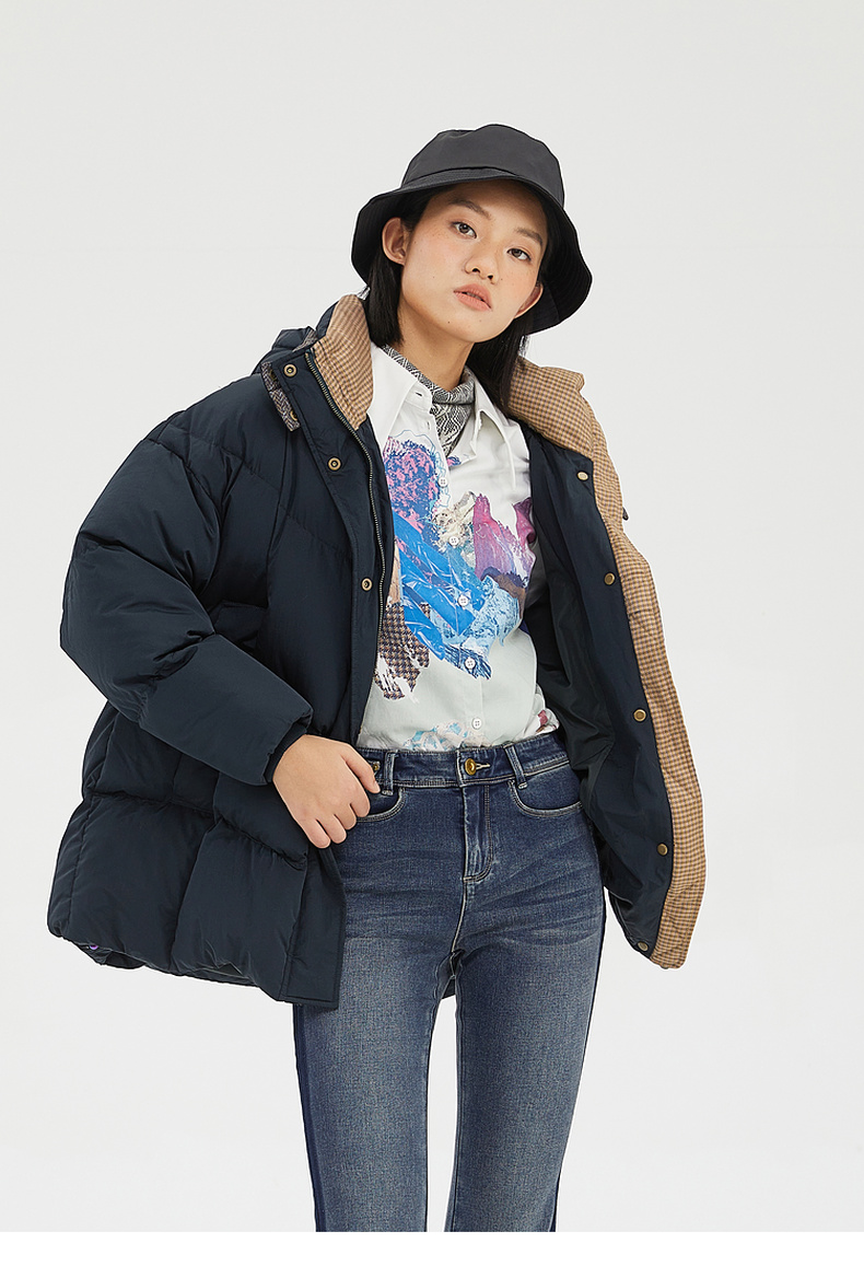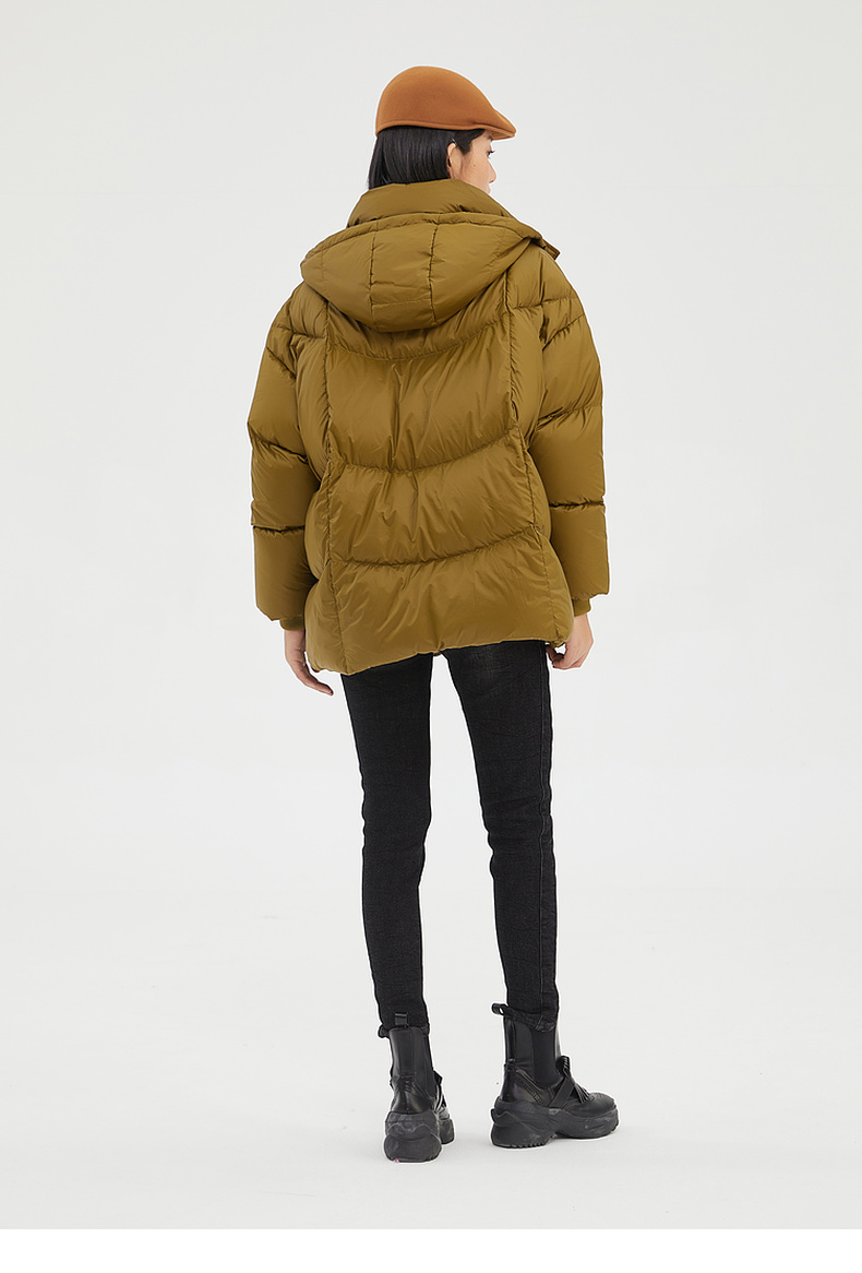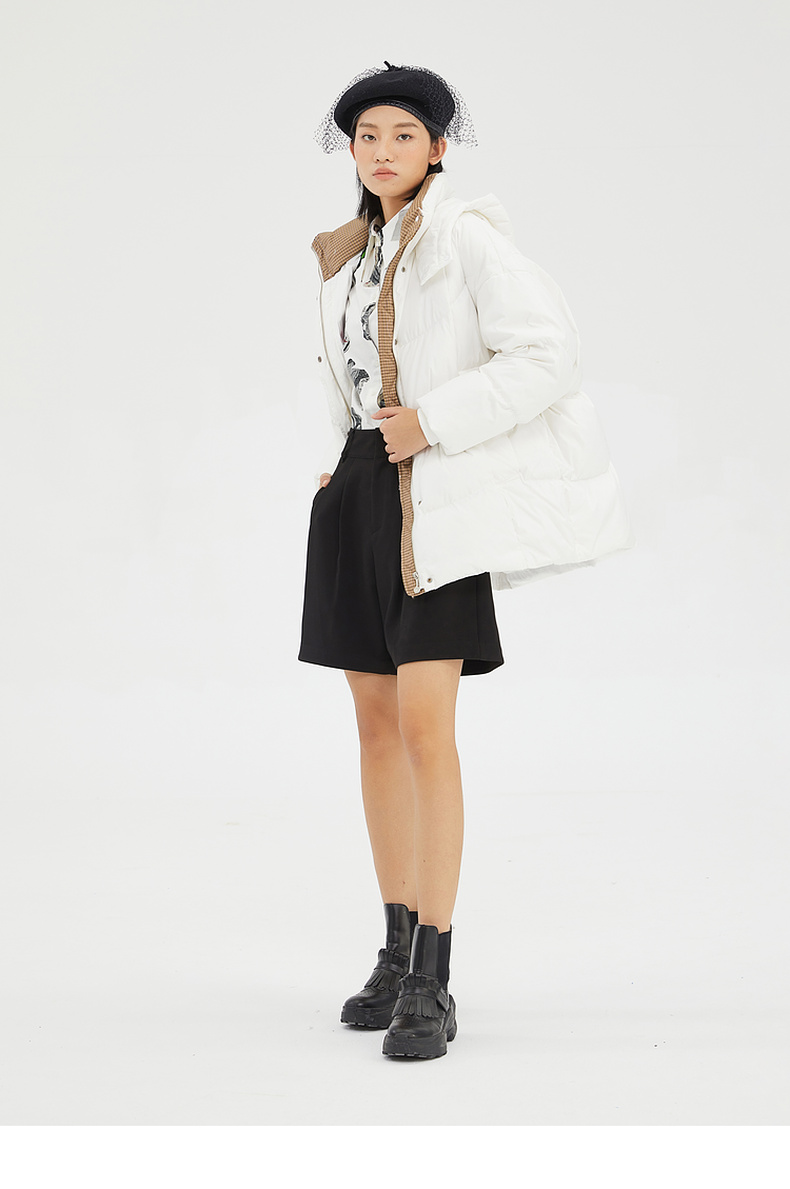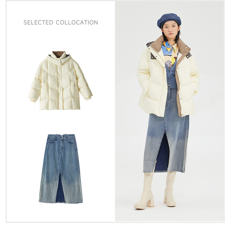 谜底2022冬季新品休闲时尚连帽面包服宽松中长羽绒服女229MY6184