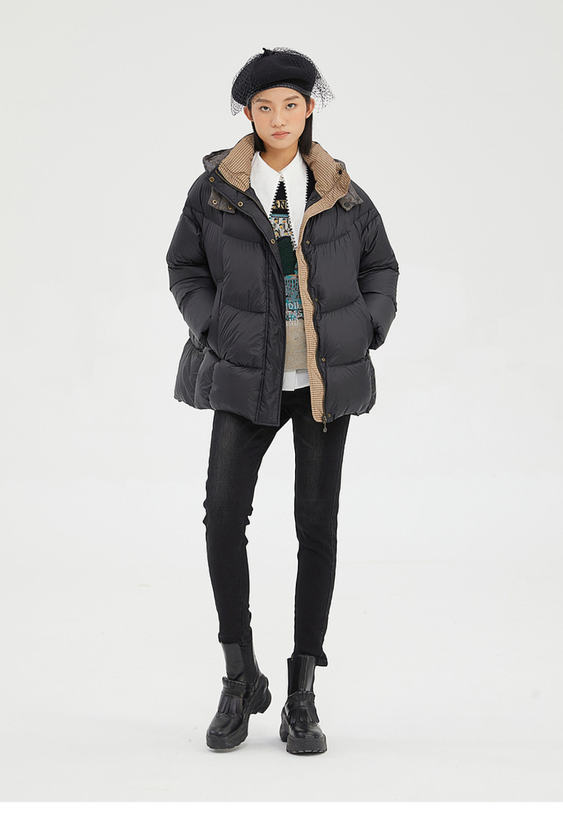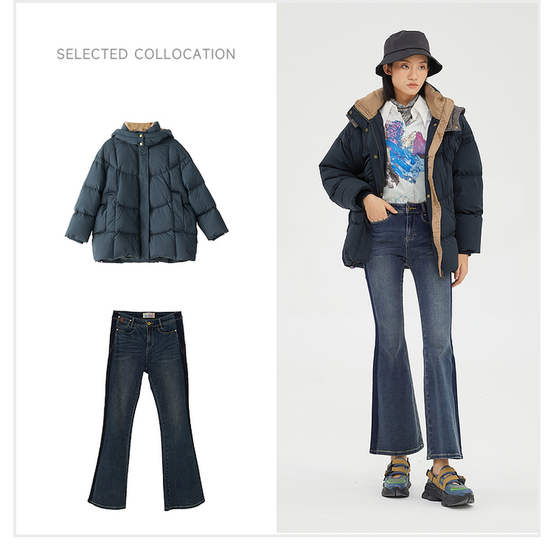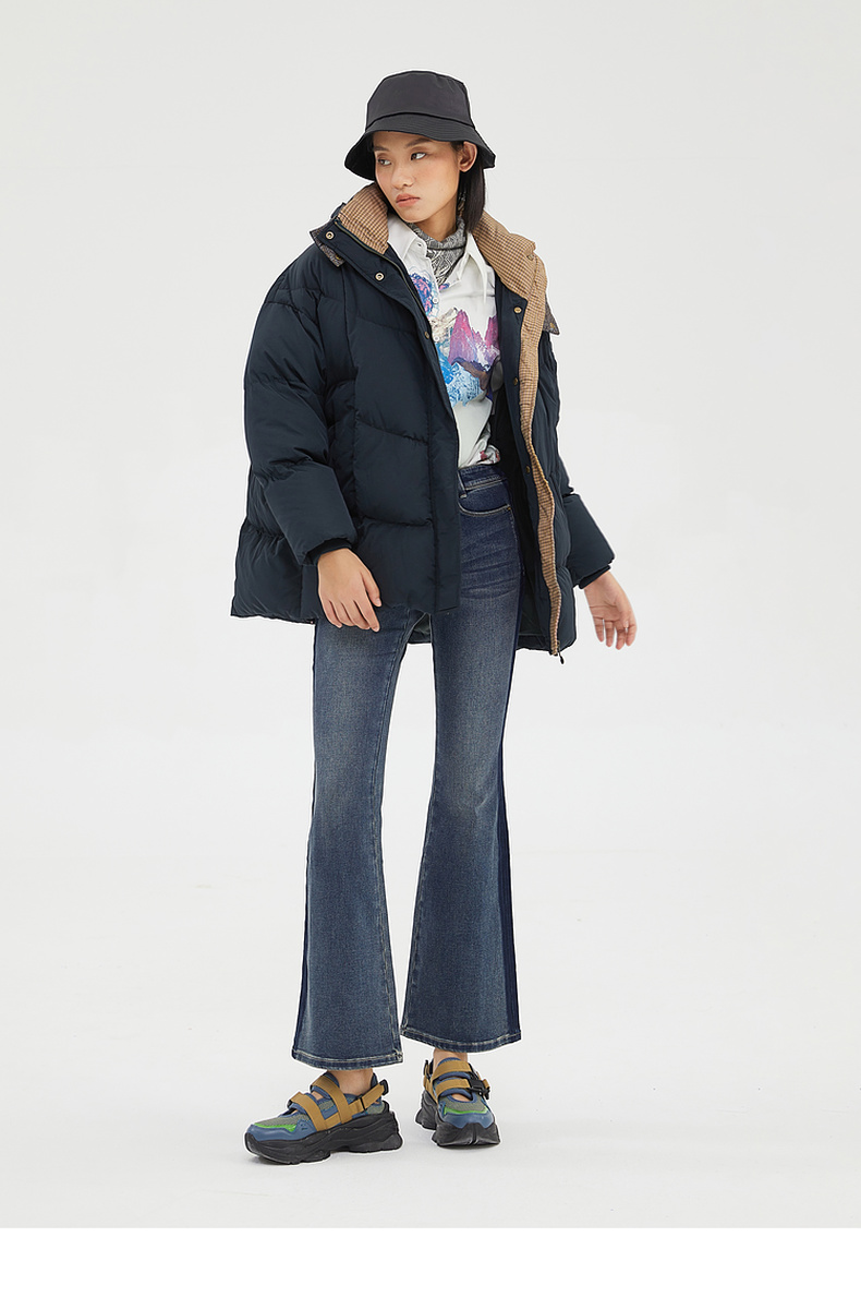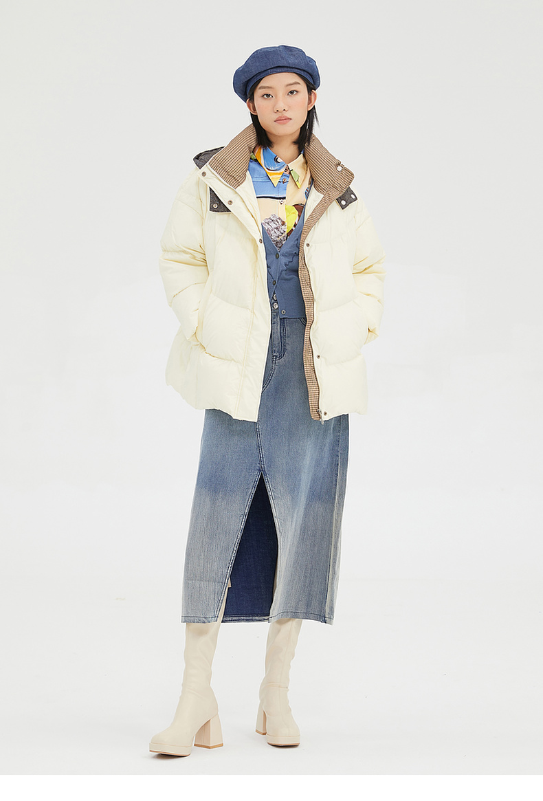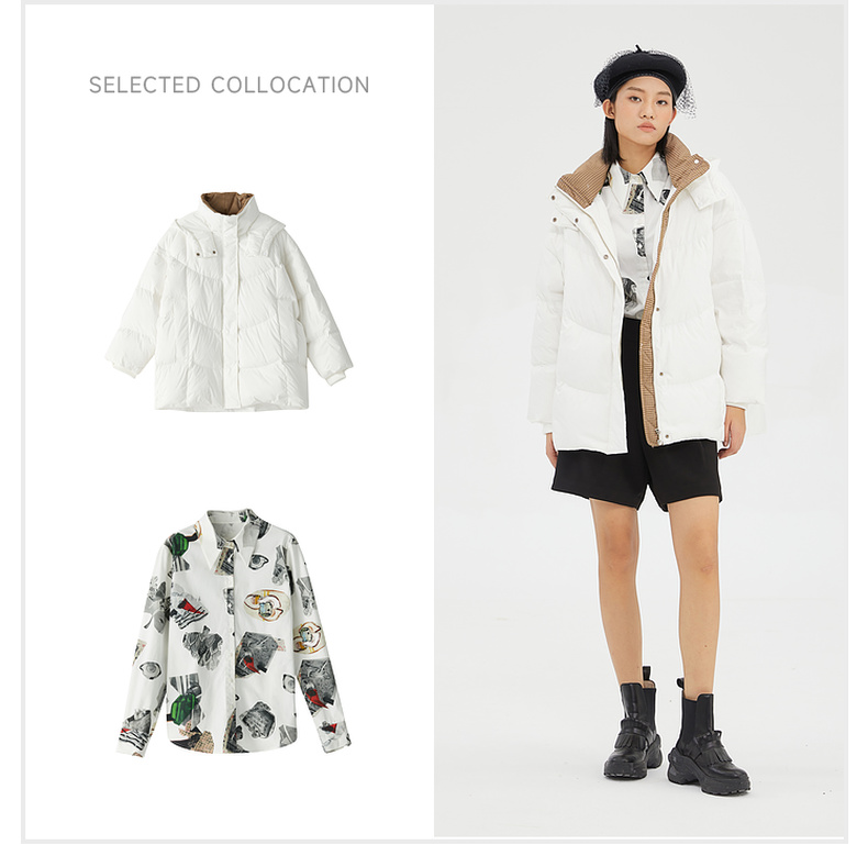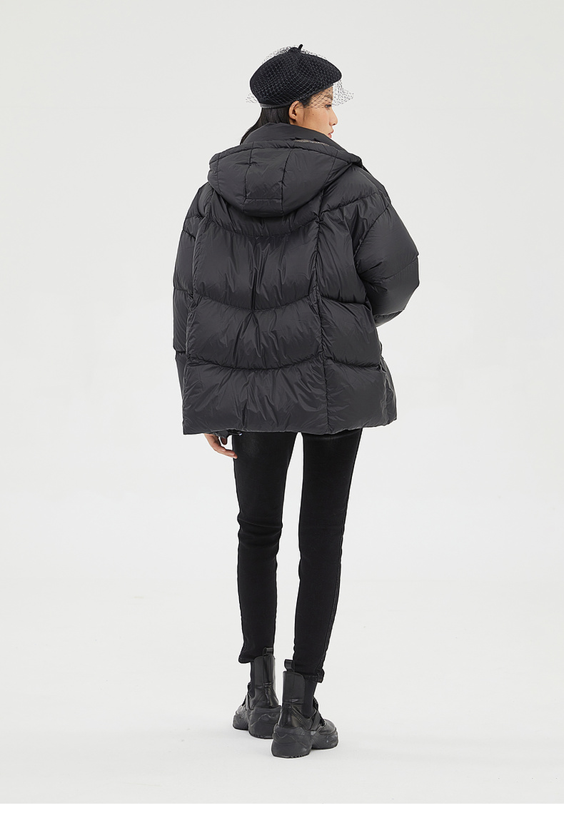 谜底2022冬季新品休闲时尚连帽面包服宽松中长羽绒服女229MY6184