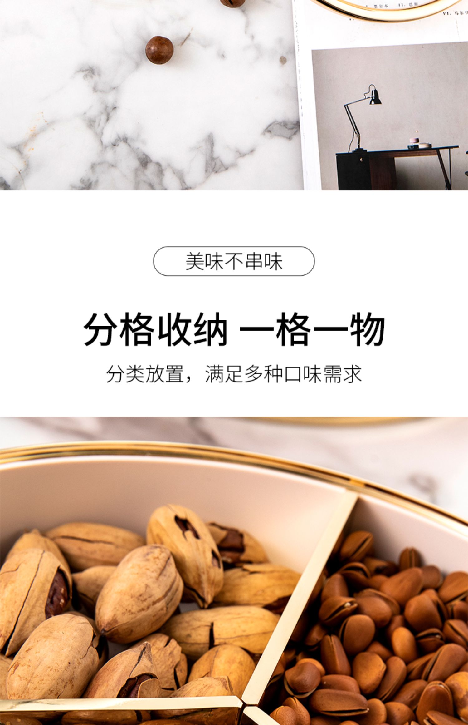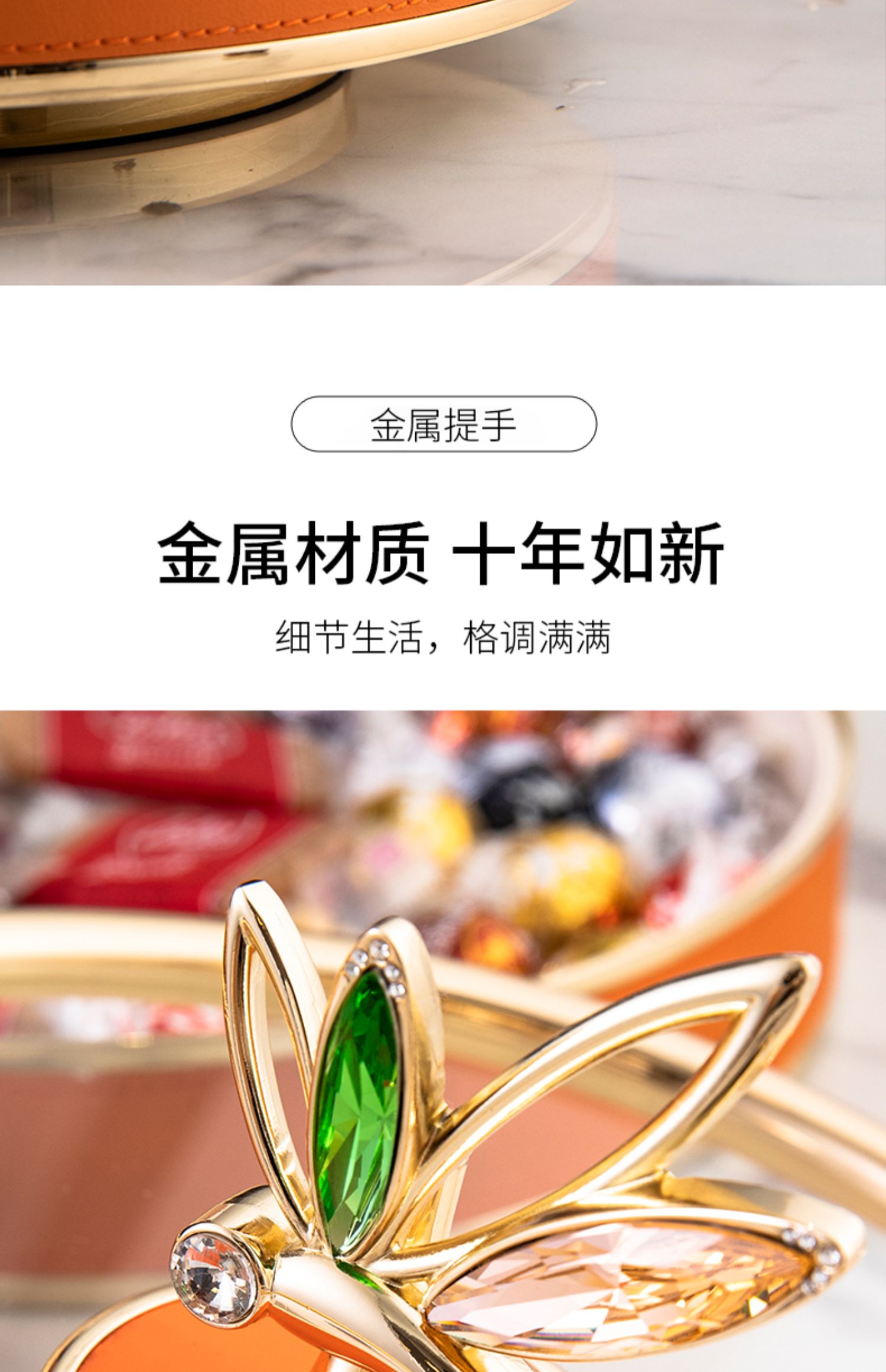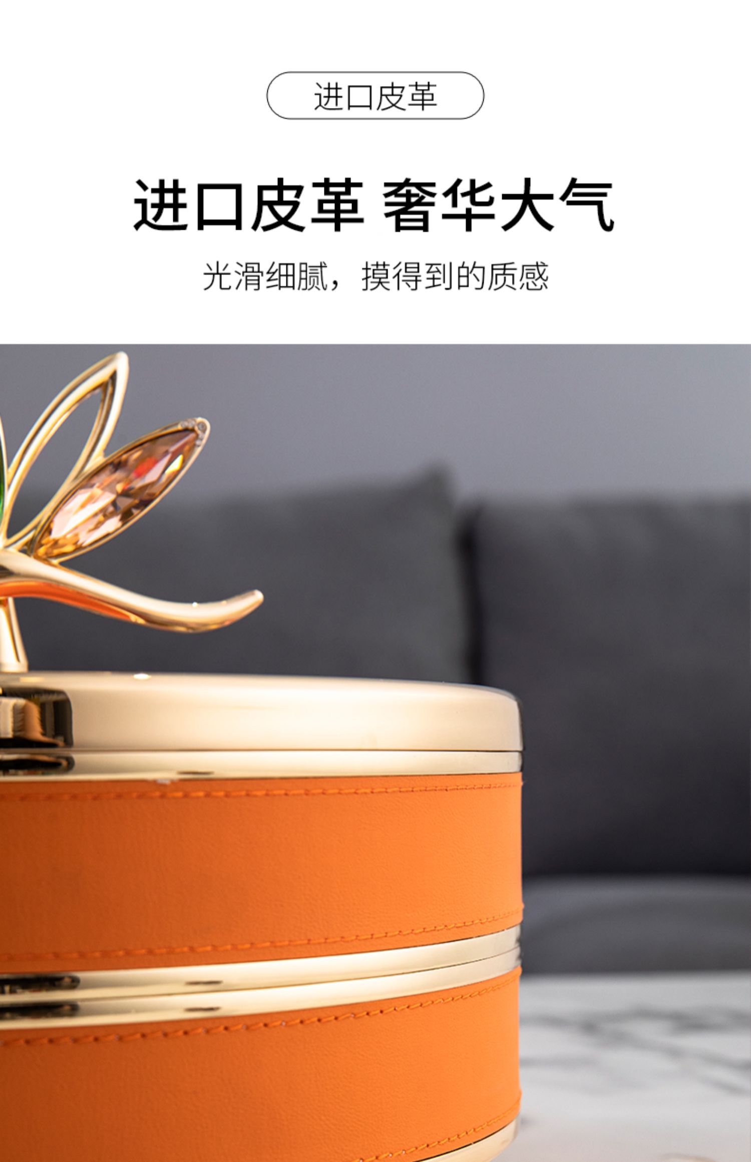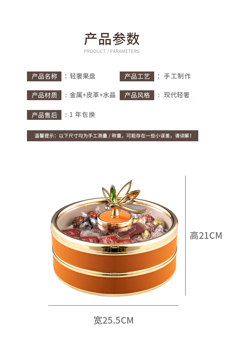 高档轻奢密封干果收纳盒客厅茶几水果盘双层旋转点心盒零食糖果盒珐琅彩蜻蜓双层果盘 (合金+皮革款)