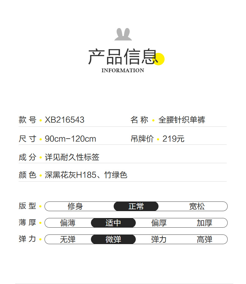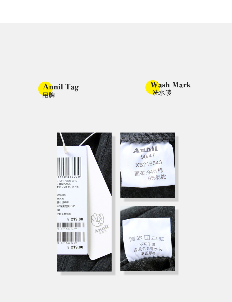 安奈儿男童全腰针织单裤xb216543