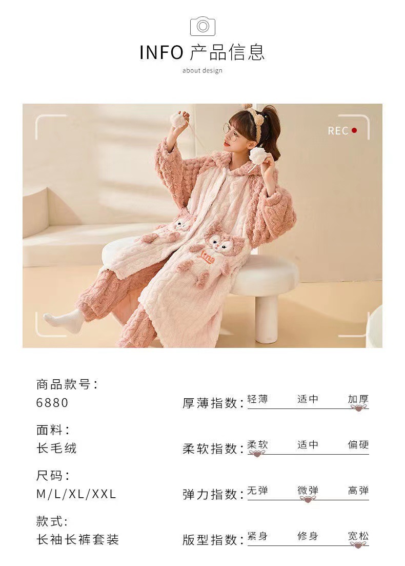 珊瑚绒睡衣玲娜贝儿带耳朵套装连帽卡通可爱加厚睡裙女家居服外穿
