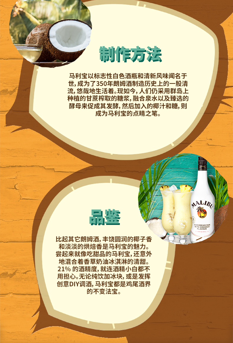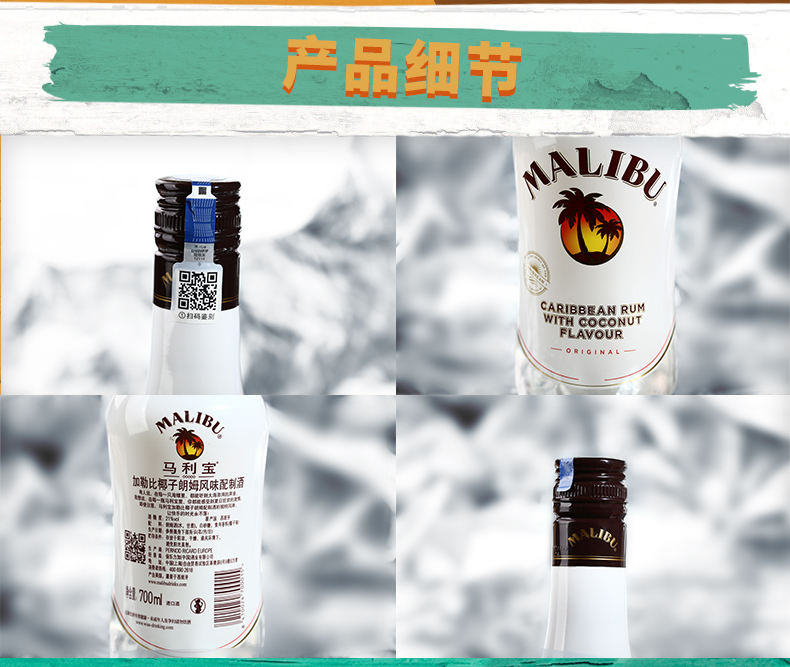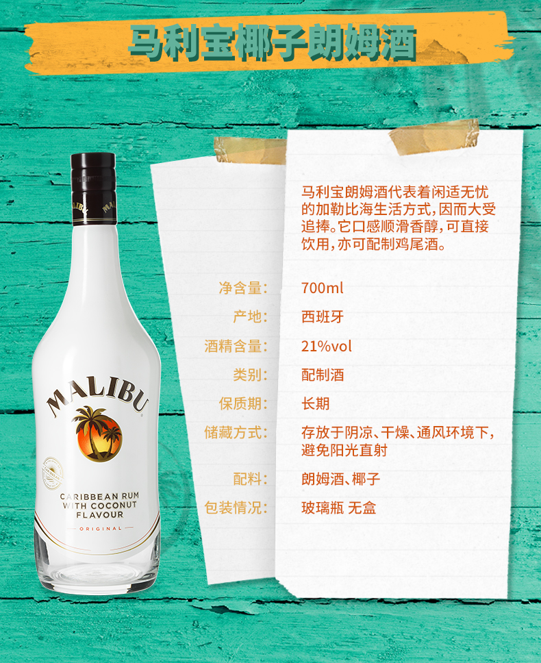 马利宝朗姆酒 保乐力加椰子风味朗姆酒 700ml