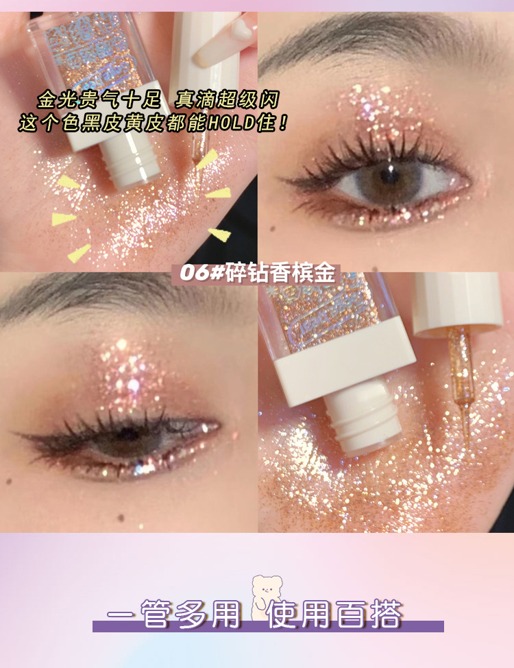 「9.9元包邮!璨炫色」Gege bear戈戈小熊液体晶璨炫色眼影液 水光亮片卧蚕提亮高光涂抹美妆