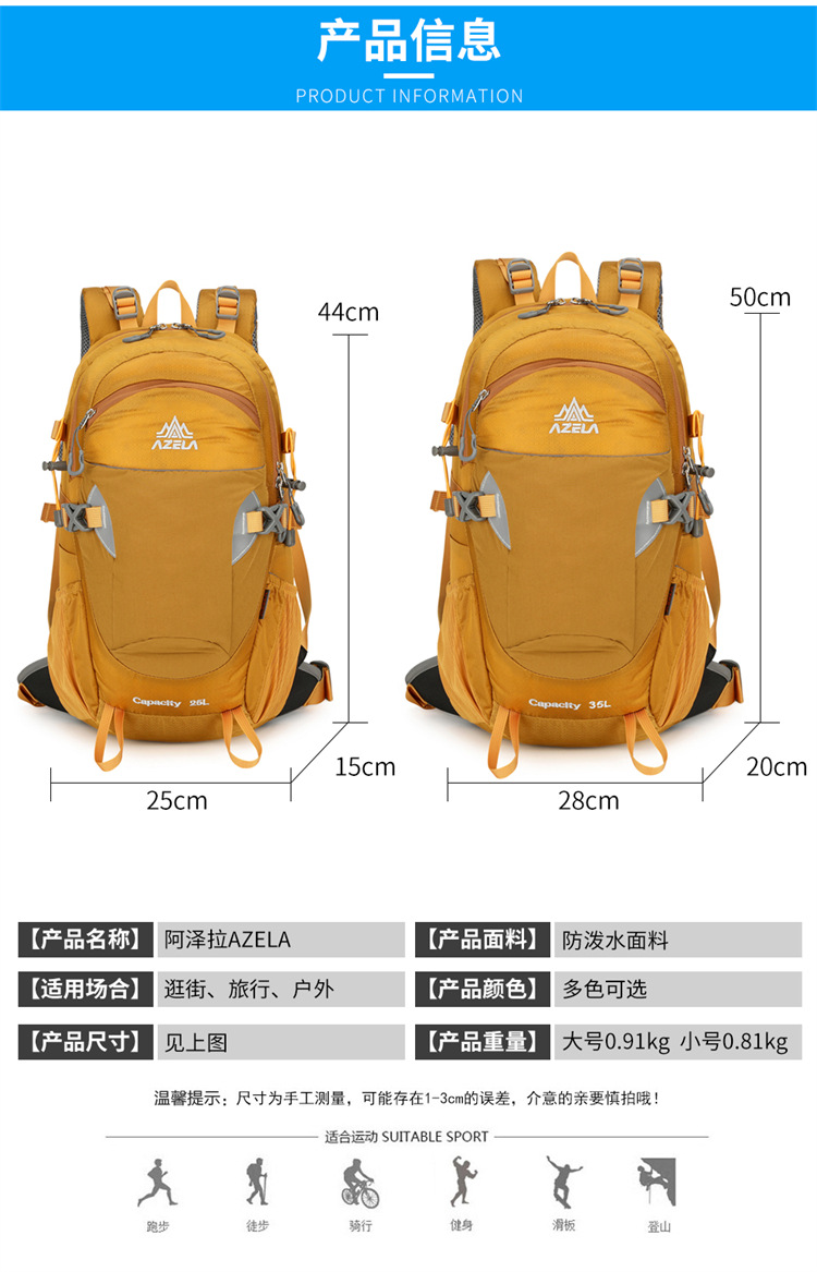 AZELA阿泽拉 新款户外多功能登山包 男女款减负护脊大容量轻便登山包 登山运动专用背包