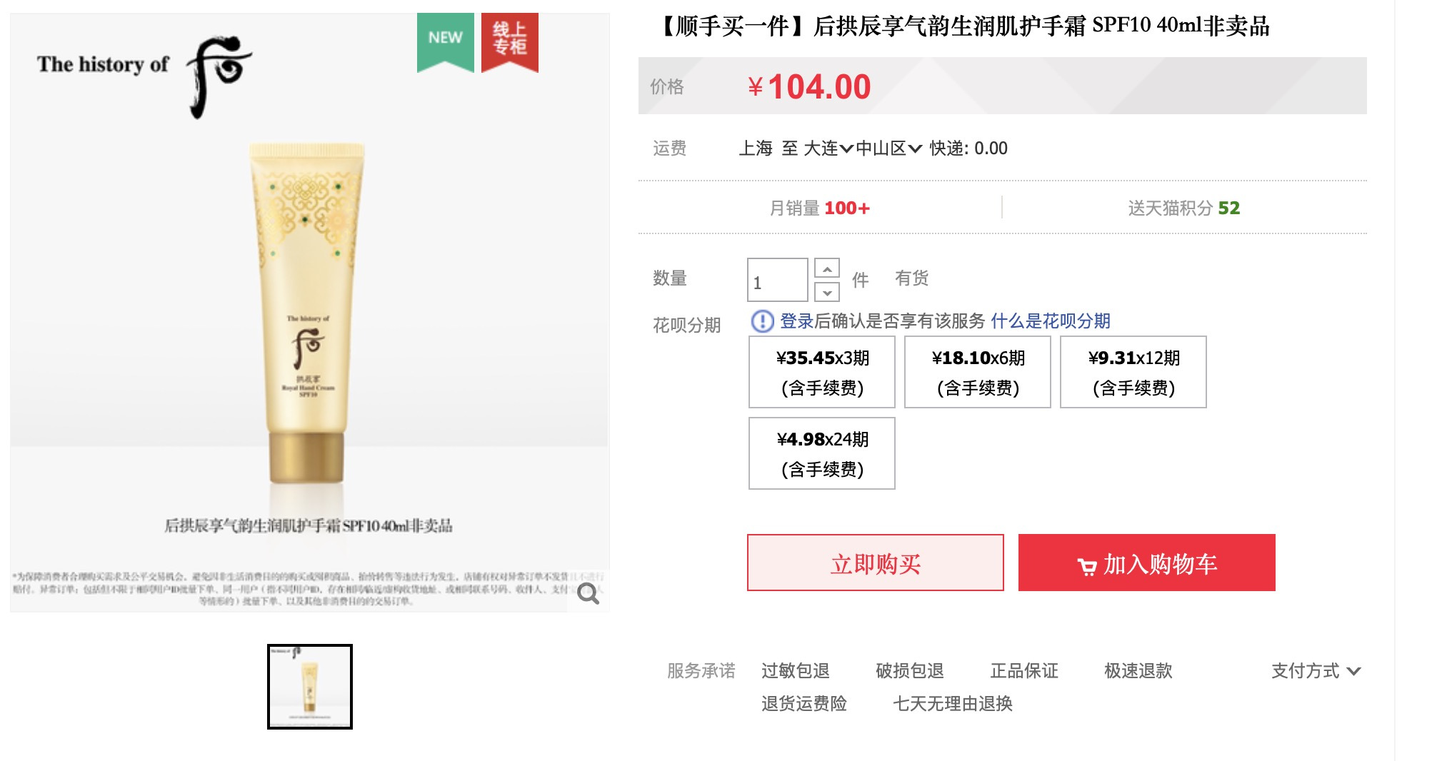 Whoo后拱辰享气运生润肌护手霜40ml