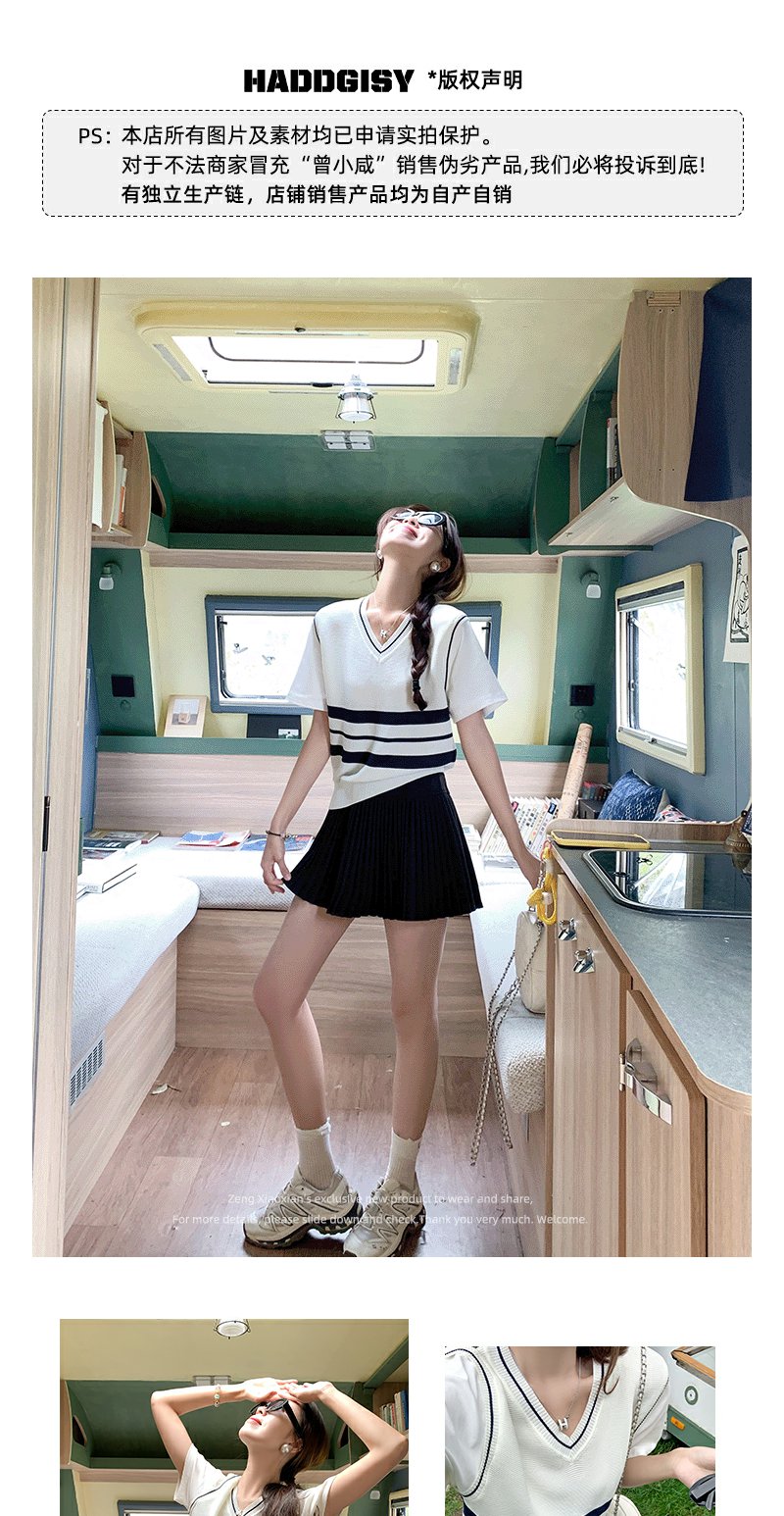 <曾小咸推荐>3.26现货秒杀 !微信超特价!撞色条纹拼接假两件针织短袖 日常129.99 立减70 秒杀59.99!!