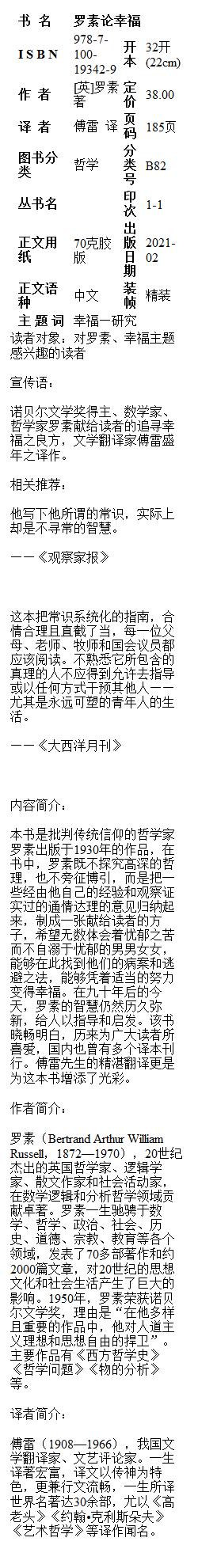 这些种类不同的不快乐,一部分是由于社会制度,一部分是由于个人心理,—当然,个人心理也大半是社会制度的产物。如何改变社会制度来增进幸福的问题,我从前已写有专书。关于销灭战争,销灭经济剥削,销灭残忍与恐怖的教育,等等,都不是我在本书里想谈的。要发见一个能避免战争的制度,对我们的文化确是生死攸关的问题,但这种制度决无成功之望,因为今日的人们那样的烦闷,甚至觉得互相毁灭还不及无穷尽的挨延日子来得可怕。要是机器生产的利益,能对那般需要最切的人多少有所裨益的话,那当然应该阻止贫穷的延续;但若富翁本身就在苦恼,那么教每个人做富翁又有何用?培养残忍与恐怖的教育是不好的,但那批本人就做了残忍与恐怖底奴隶的人,又能有什么旁的教育可以给?以上种种考虑把我们引到个人问题上来:此时此地的男男女女,在我们这患着思乡病的社会里,能有什么作为,可替他们或她们本身去获取幸福?在讨论这个问题时,我将集中注意在一般并不受着外界的苦难的人身上。我将假定他们有充分的收入,可以不愁吃不愁住,有充分的健康可以作普通的肉体活动。大的祸害,如儿女死尽,遭受公众耻辱,等等,我将不加考虑。关于这些题目,当然有许多话好说,而且是挺重要的,但和我在此所要讨论的属于两类。我的目的,是想提出一张疗治日常烦闷的方子,那烦闷是文明国家内大多数人感着痛苦的,而且因为并无显著的外因,所以更显得无可逃避,无可忍受。我相信,这种不快乐大部分是由于错误的世界观,错误的伦理学,错误的生活习惯,终于毁掉了对一般可能的“事物”的天然的兴致和胃口,殊不知一切的快乐,不问是人类的或野兽的,都得以这些事物为根基。观念和习惯,等等,都是在个人权力范围以内的,所以我愿提出若干改革的方案,凭了它们,只要你有着中等的幸运,就有获得幸福的可能。