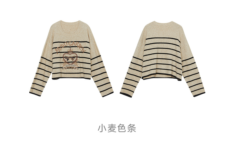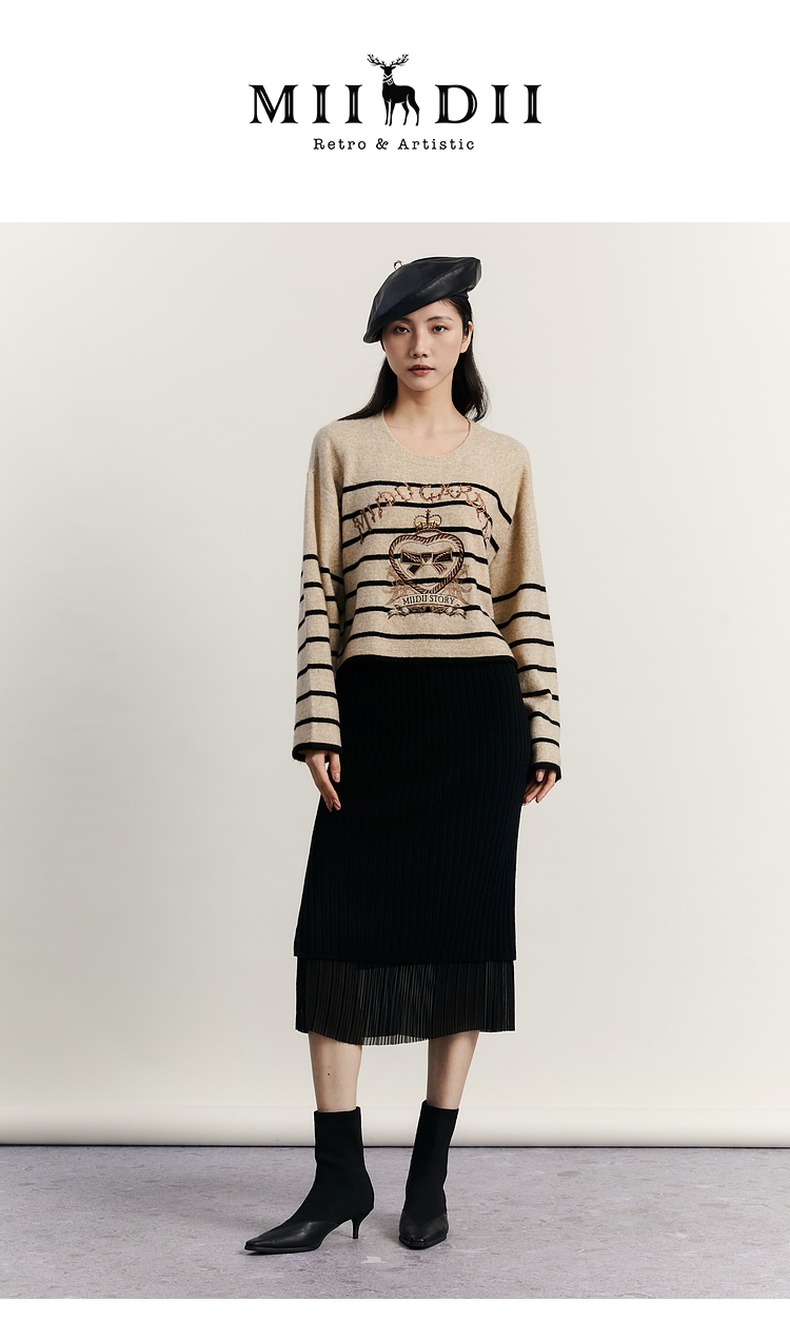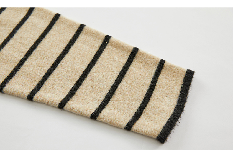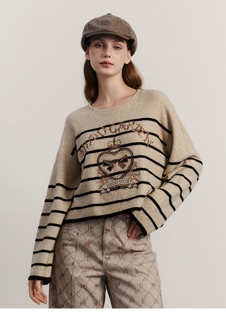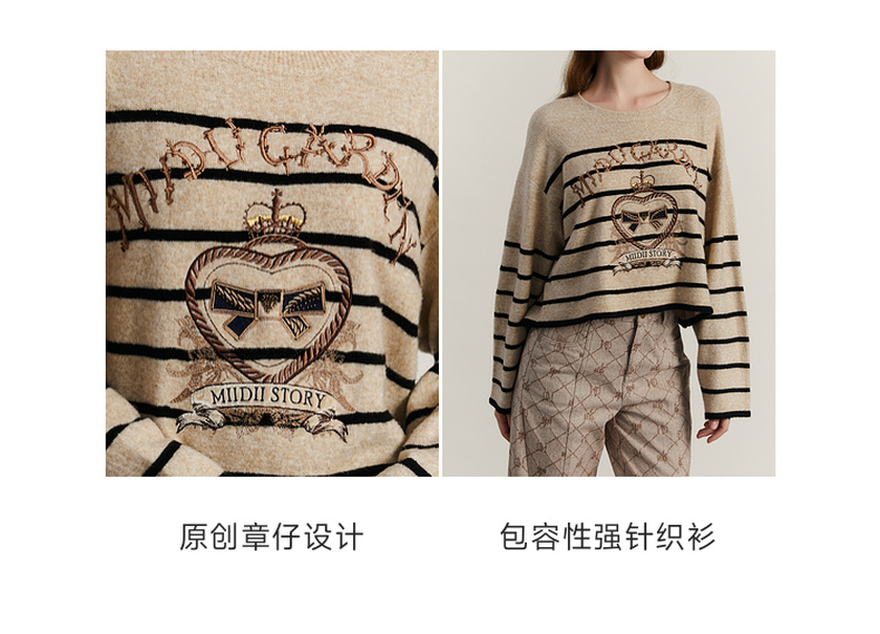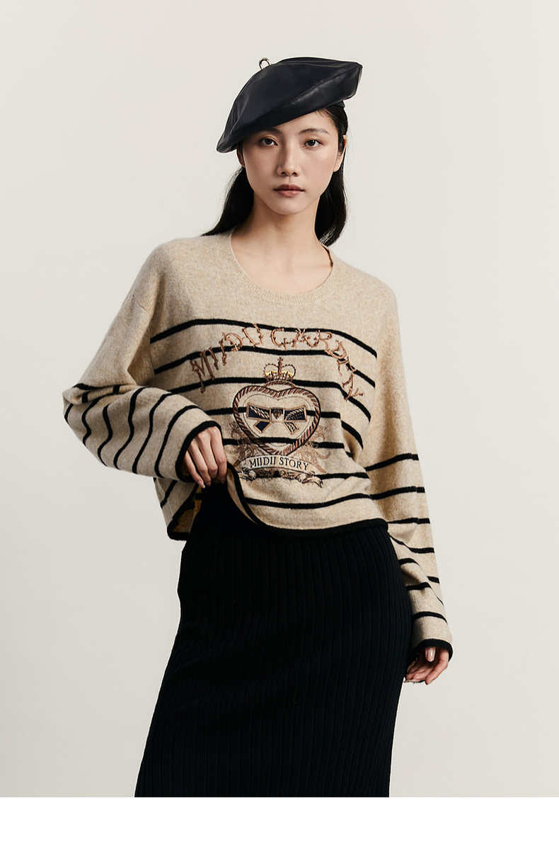 谜底条纹套头针织衫女2023冬新款复古文艺圆领套头毛衣234MZ1861