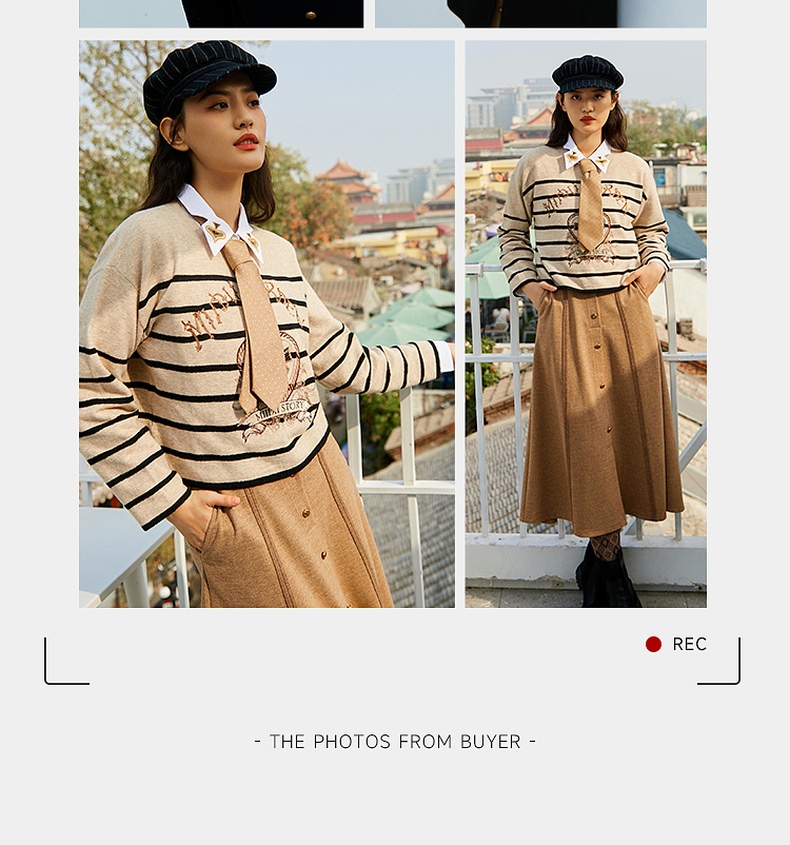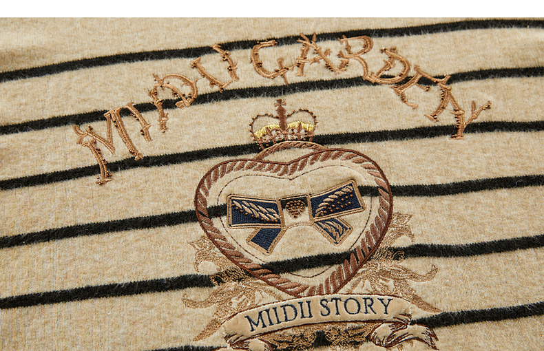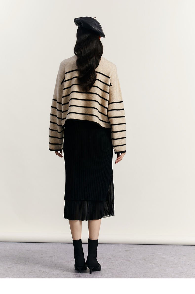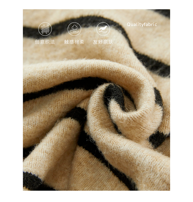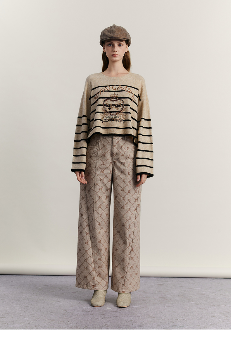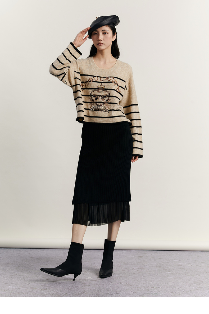 谜底条纹套头针织衫女2023冬新款复古文艺圆领套头毛衣234MZ1861