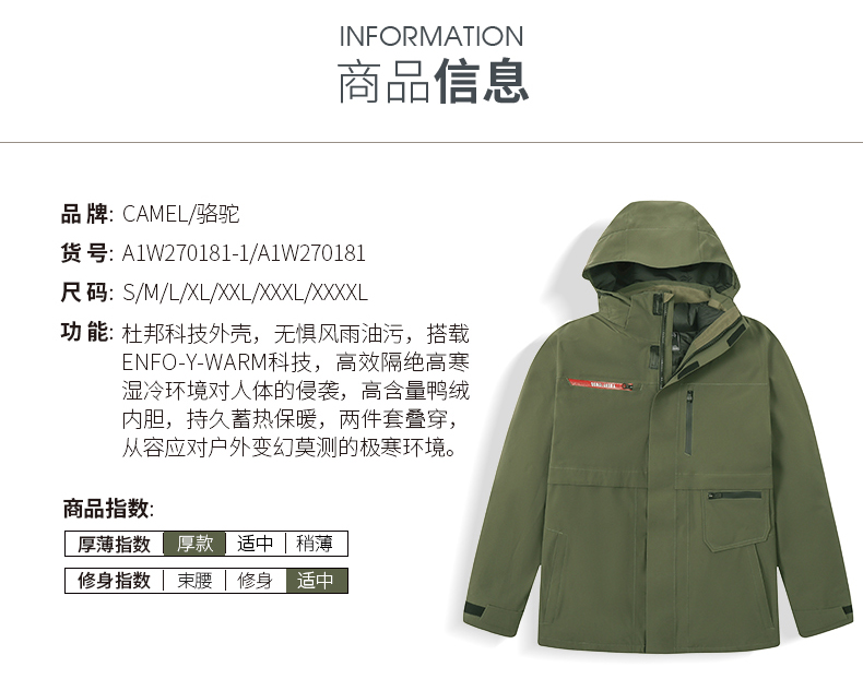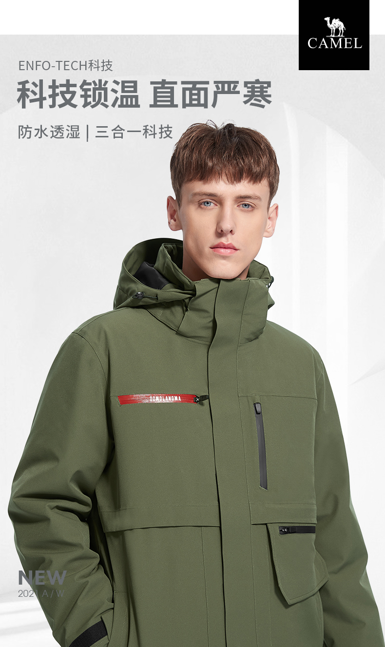 明星同款骆驼珠穆朗玛极寒系列冲锋衣男女款羽绒服内胆三合一 A1W170180_A1W270181
