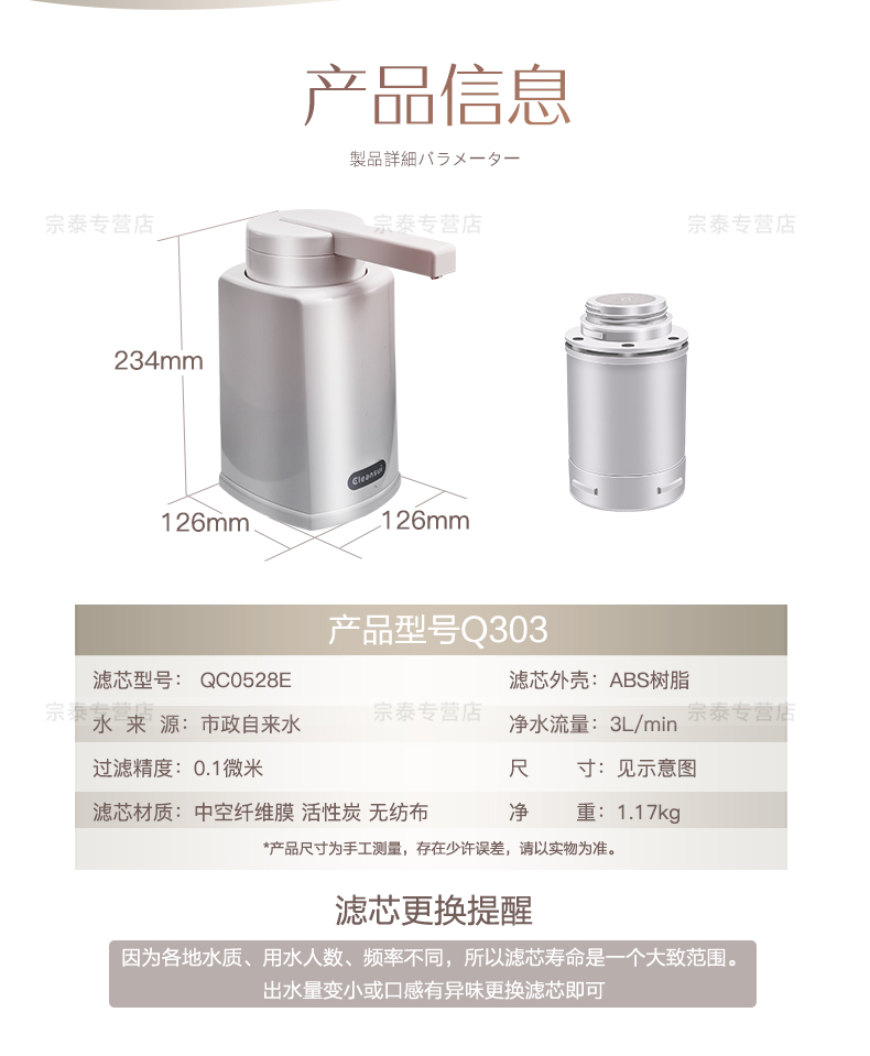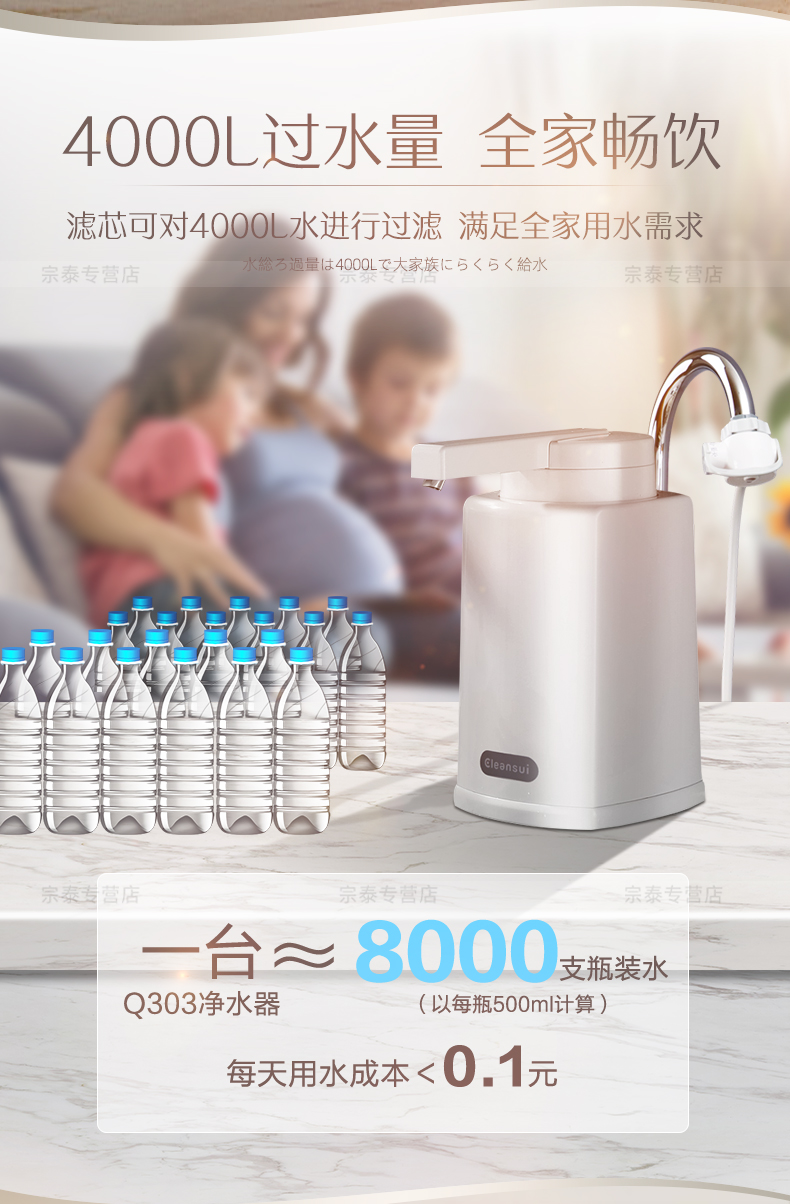 【盛元新生活】日本原装进口三菱可菱水Q303净水器直饮家用小巧厨房滤水器过滤器台上型净水机Q303超滤净水器直饮水