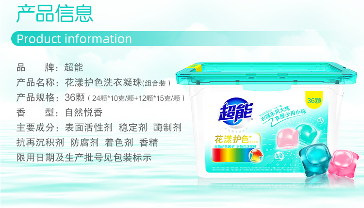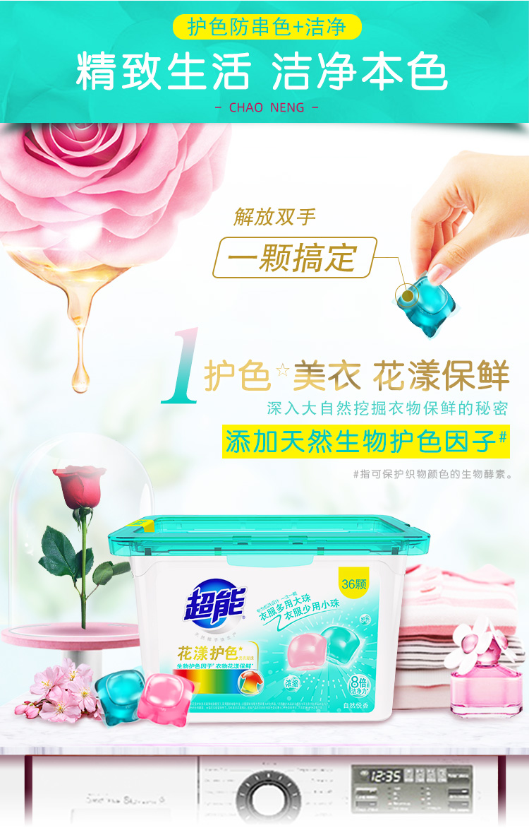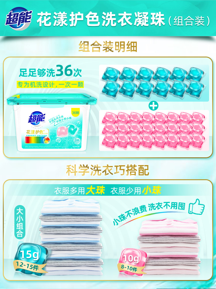 超能花漾护色洗衣凝珠 36颗(12*15克/颗+24*10克/颗)