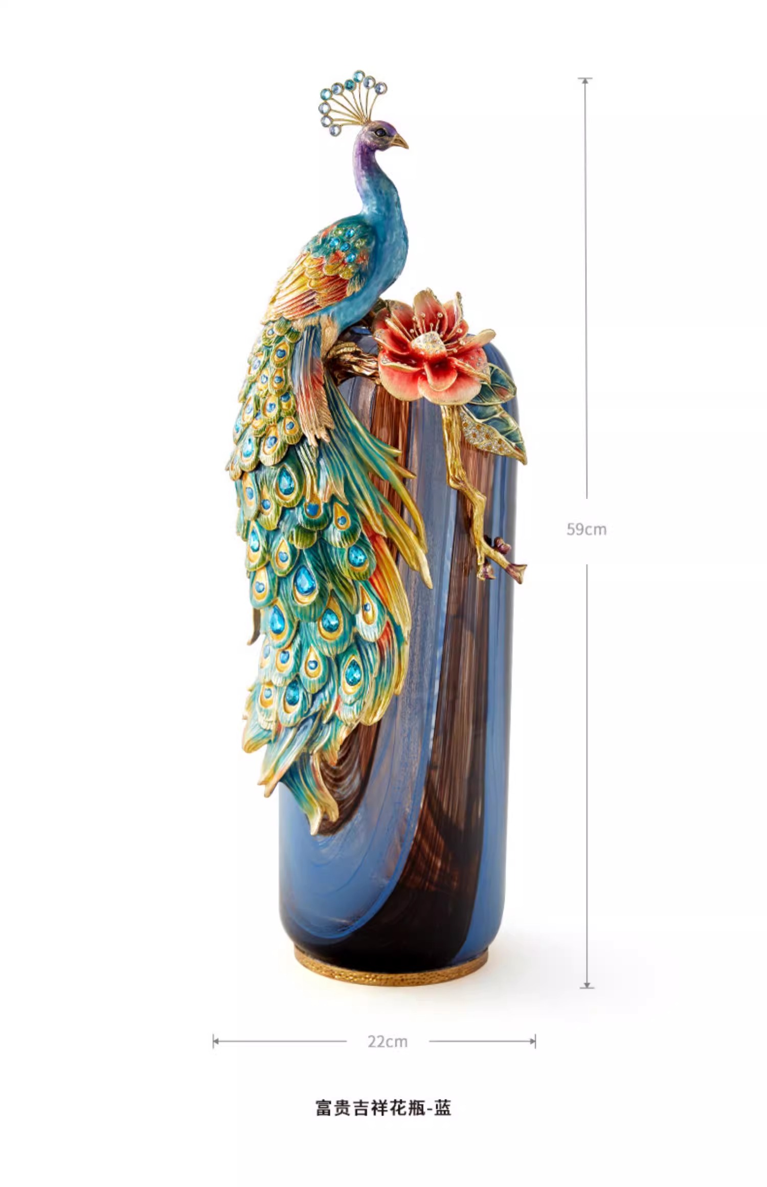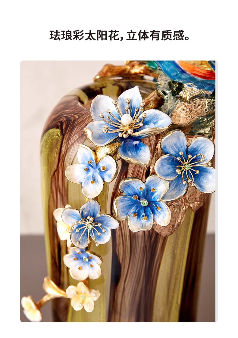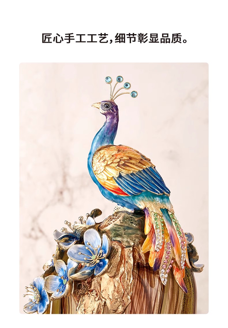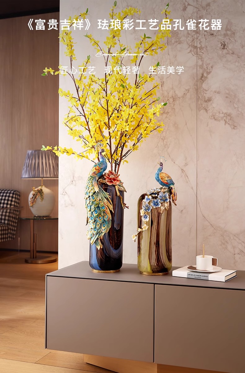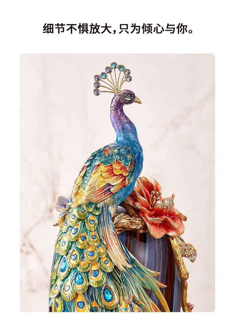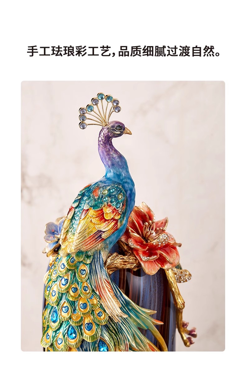 罗比罗丹富贵吉祥孔雀花瓶摆件珐琅彩工艺家居饰品乔迁礼物罗比罗丹花瓶(富贵吉祥)蓝