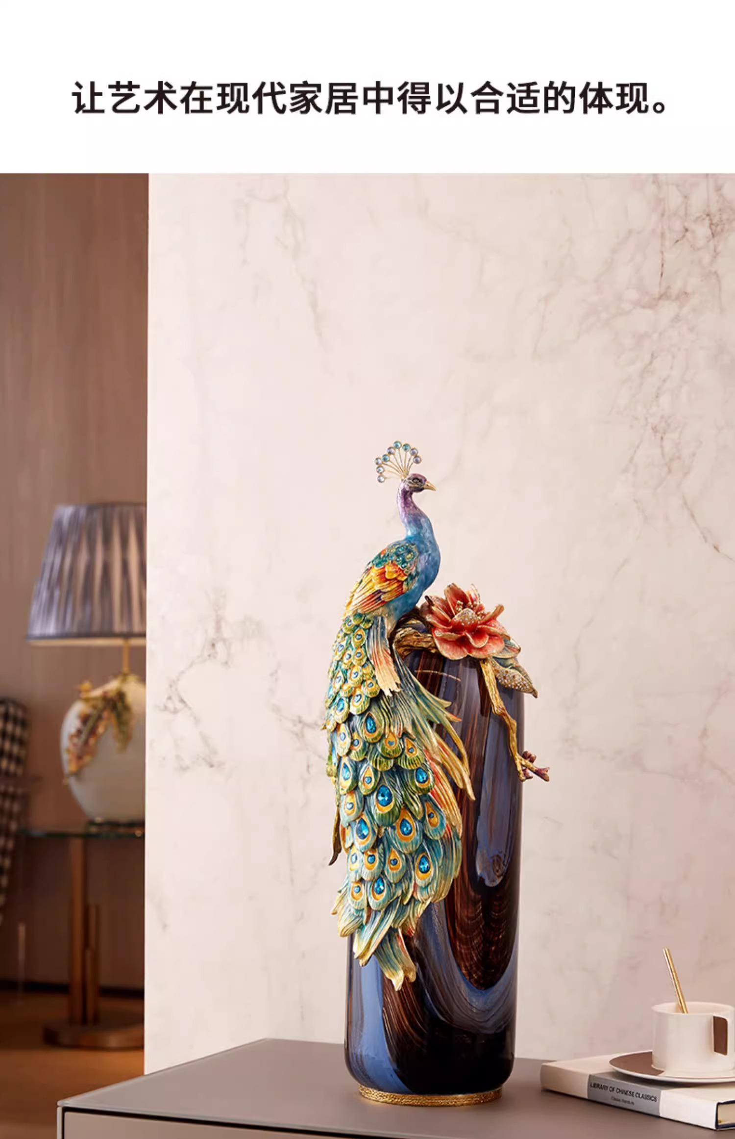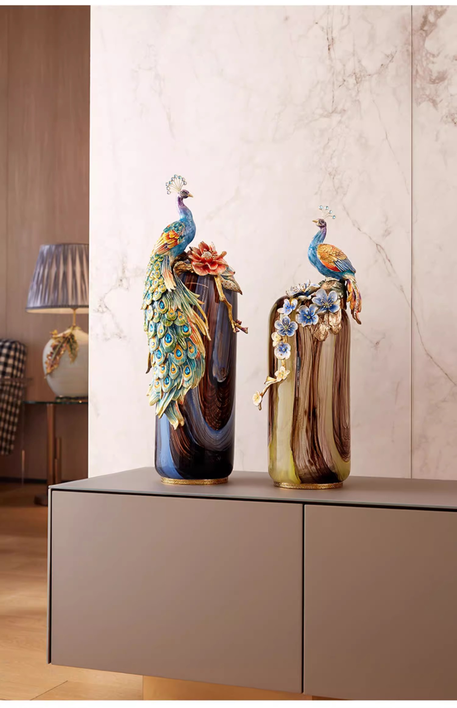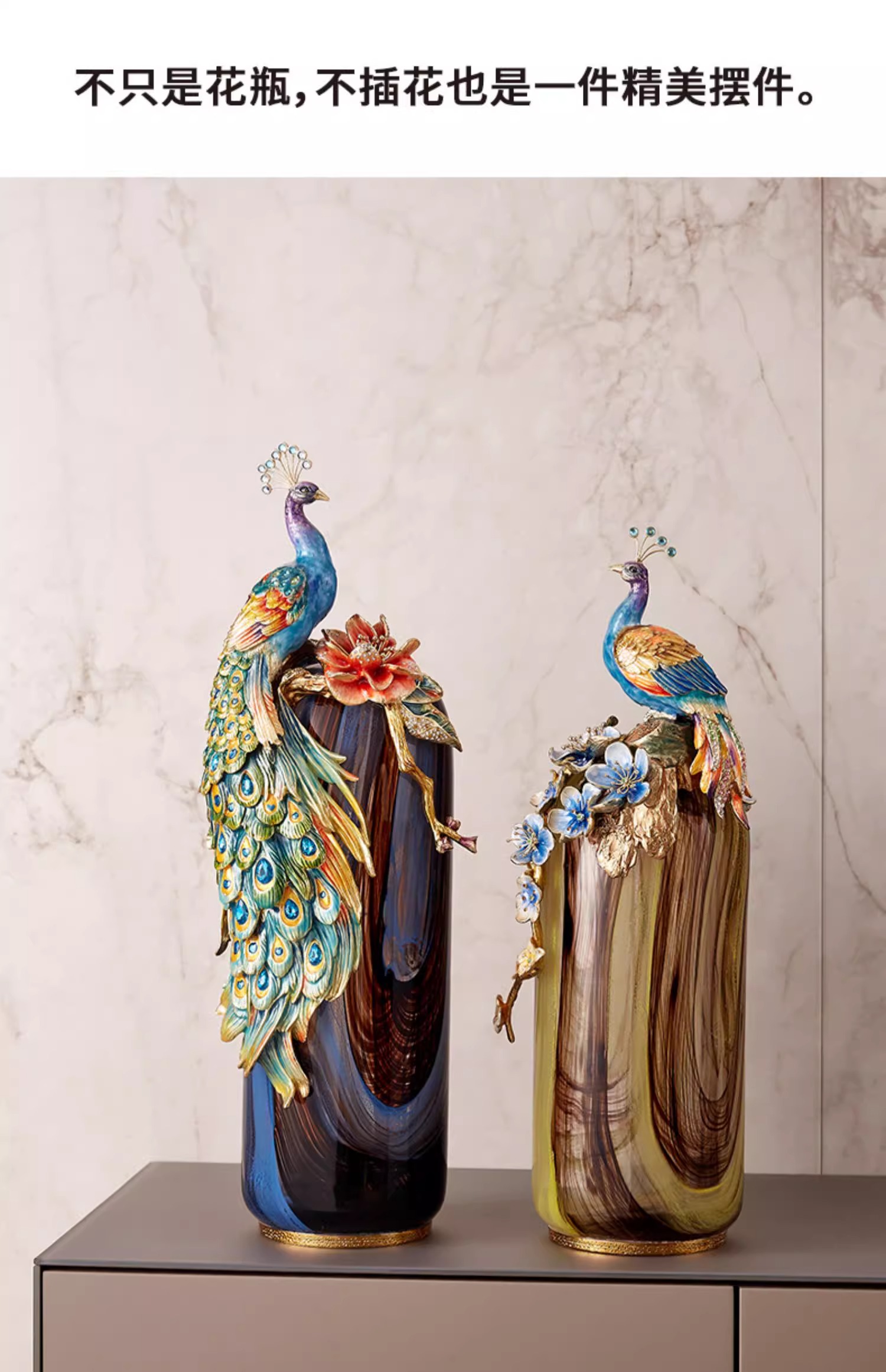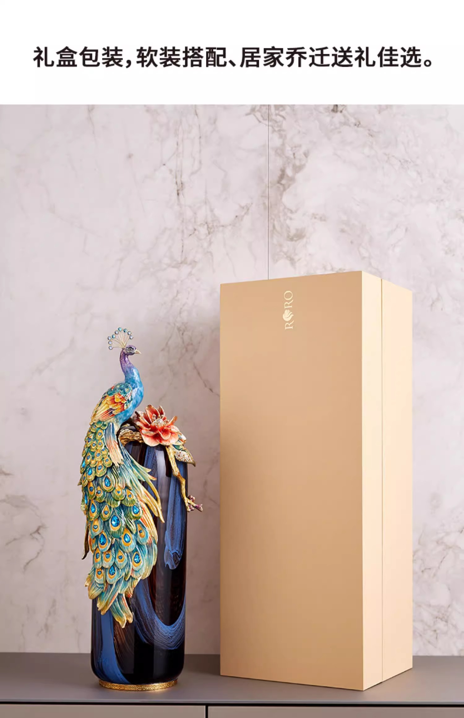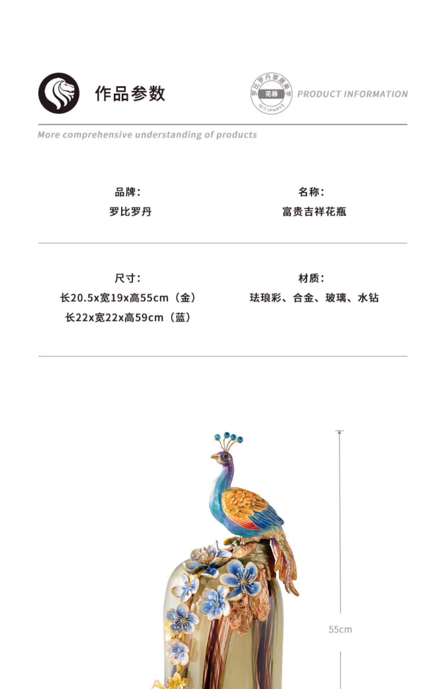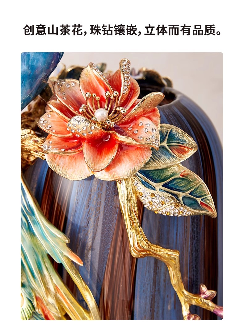 罗比罗丹富贵吉祥孔雀花瓶摆件珐琅彩工艺家居饰品乔迁礼物罗比罗丹花瓶(富贵吉祥)蓝