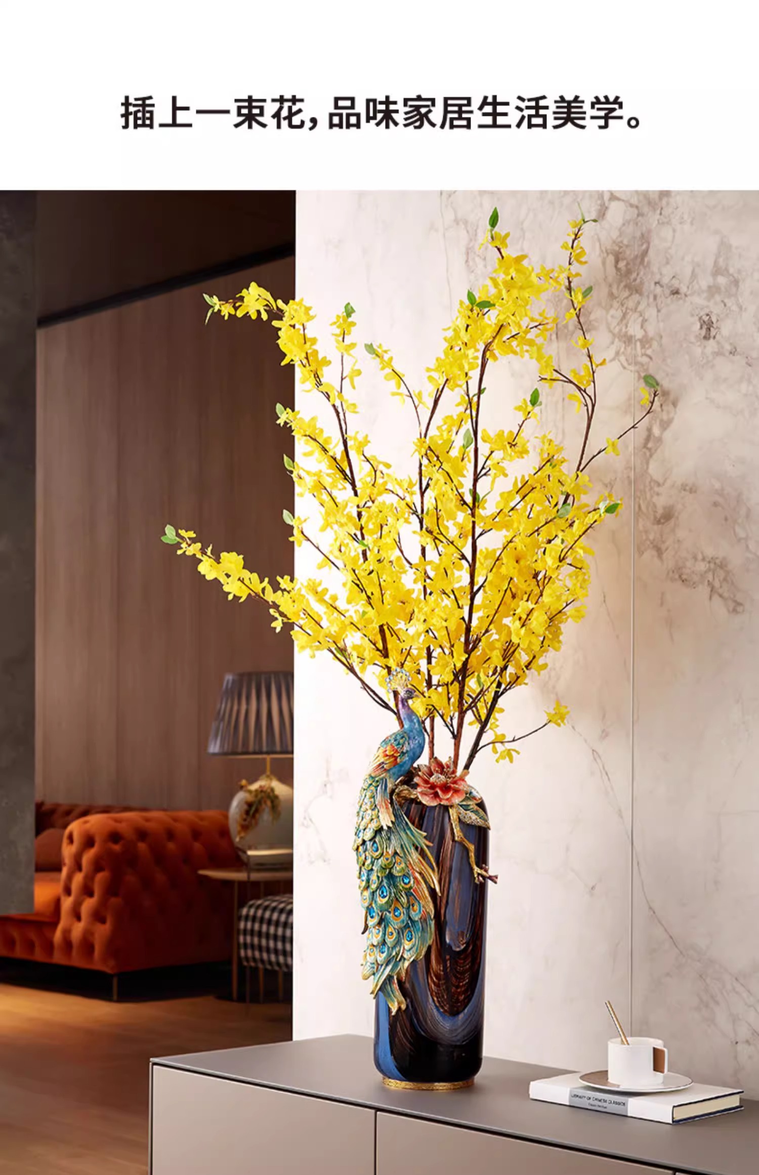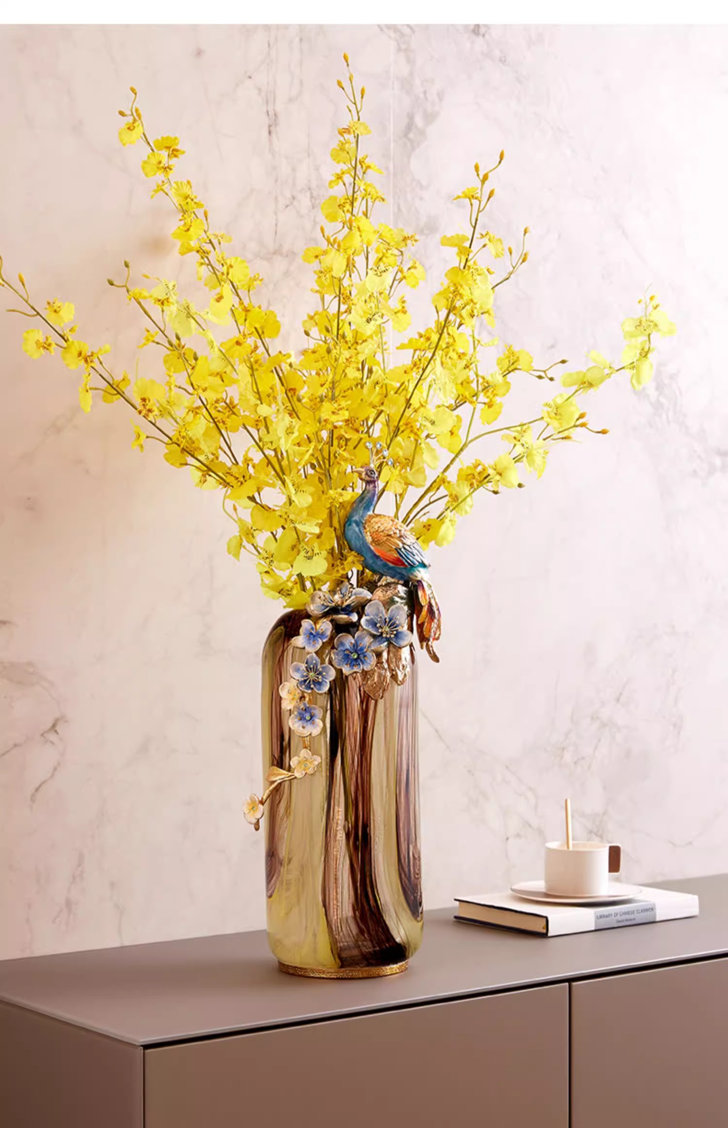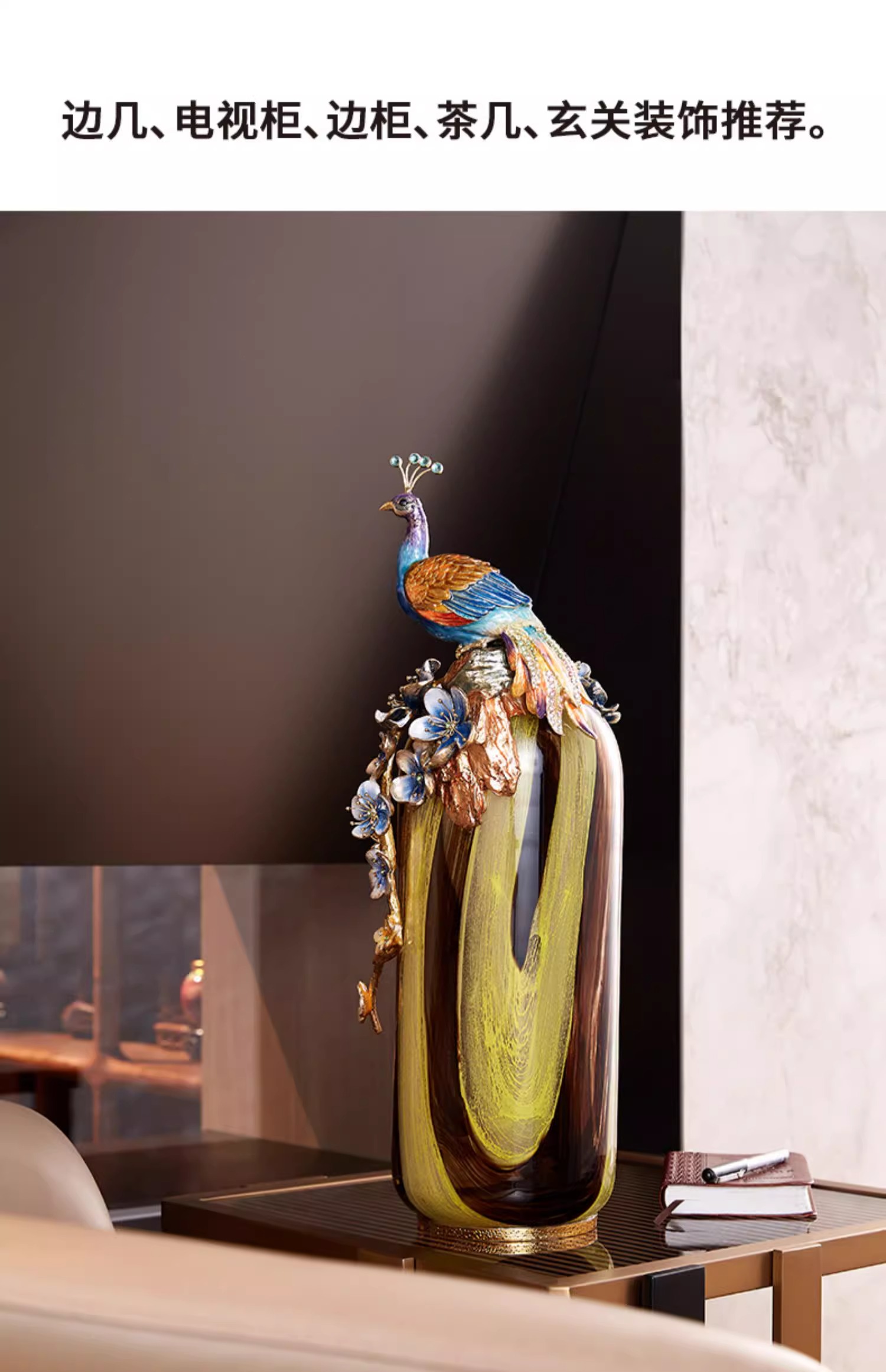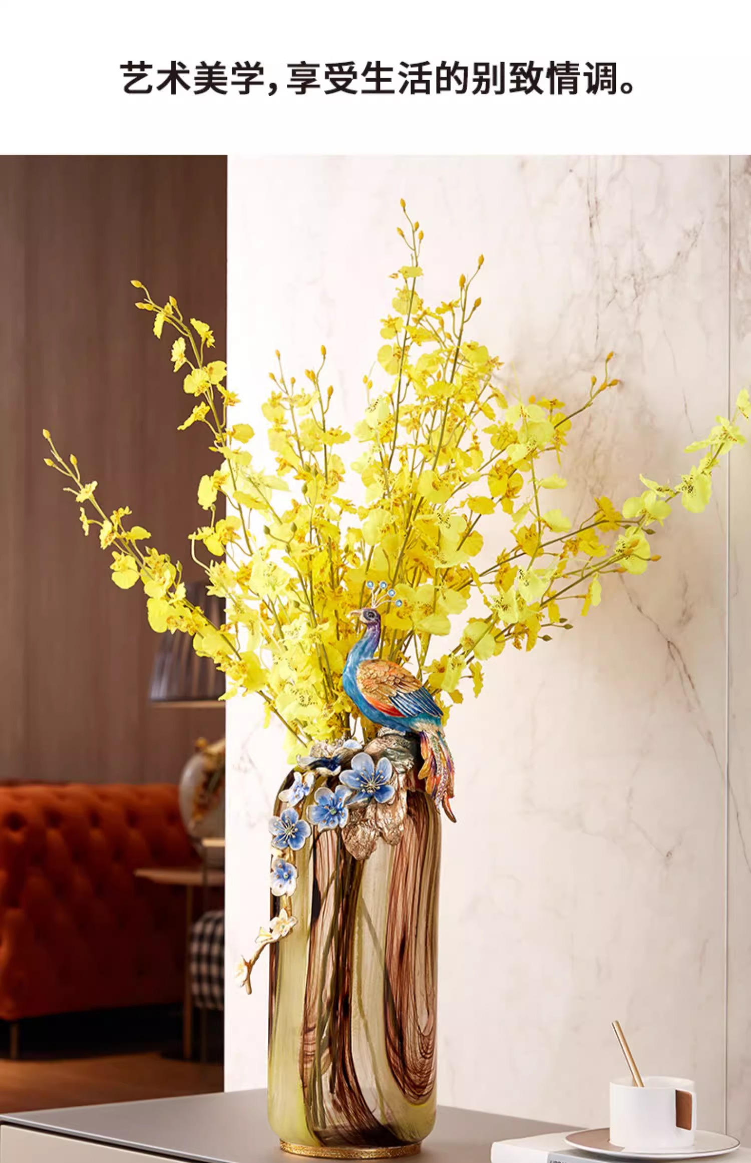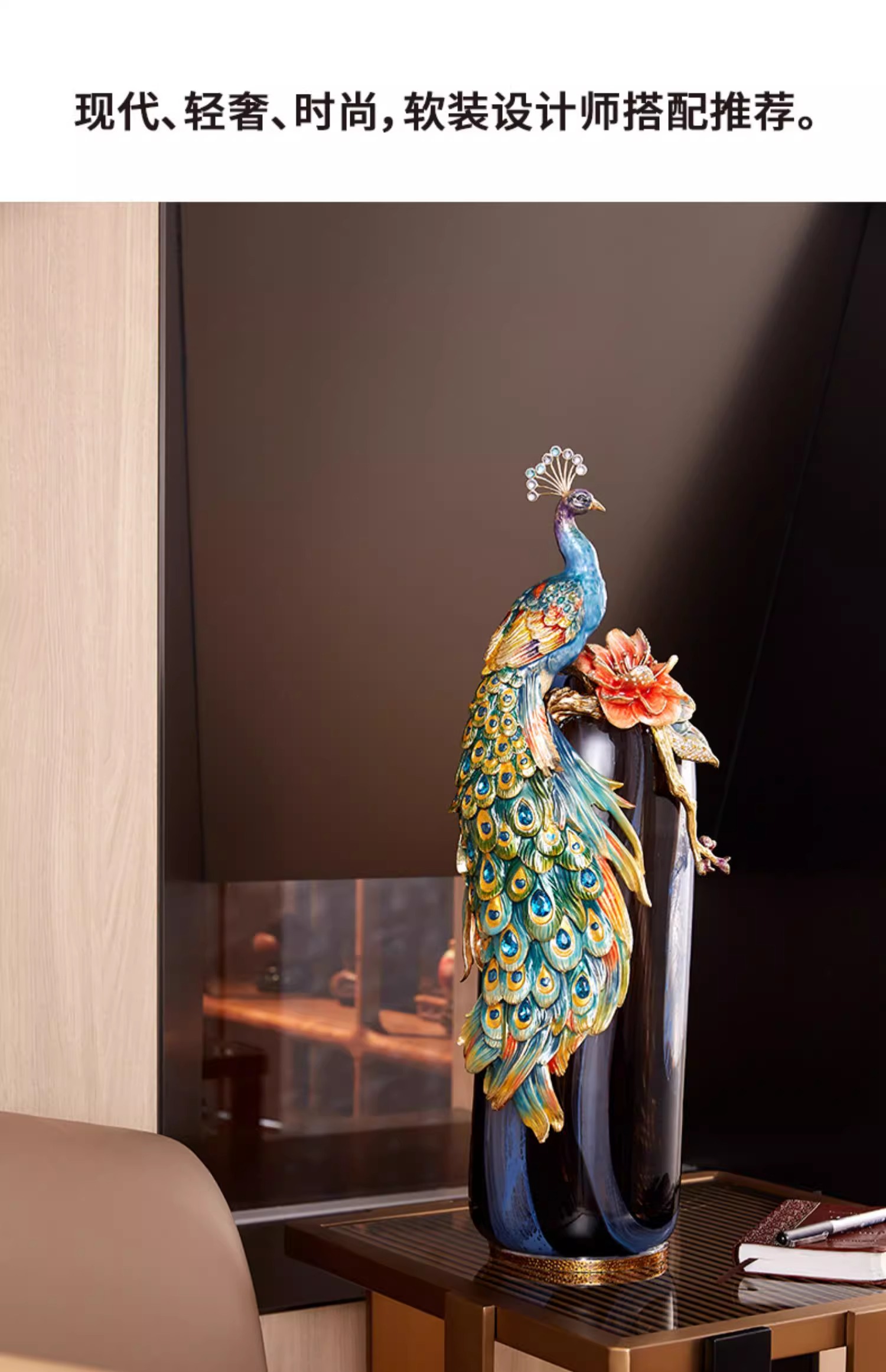 罗比罗丹富贵吉祥孔雀花瓶摆件珐琅彩工艺家居饰品乔迁礼物罗比罗丹花瓶(富贵吉祥)蓝