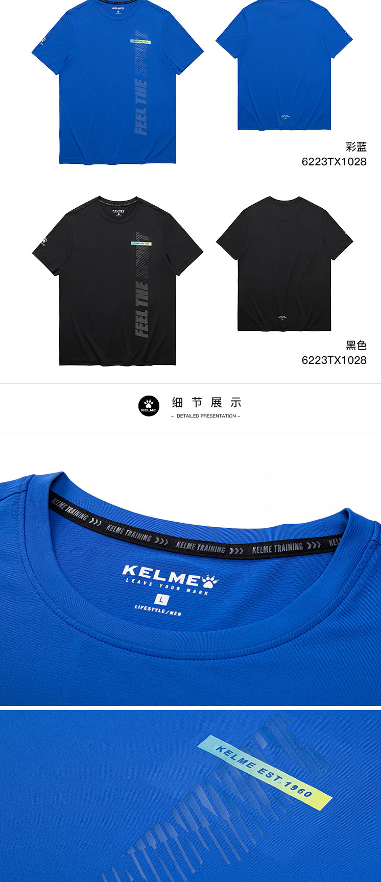 KELME卡尔美运动T恤男速干健身房训练短袖跑步健身透气吸汗上衣6223TX1028