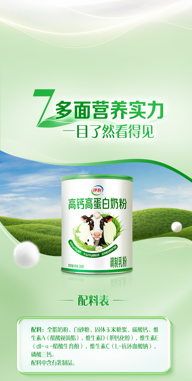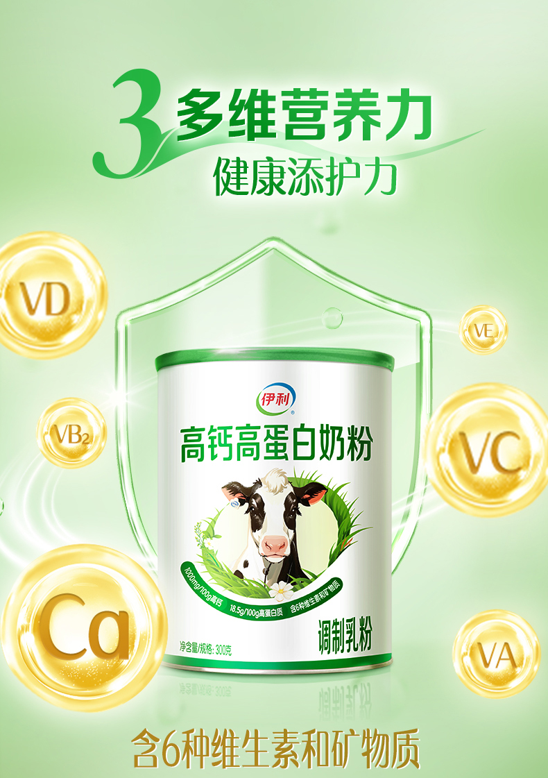 【新品上市】伊利高钙高蛋白奶粉 全家营养奶粉300g罐装 含多种维生素和矿物质