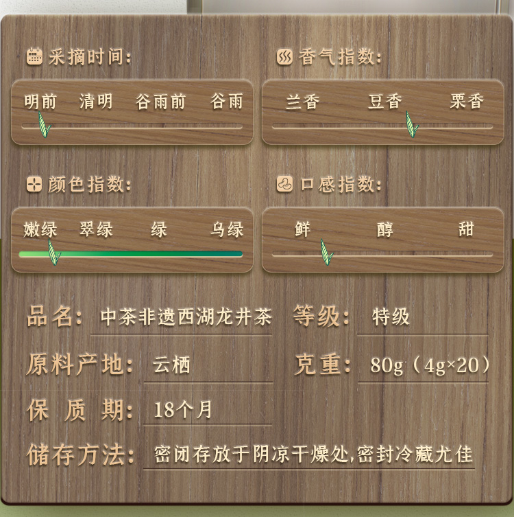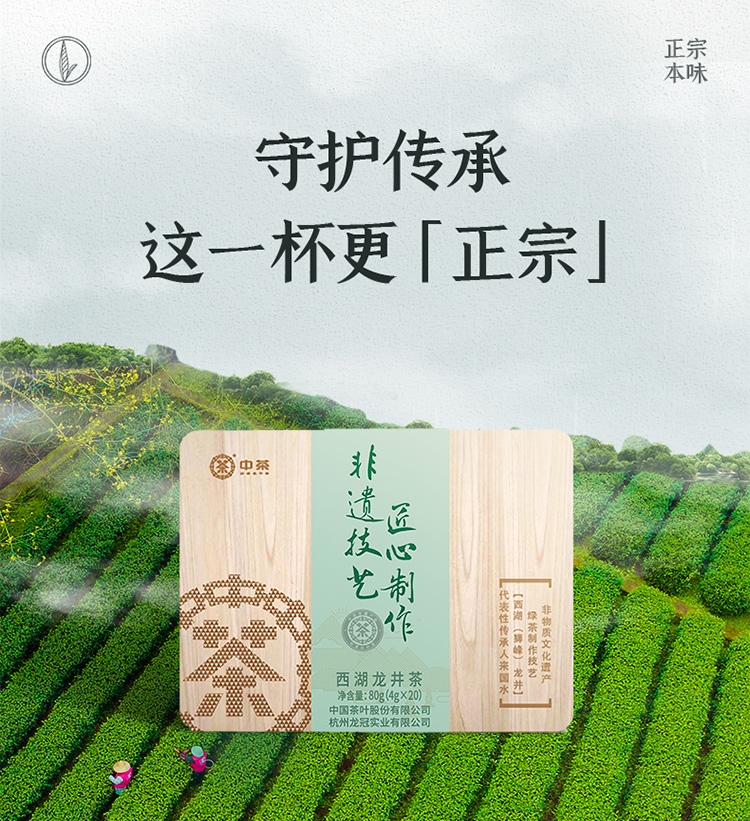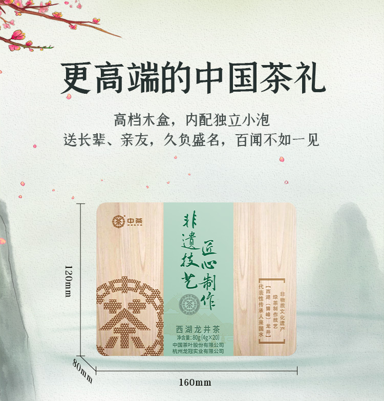 中茶2024春茶 明前 特级西湖龙井绿茶80g木盒装茶叶 非遗系列特渠款