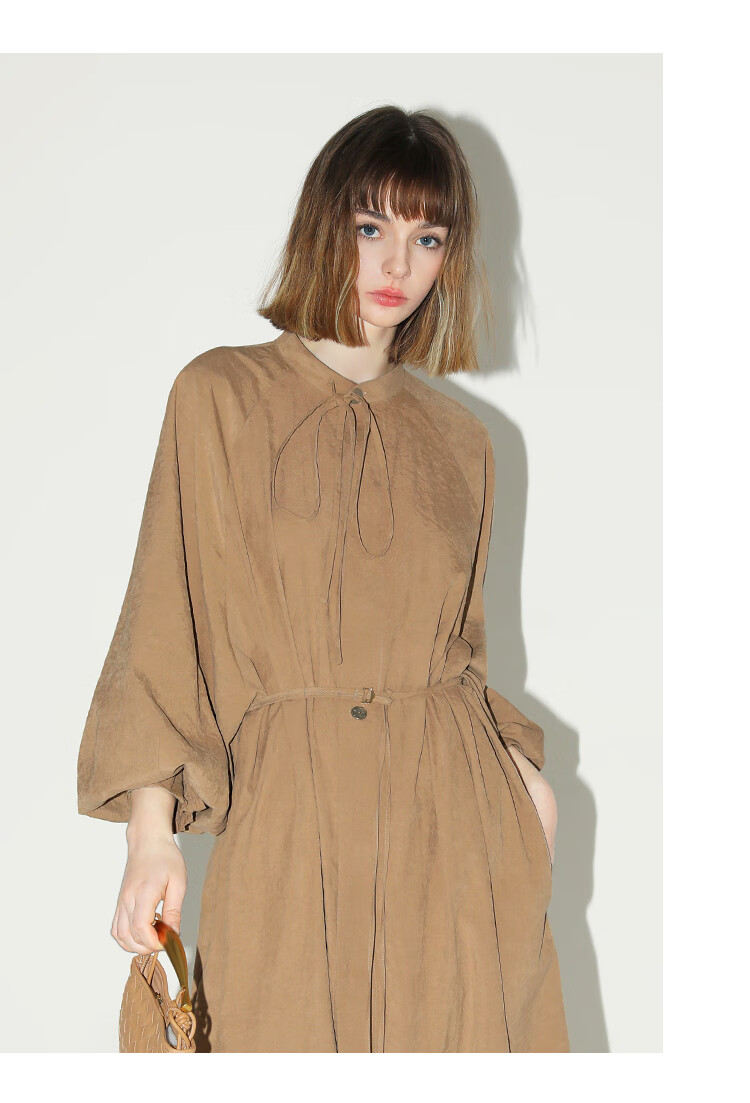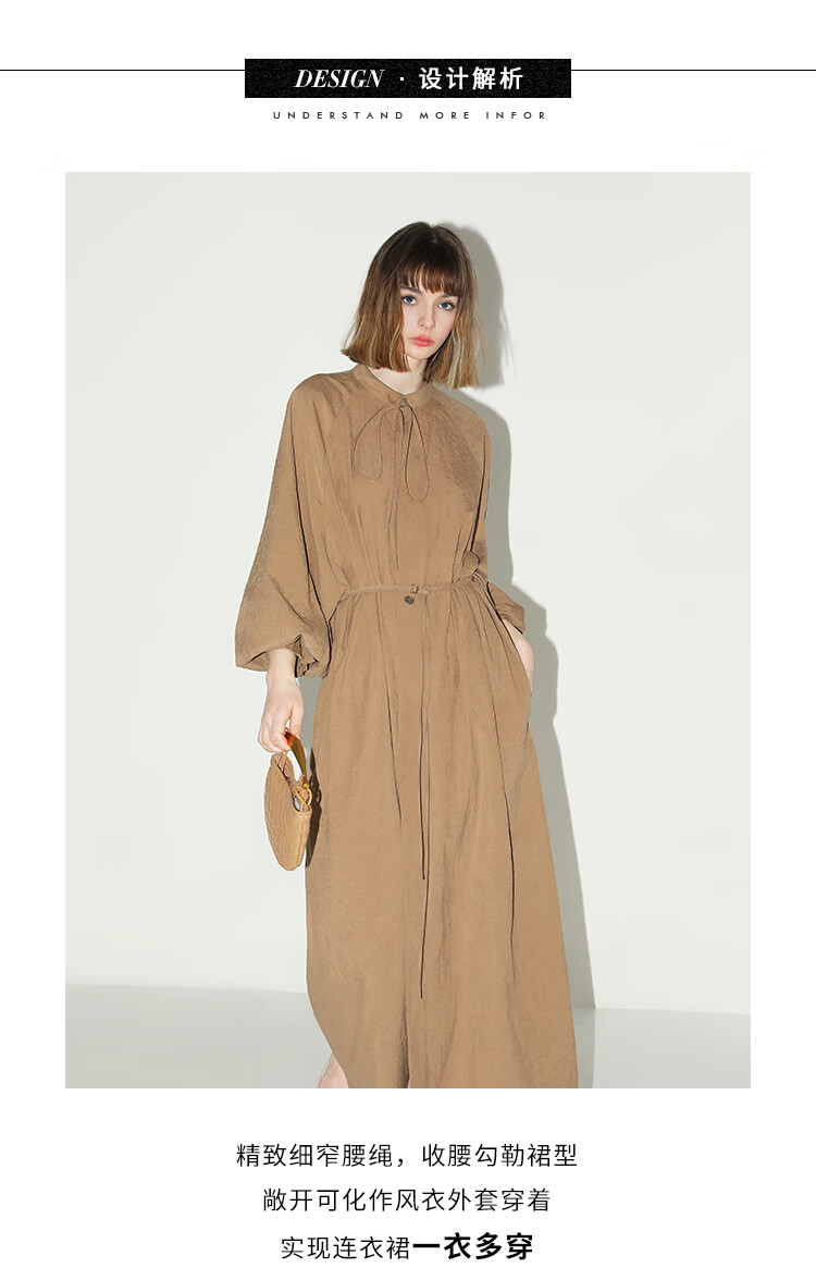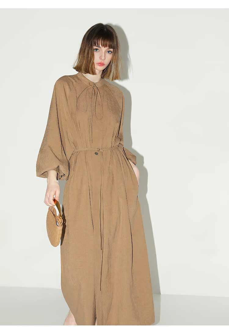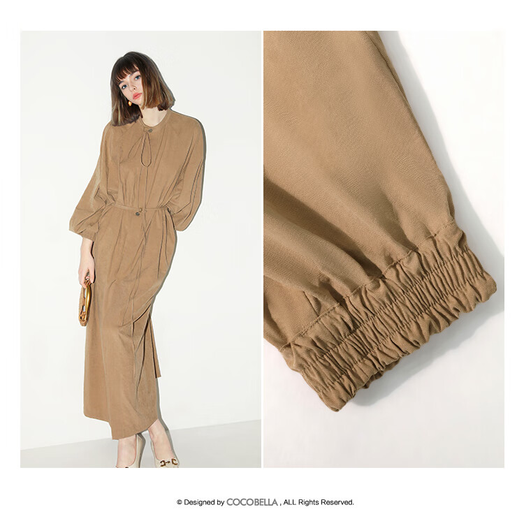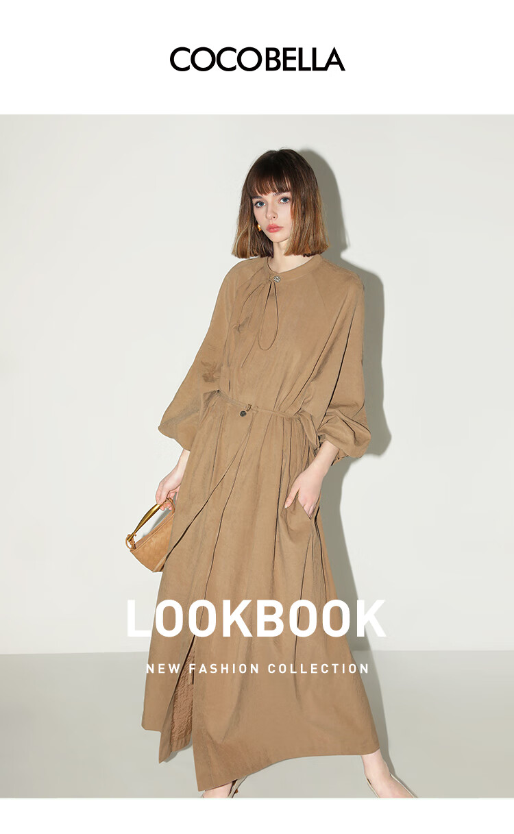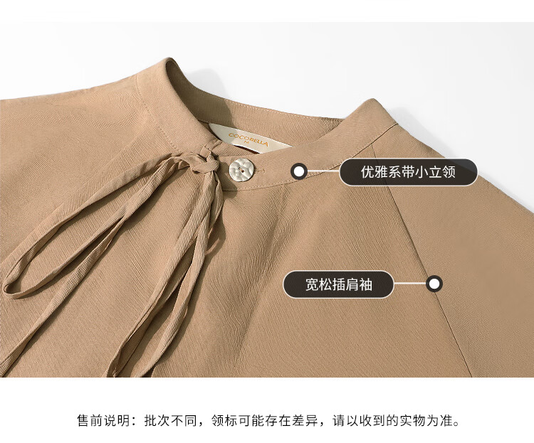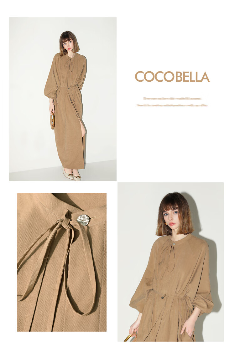 COCOBELLA松弛感穿搭廓形连衣裙飘带小立领气质衬衫裙FR3021