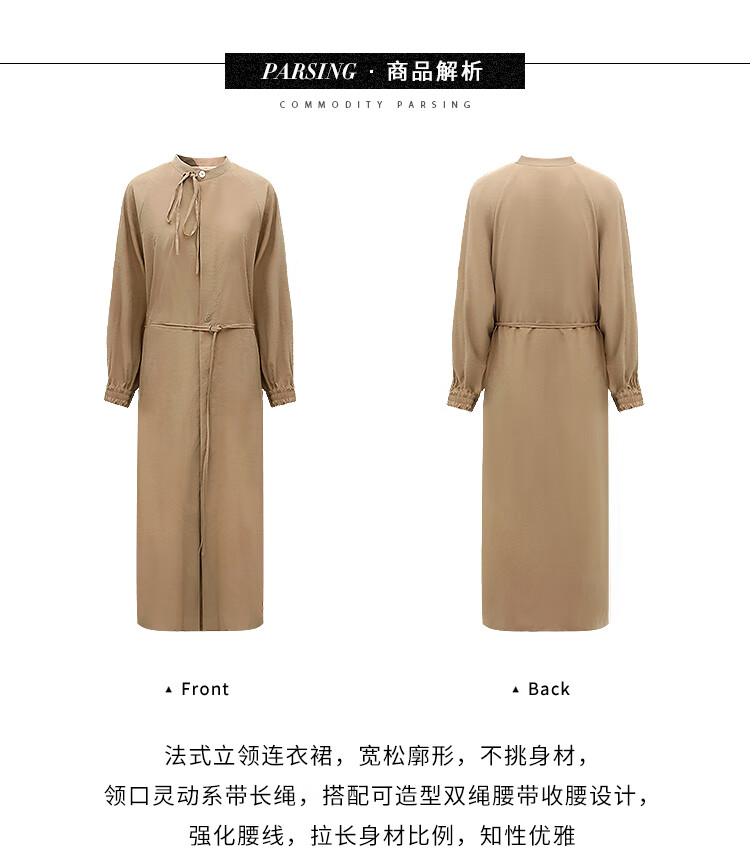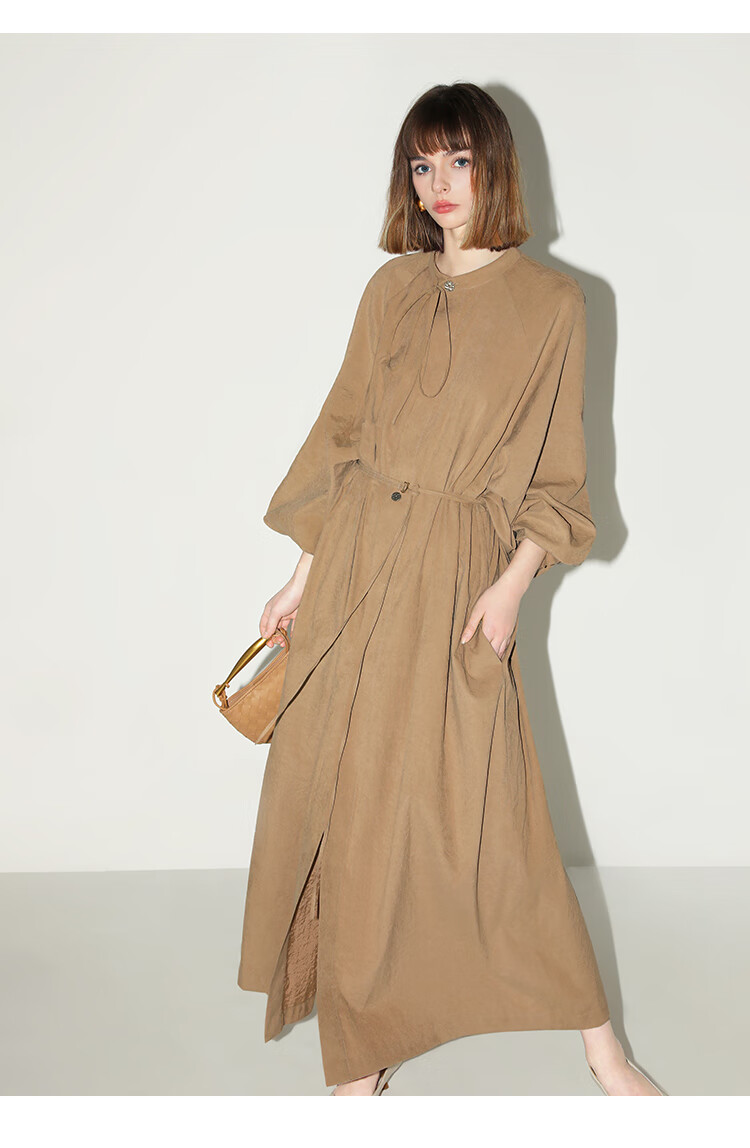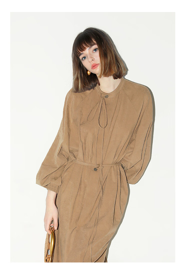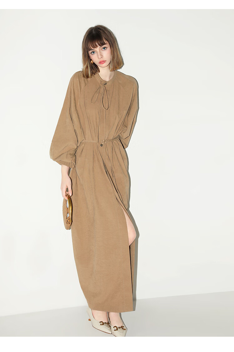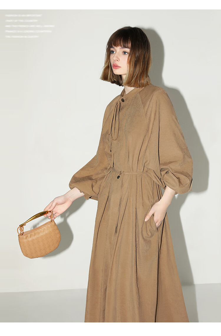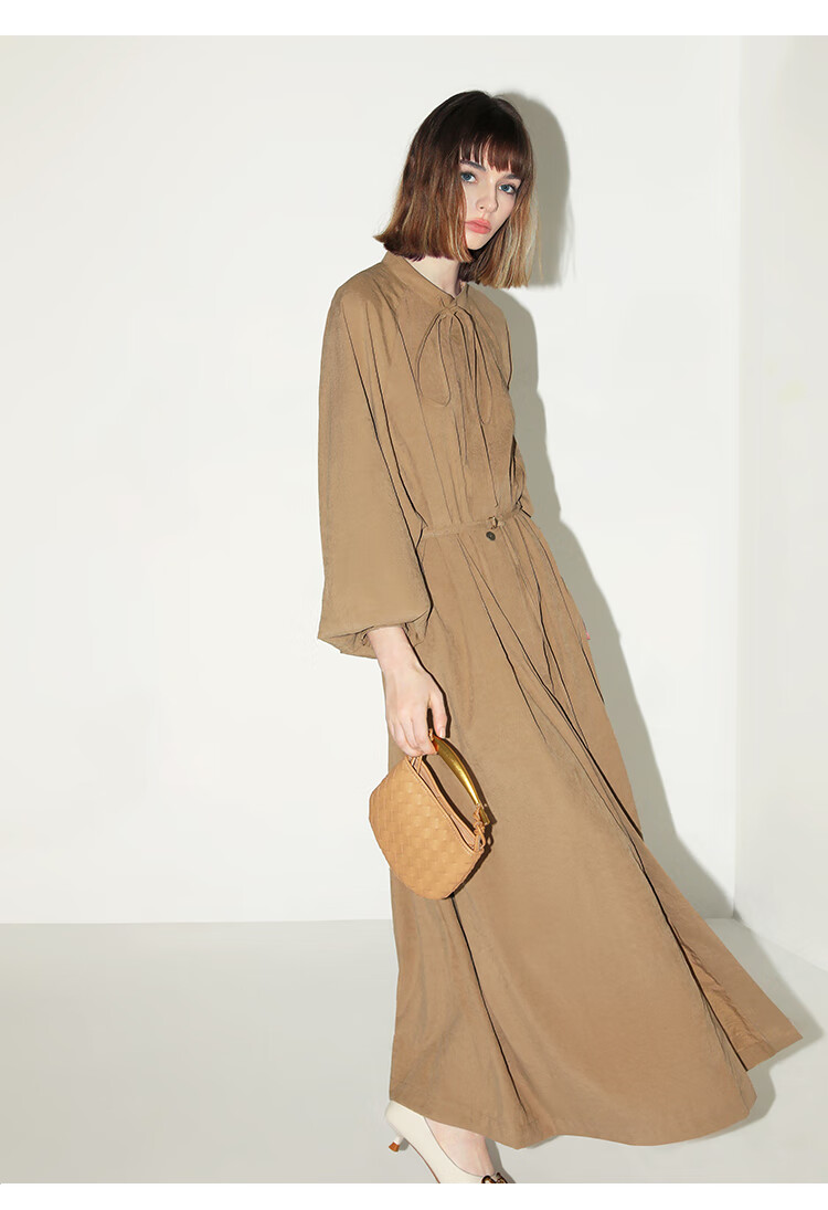 COCOBELLA松弛感穿搭廓形连衣裙飘带小立领气质衬衫裙FR3021
