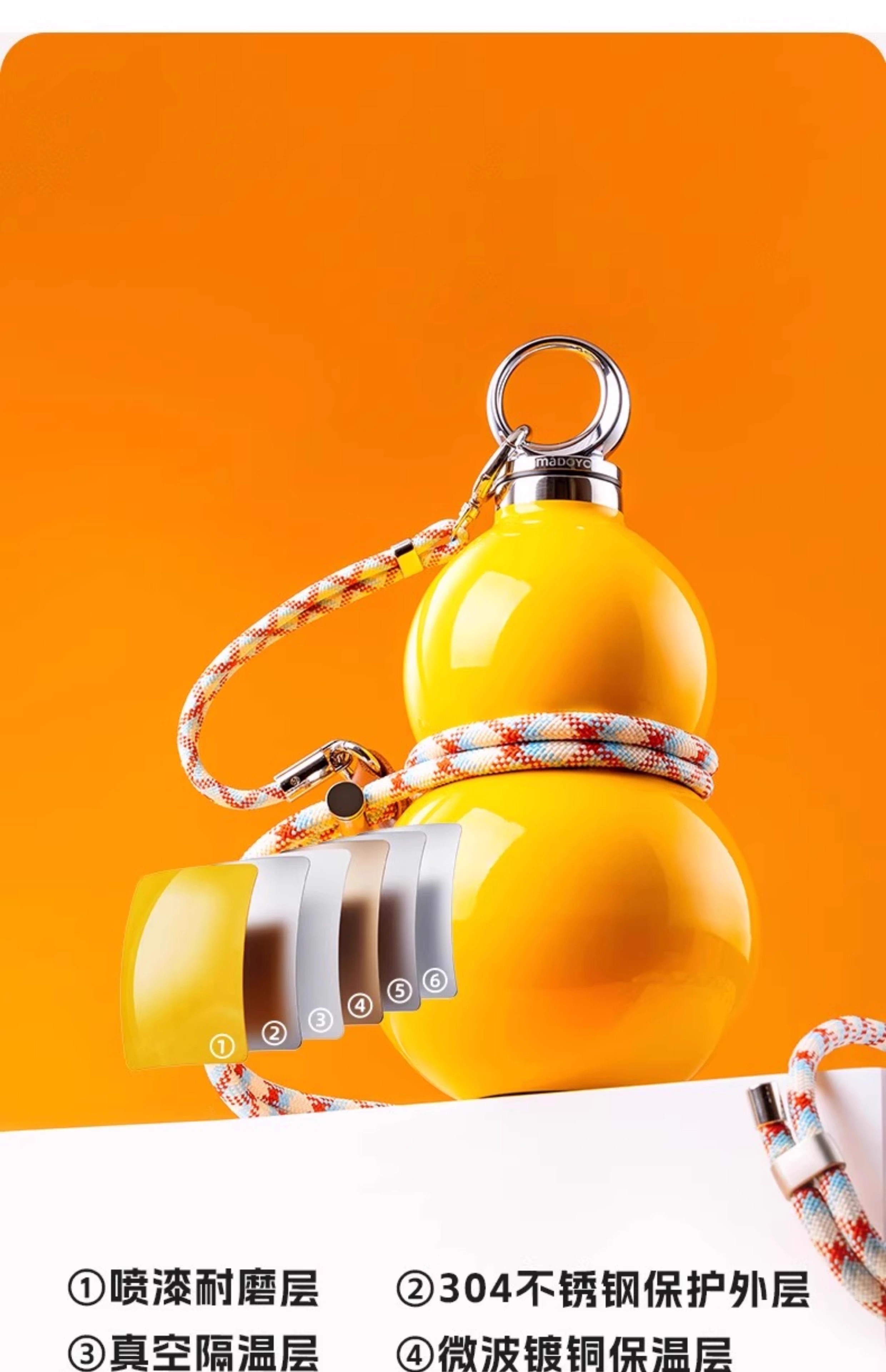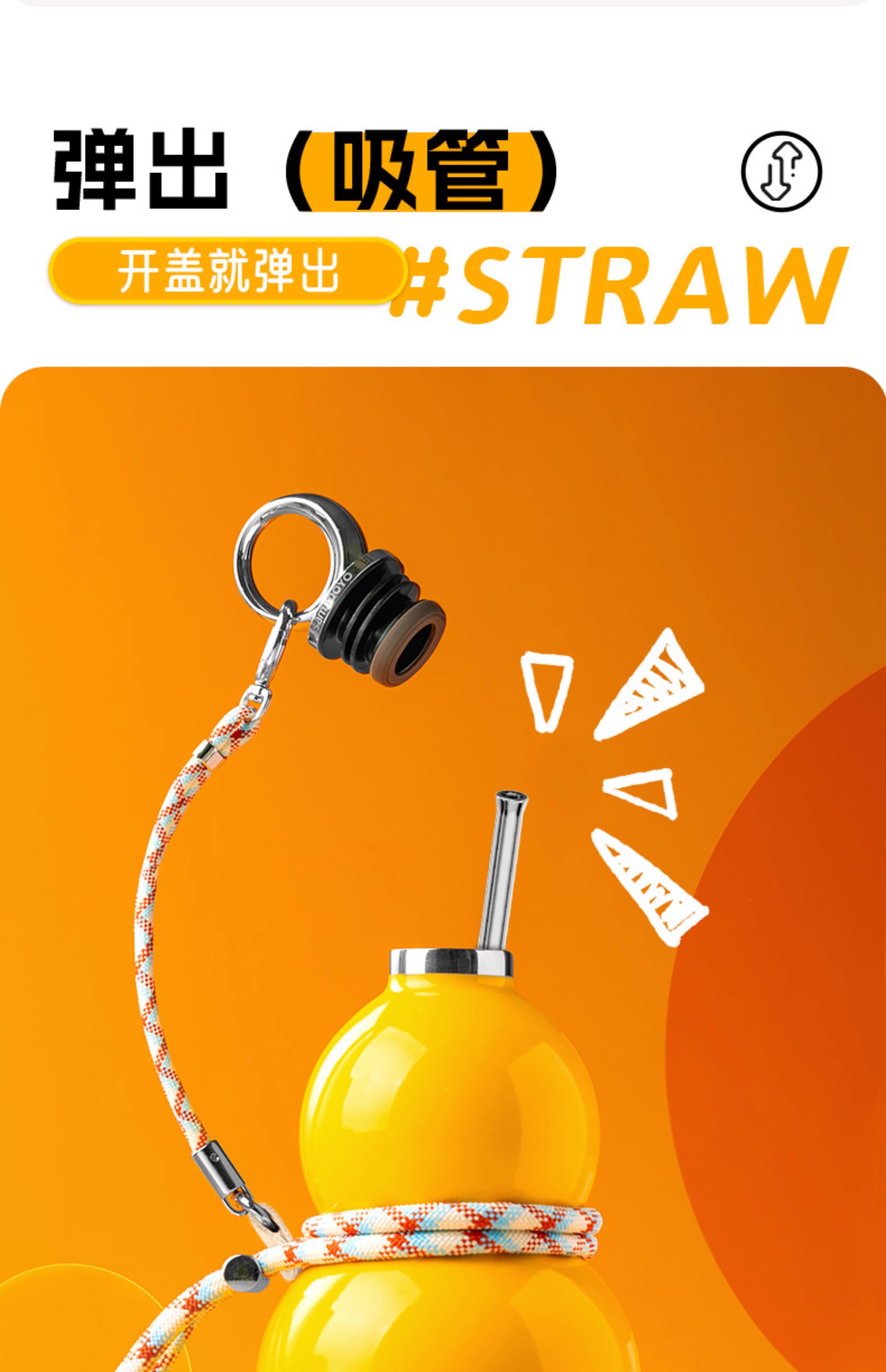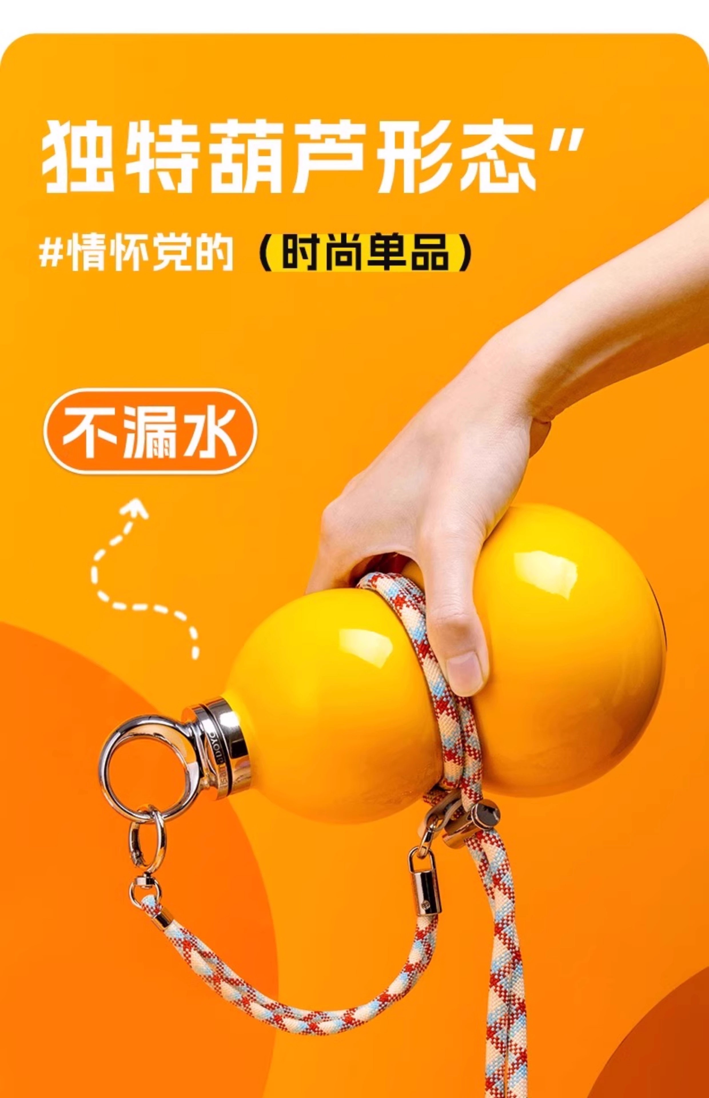 尚明葫芦保温杯水壶带吸管大容量户外国潮随行便携不锈钢水杯