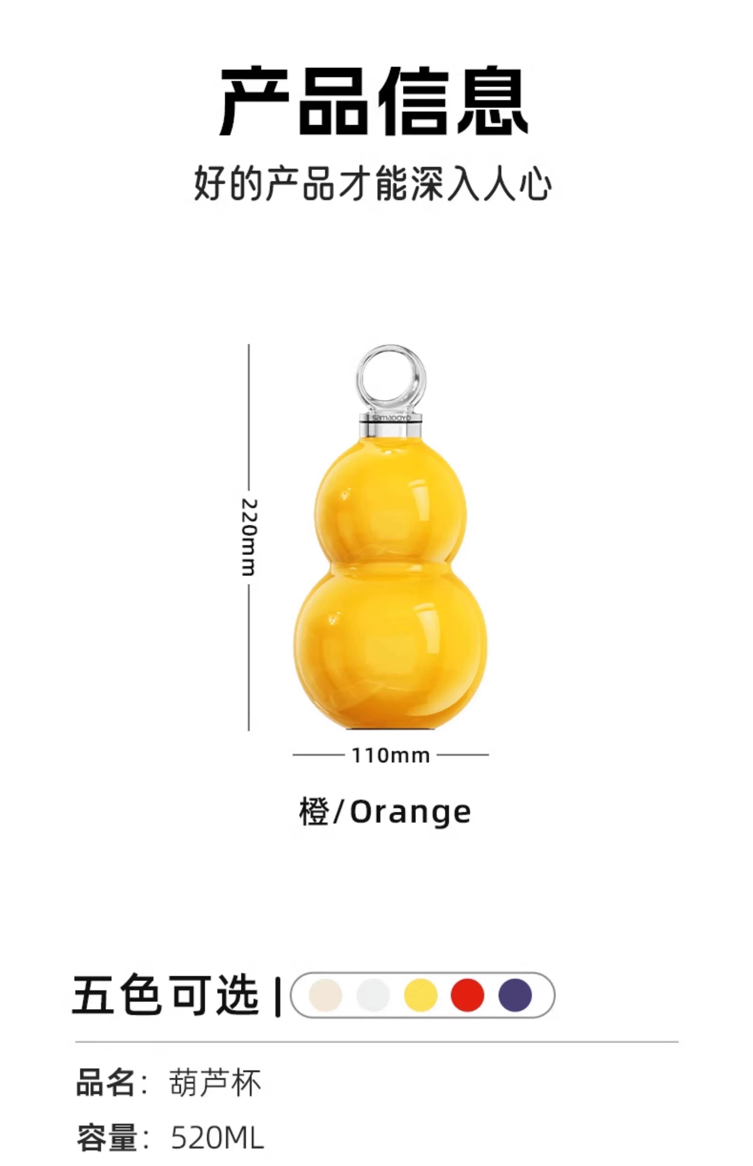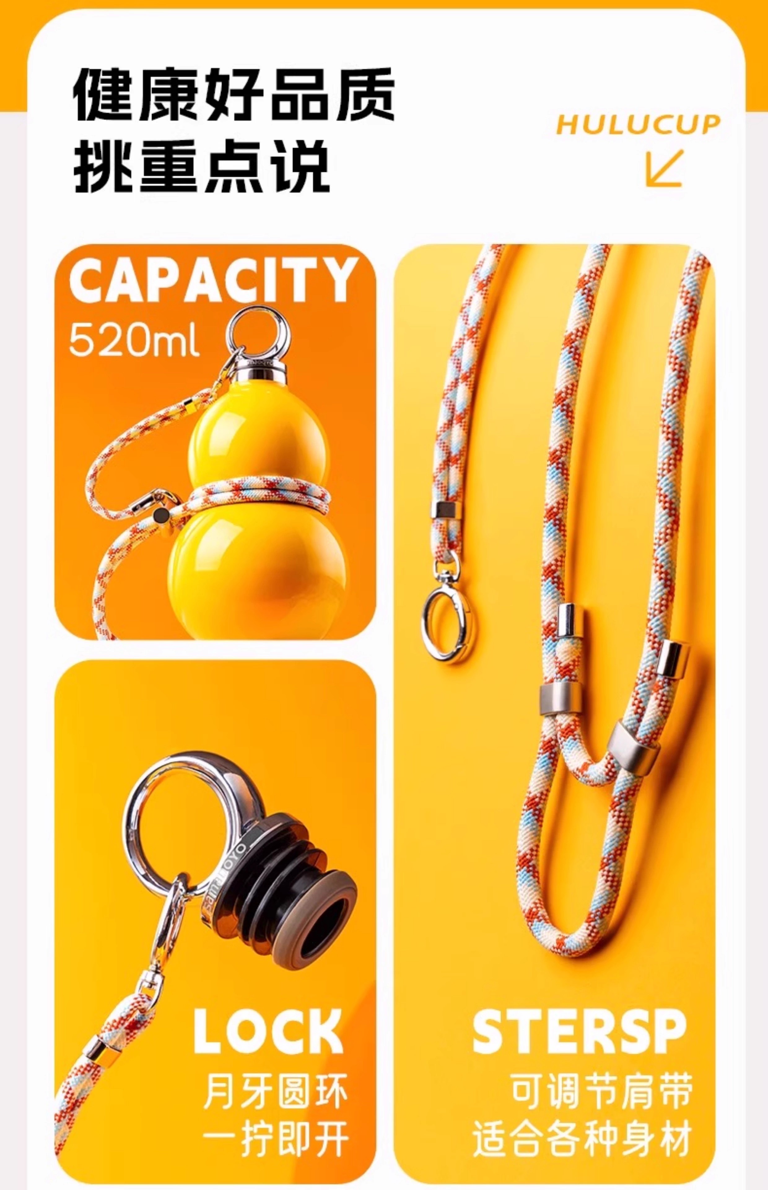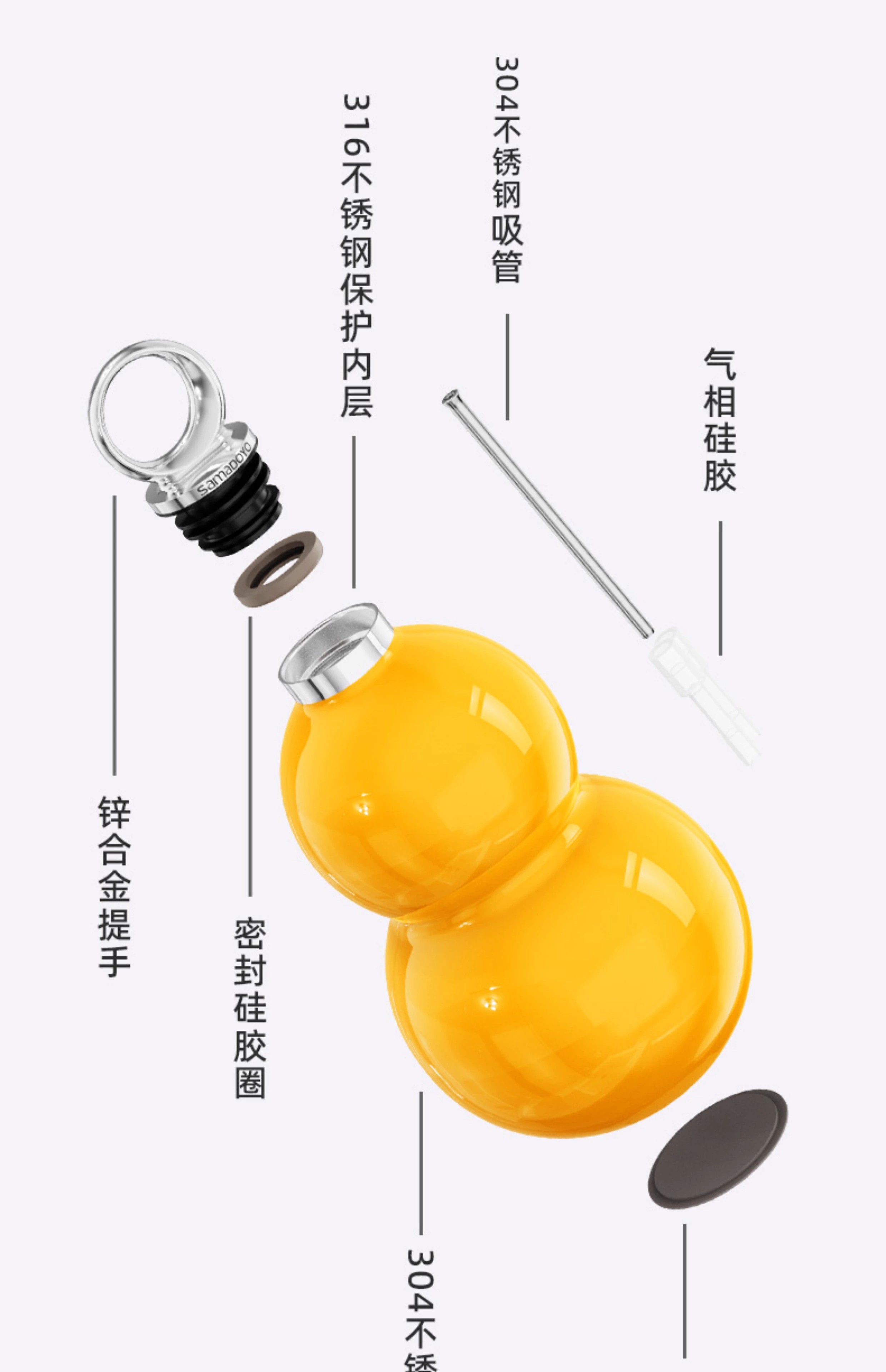 尚明葫芦保温杯水壶带吸管大容量户外国潮随行便携不锈钢水杯