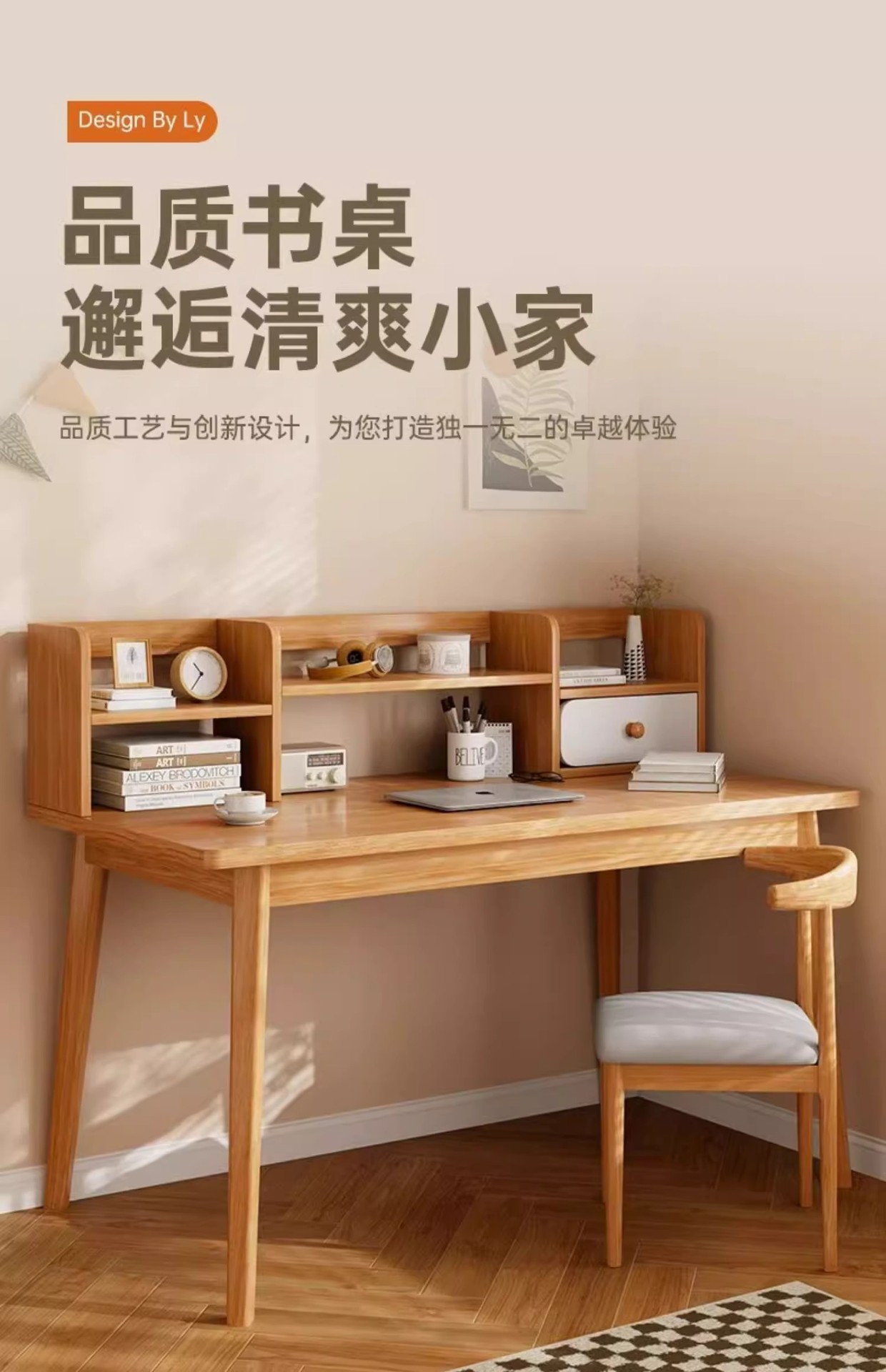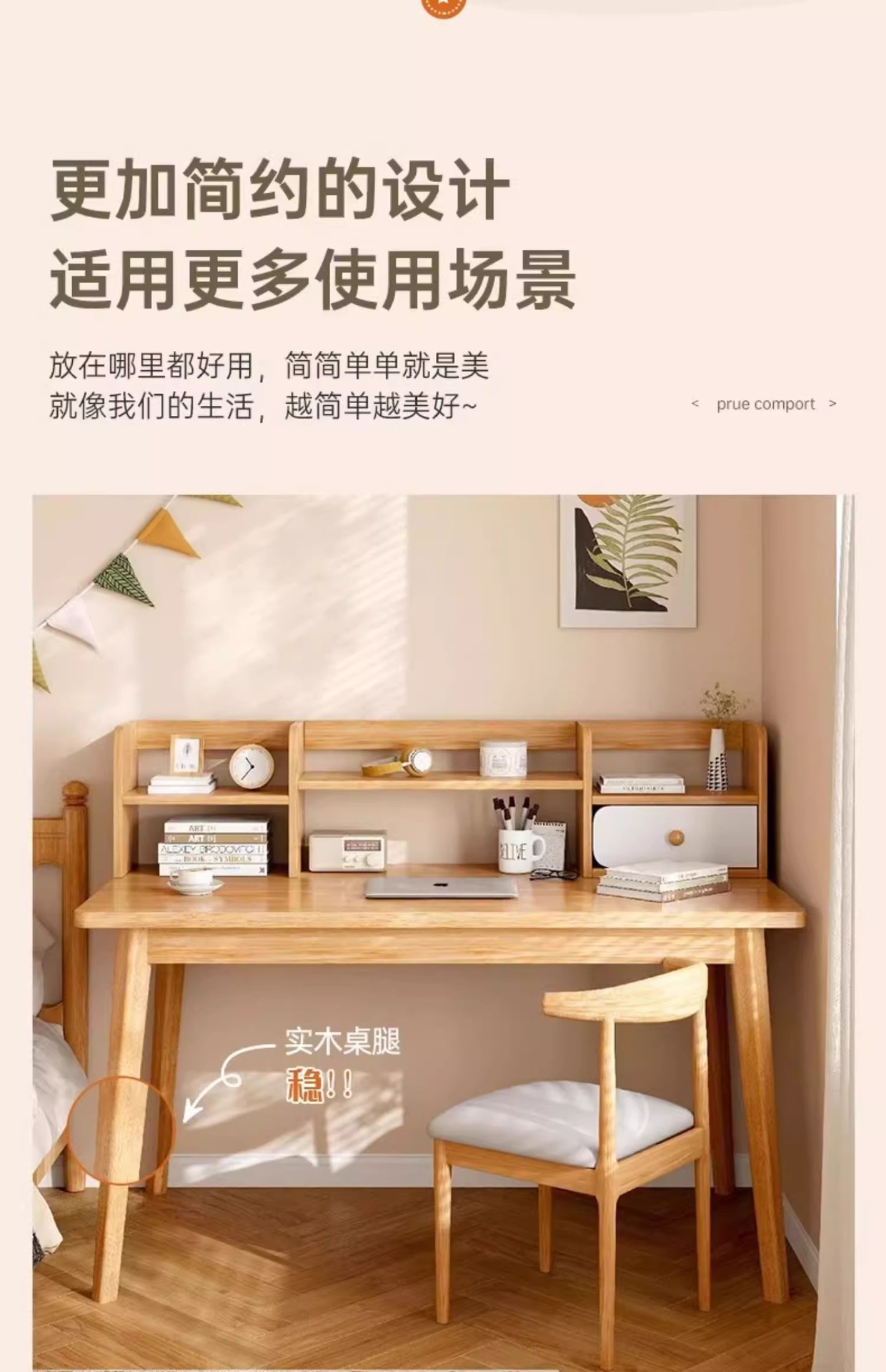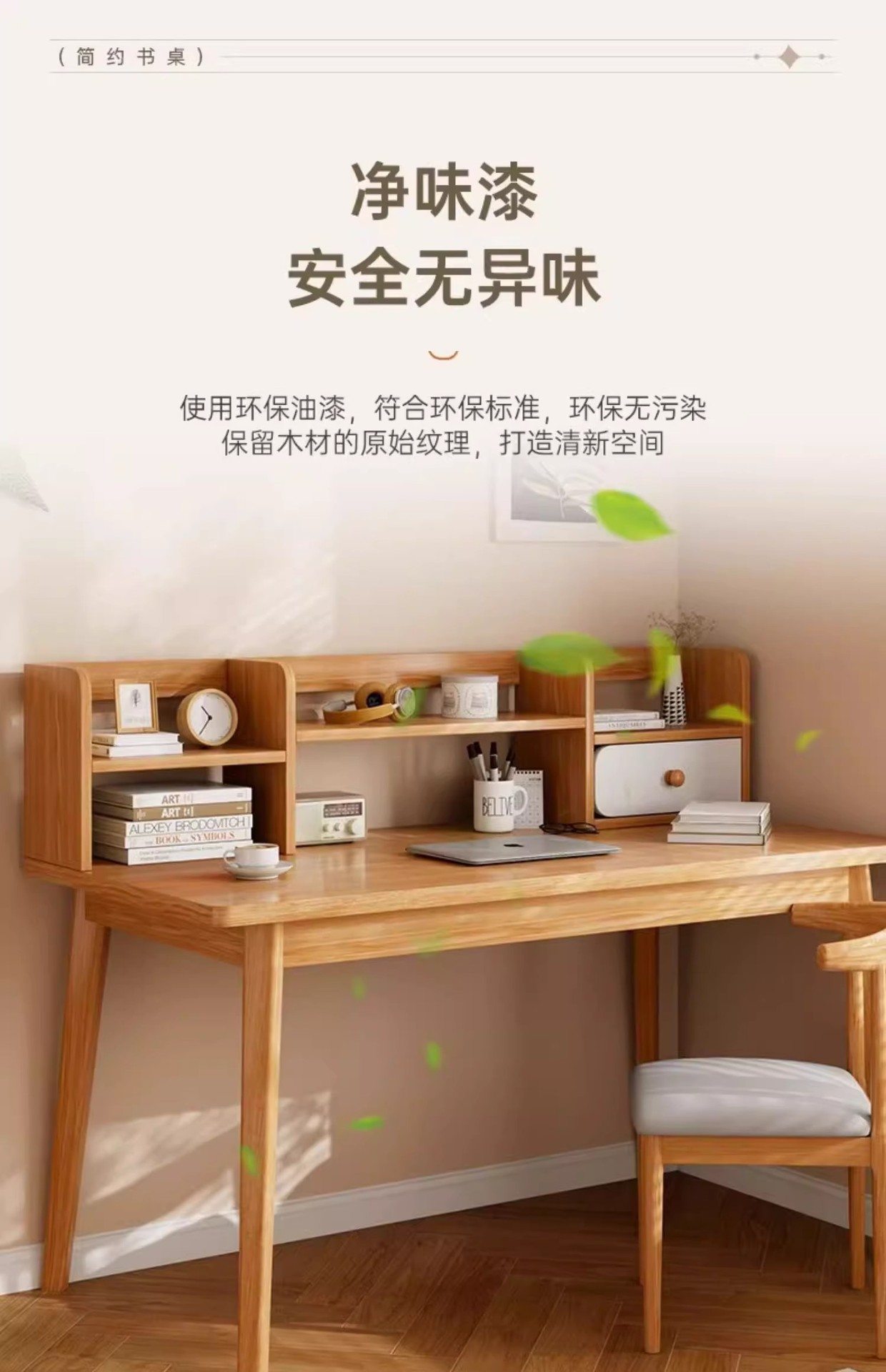 【臻选实木 简约美学习桌📚】臻选实木稳固更健康 不晃的学习神器!实木写字桌+书架一体,15分钟轻松安装✨书桌书架一体桌学生家用学习写字桌卧室台式电脑桌实木腿 办公桌子