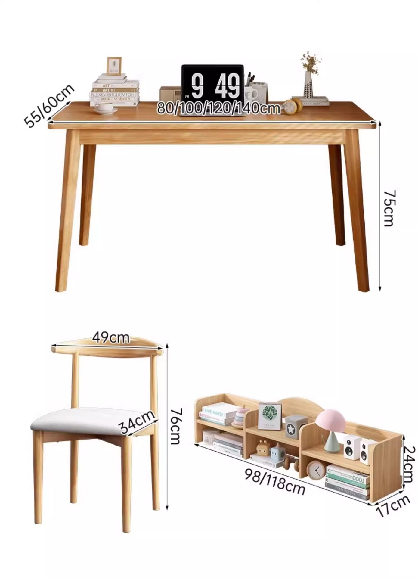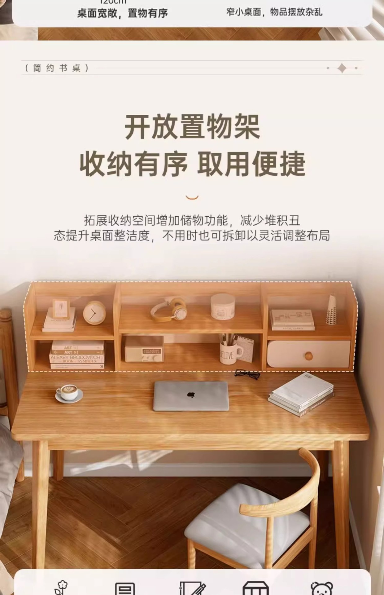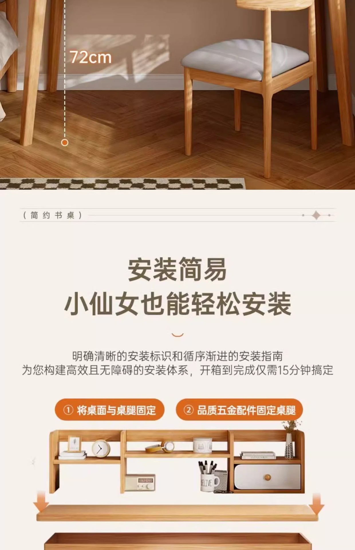 【臻选实木 简约美学习桌📚】臻选实木稳固更健康 不晃的学习神器!实木写字桌+书架一体,15分钟轻松安装✨书桌书架一体桌学生家用学习写字桌卧室台式电脑桌实木腿 办公桌子