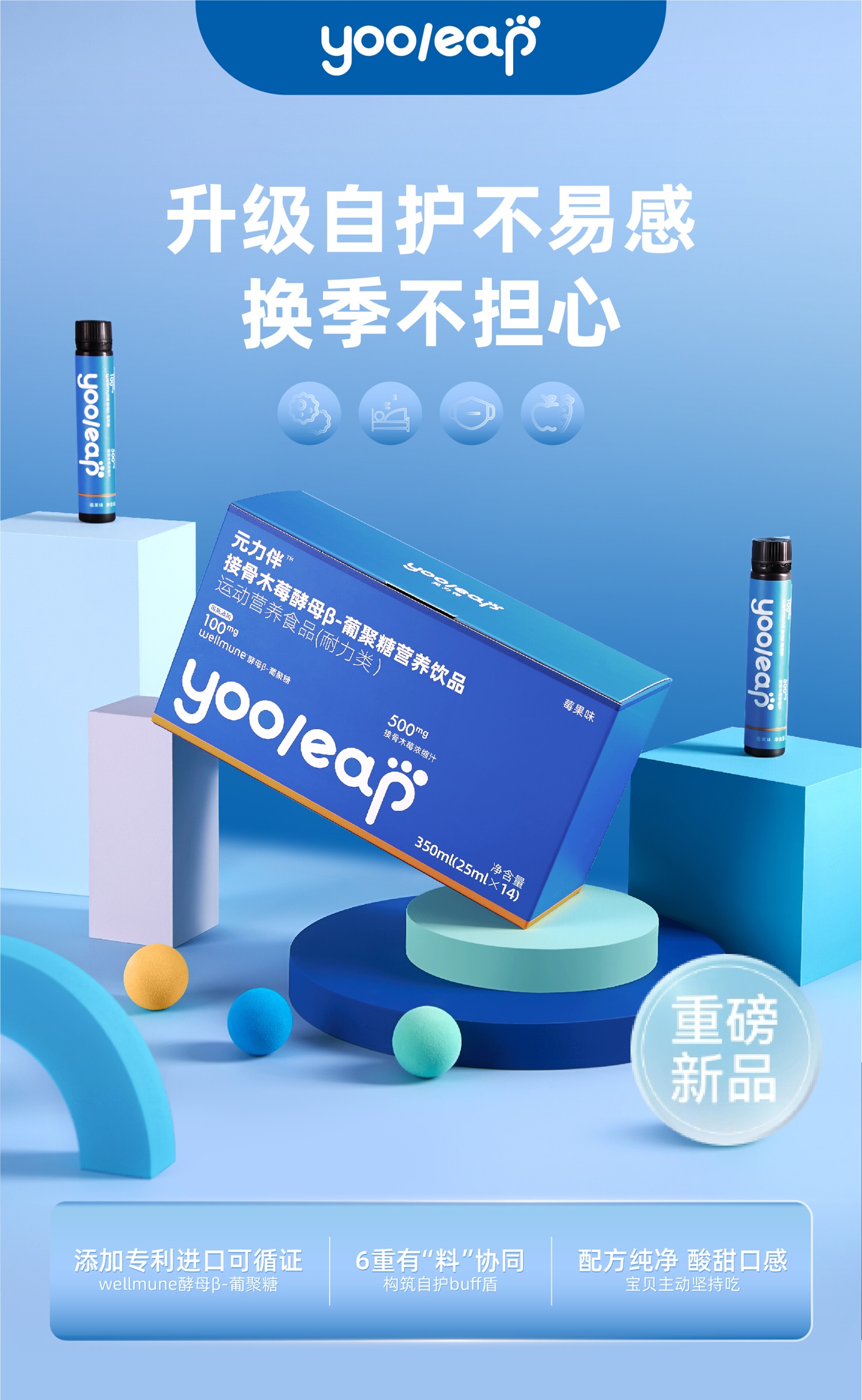 元力伴 液体酵母β葡聚糖接骨木莓营养矿物质维C果味饮