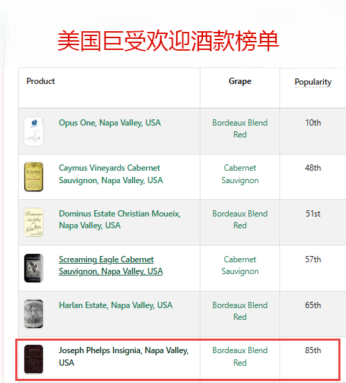 徽章:酒庄旗舰款,美国酒人气榜榜6;