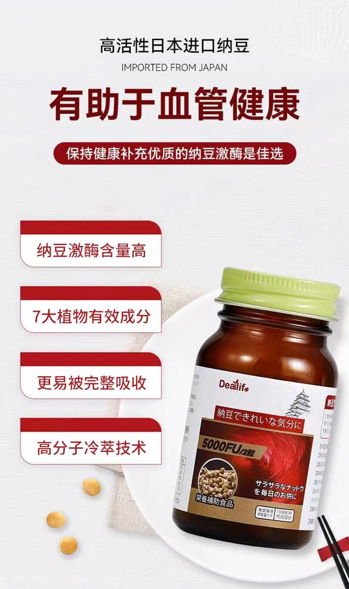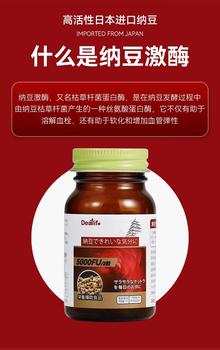 3-7天发货【自营】Dearlife 高活性日本进口 养生纳豆胶囊 30.9克 (515毫克*60粒)
