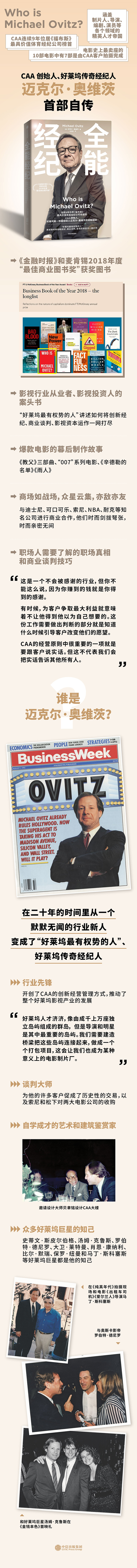 连续9年位居《福布斯》具价值体育经纪公司首的CAA创始人、好莱坞传奇经纪人迈克尔·奥维茨部自传《金融时报》和麦肯锡2018年度“佳商业图书奖”获奖图书