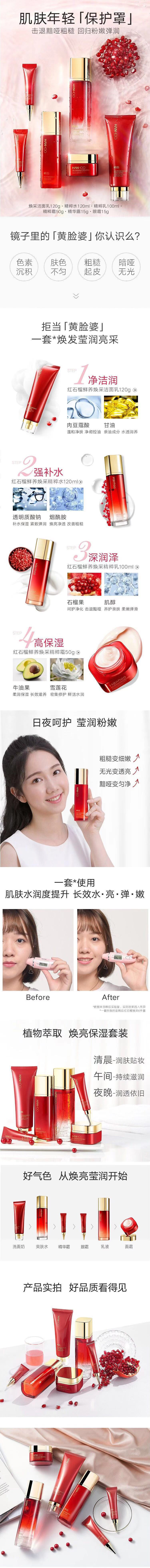 韩后Hanhoo红石榴鲜养焕采6件套 (洁面乳100g+水110ml+乳110ml+霜50g+精华15g+眼霜15g)