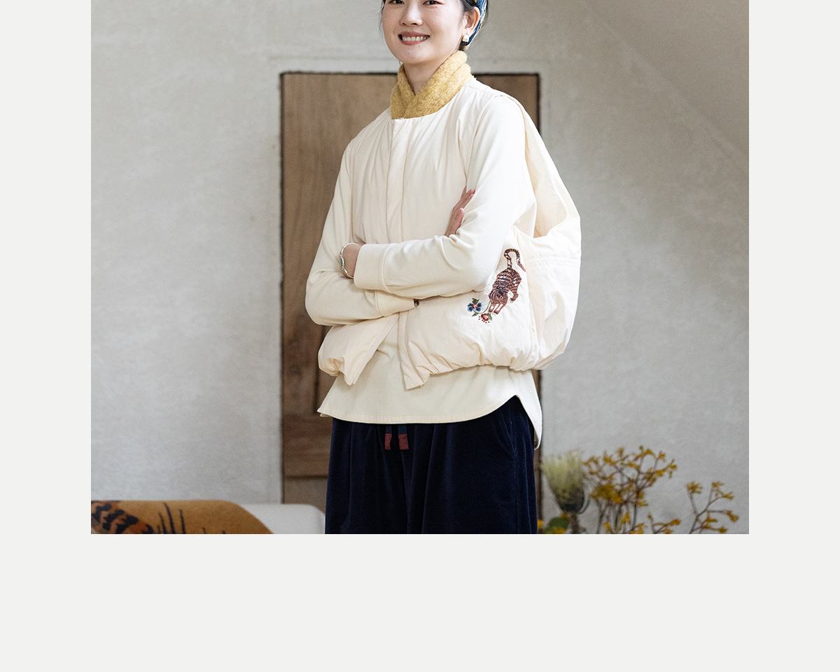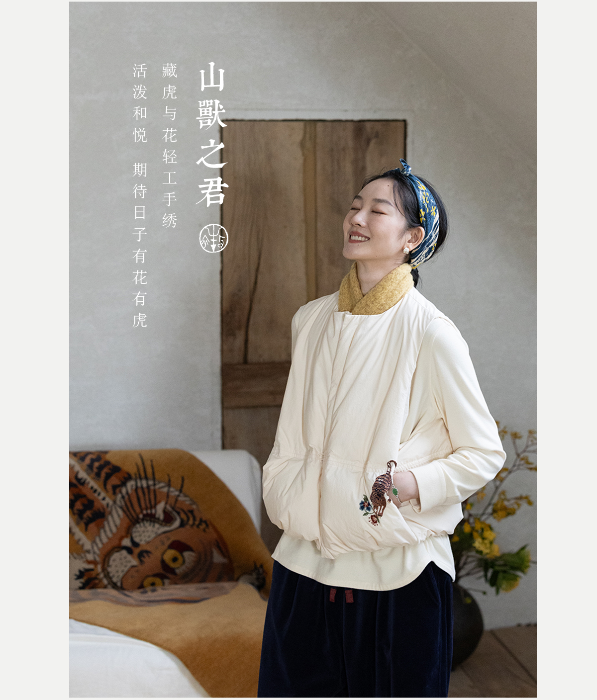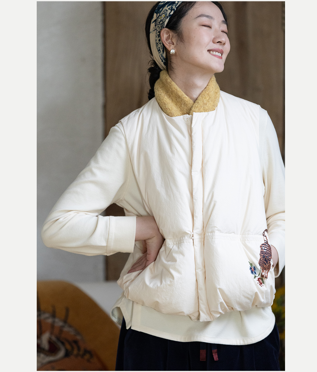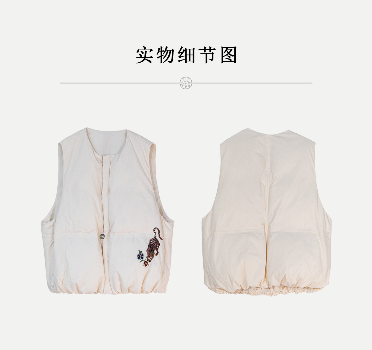 牧衣游原创 刺绣60支棉红嘴雁羽绒马夹蓬松保暖宽松百搭开衫 轻语