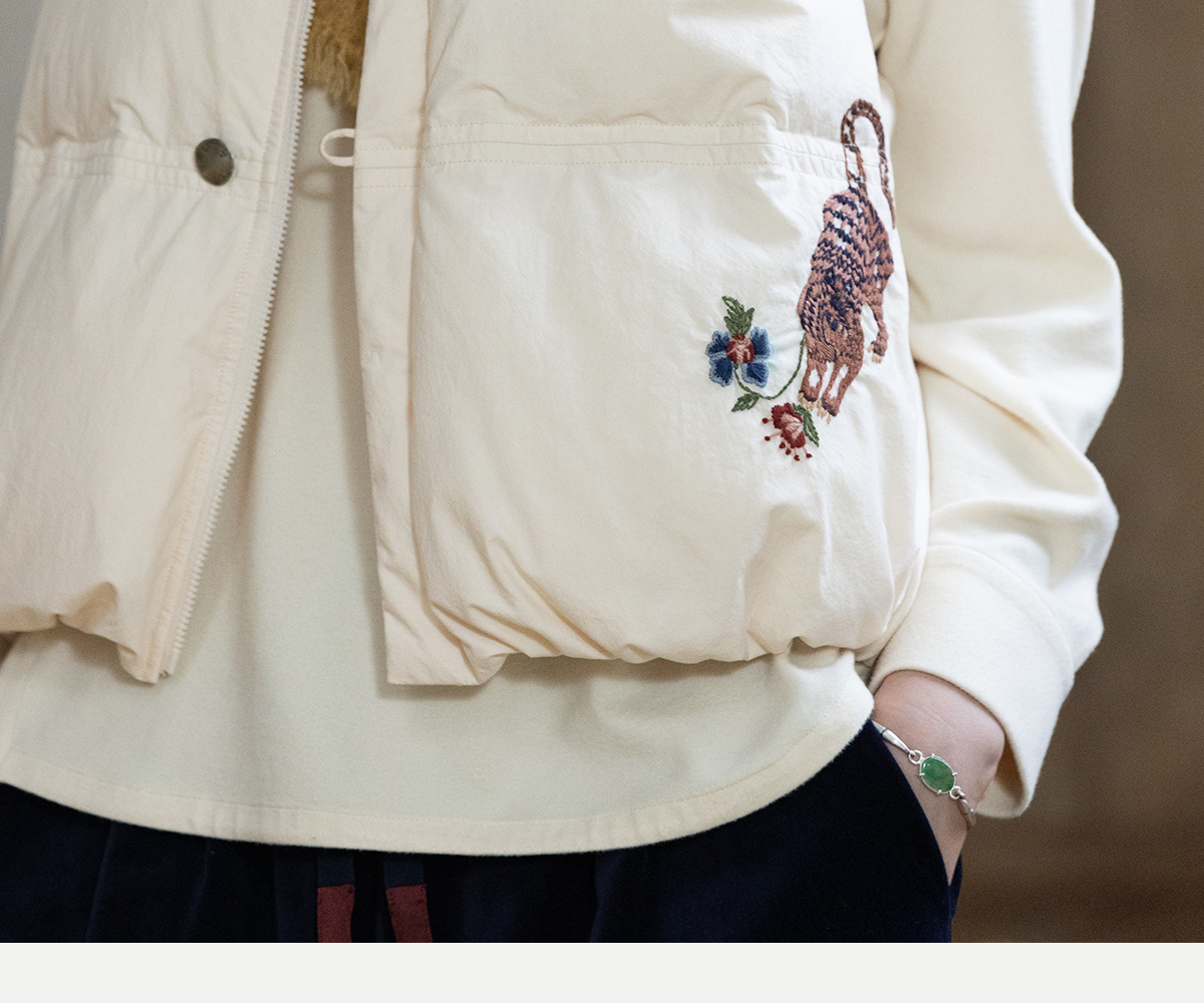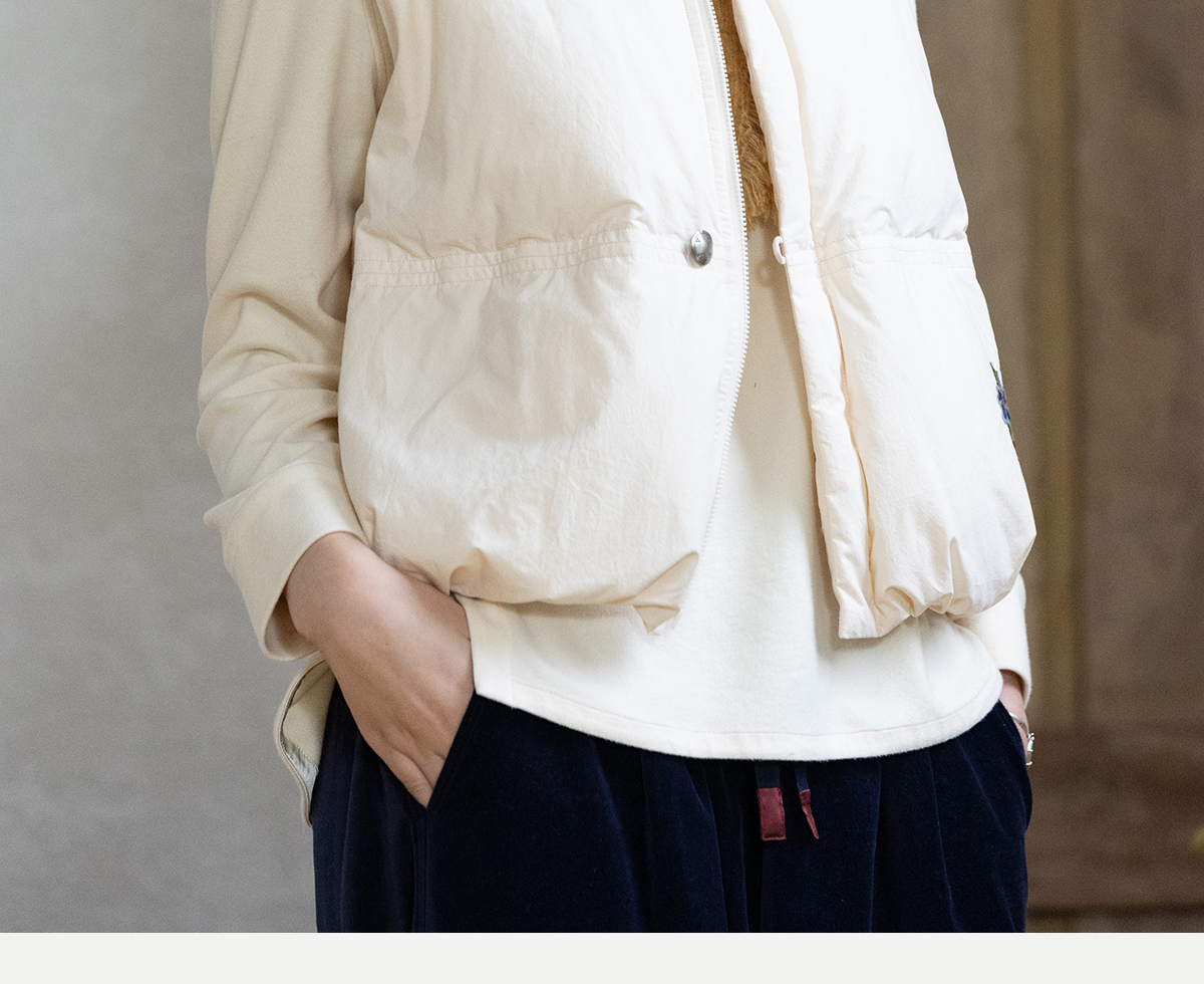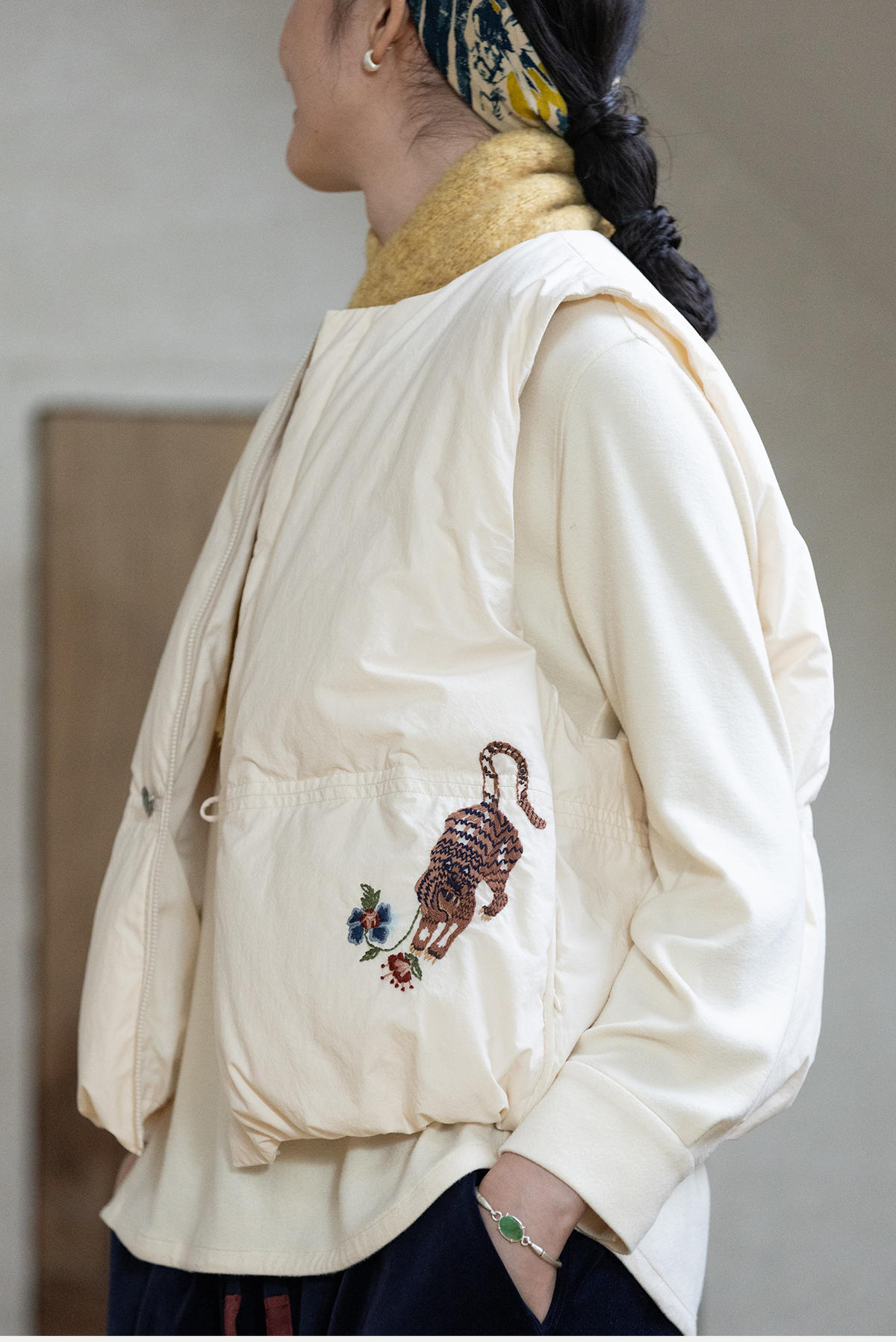 牧衣游原创 刺绣60支棉红嘴雁羽绒马夹蓬松保暖宽松百搭开衫 轻语