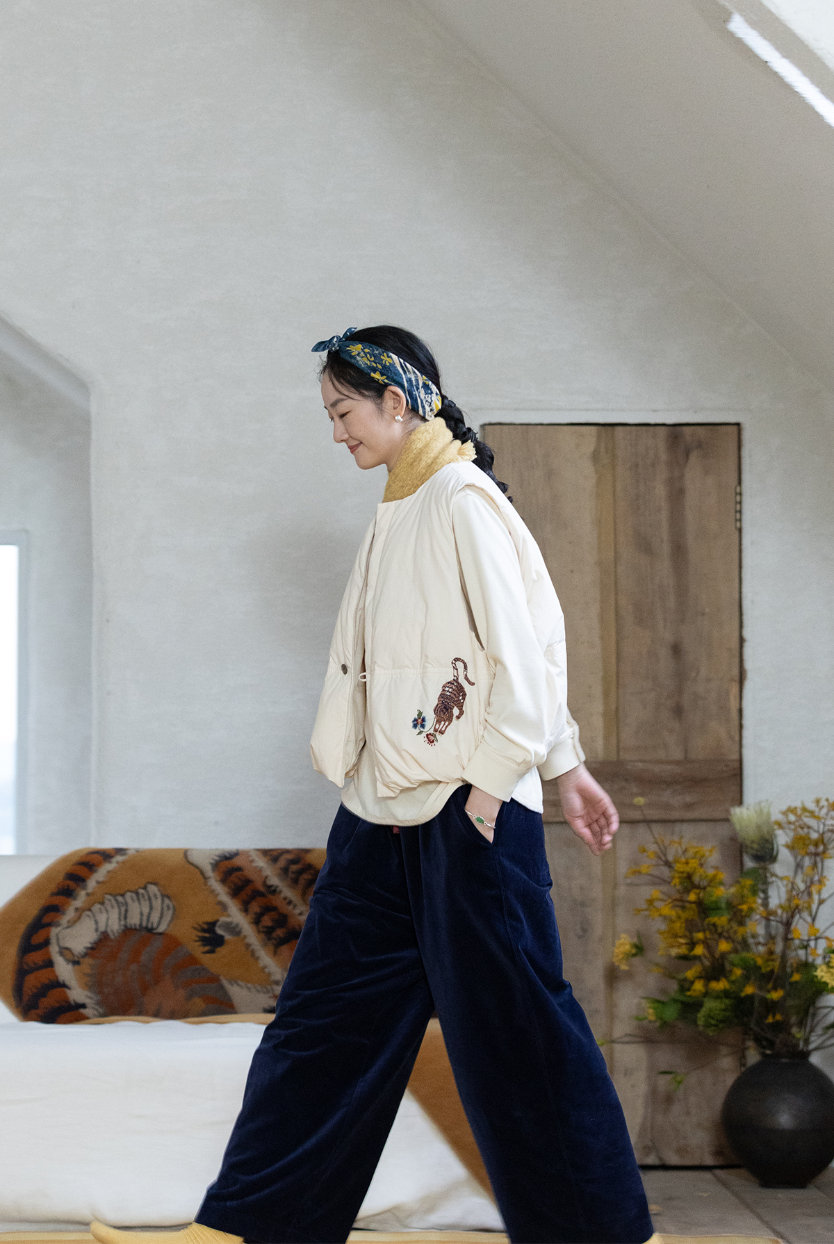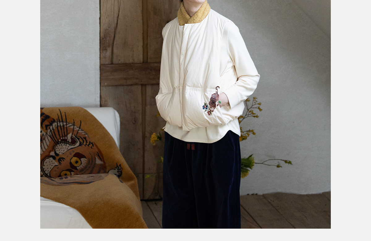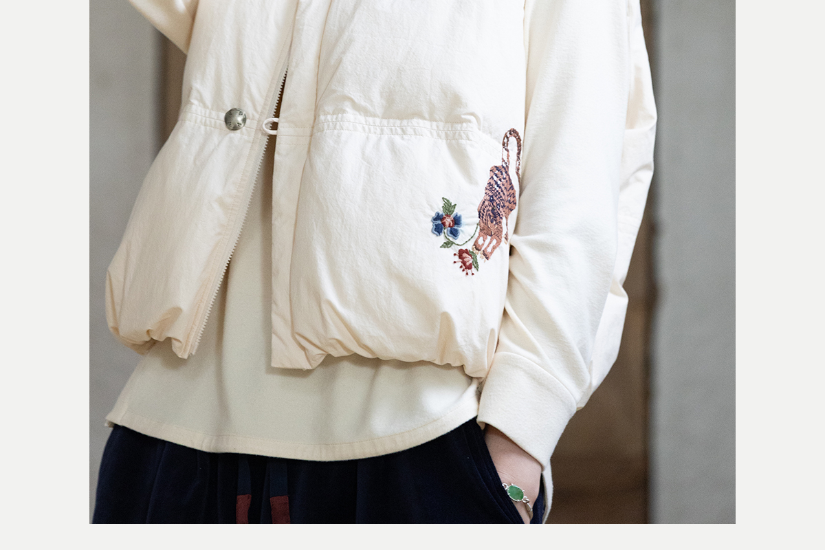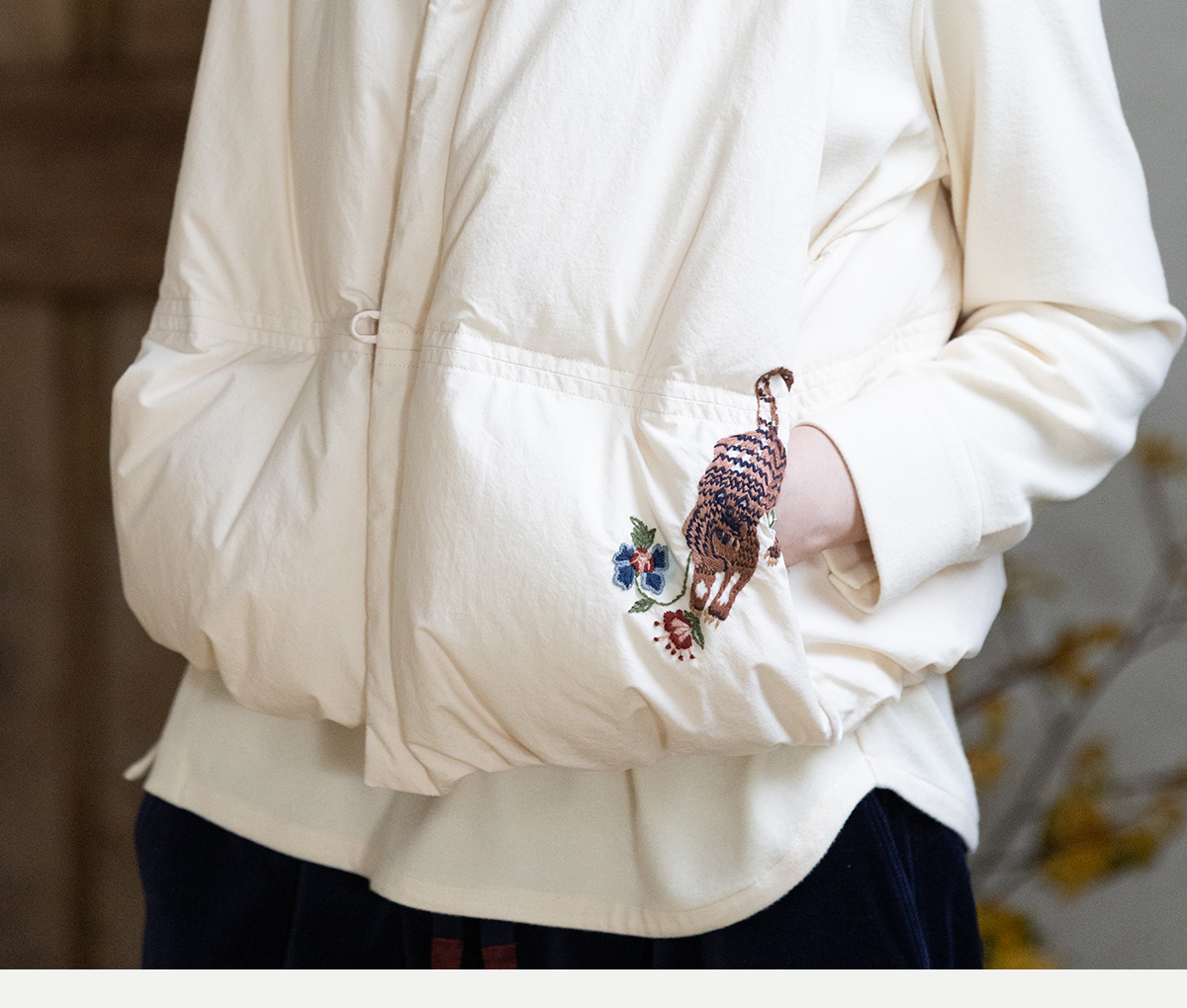 牧衣游原创 刺绣60支棉红嘴雁羽绒马夹蓬松保暖宽松百搭开衫 轻语