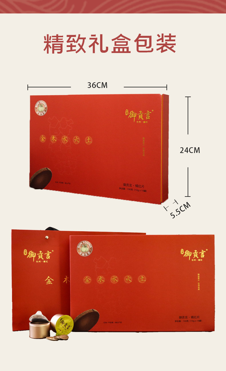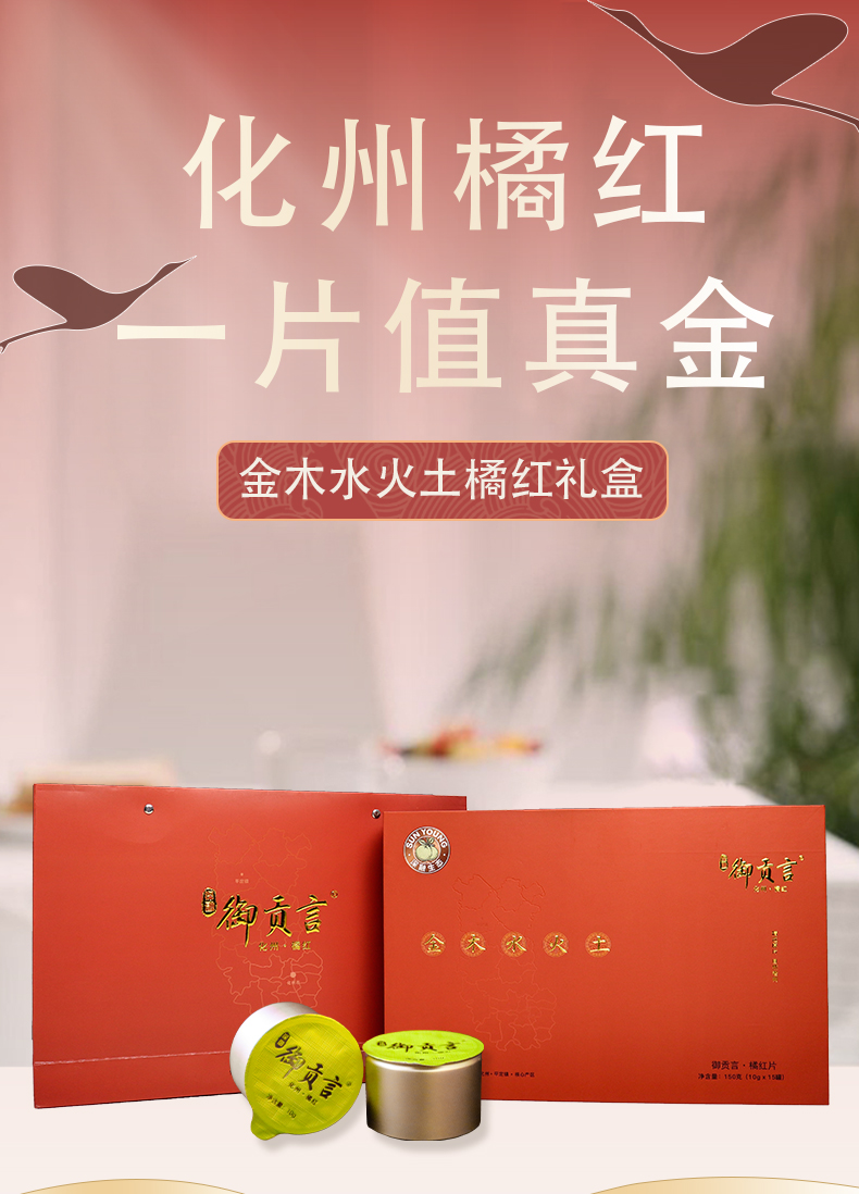 【茂名帮扶】御贡言丨橘红片 (金木水火土礼盒)150g(10g*15罐)