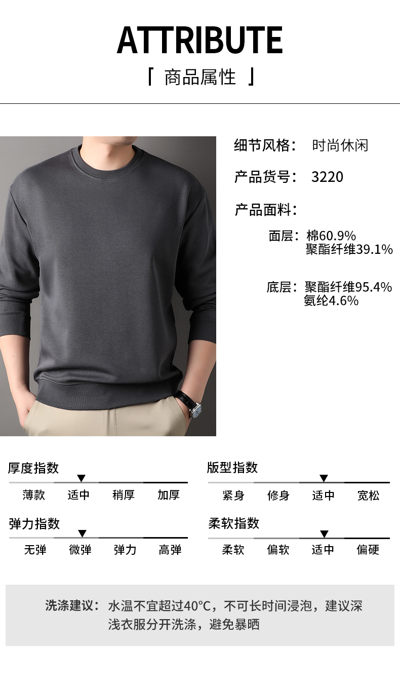 经典时尚休闲圆领卫衣 简约百搭打底套头衫修身显气质柔软舒适质感细腻透气亲肤