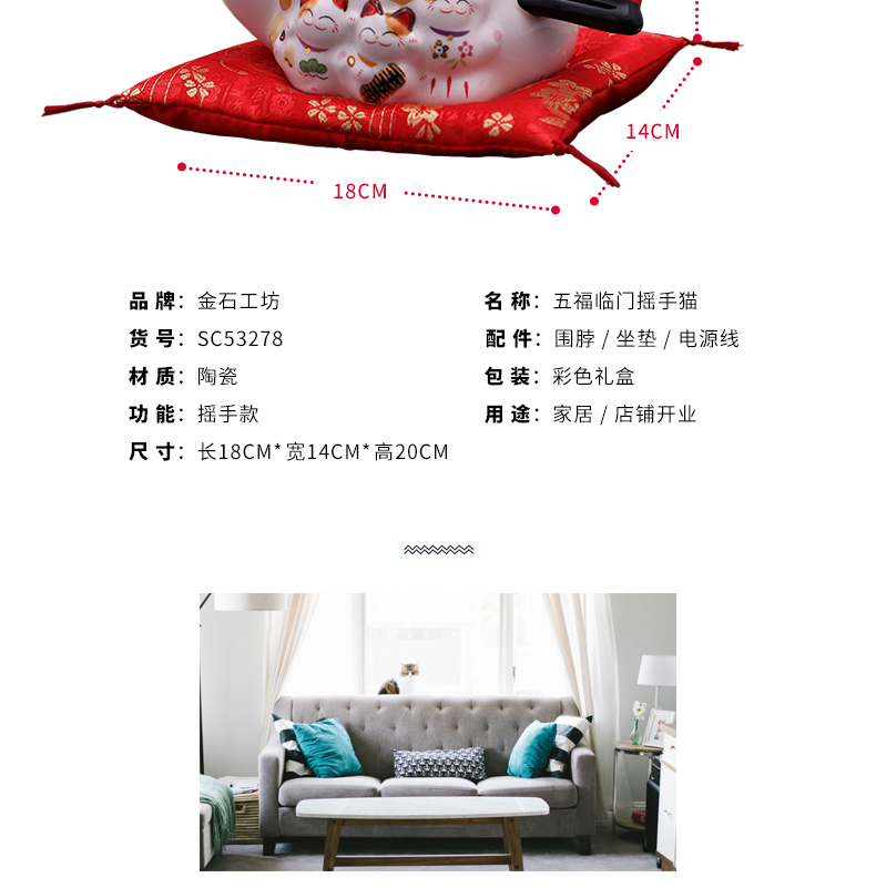 金石工坊招财猫摆件店铺开业创意礼品家居客厅发财猫自动右手摇手