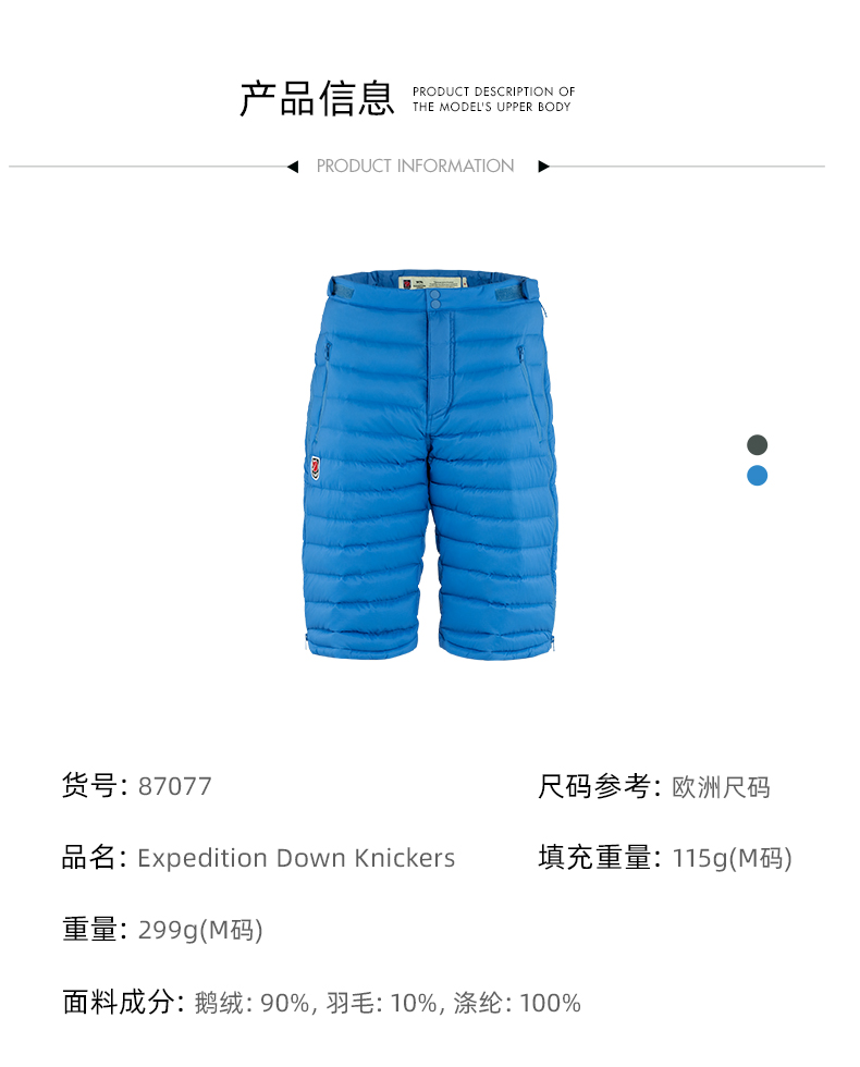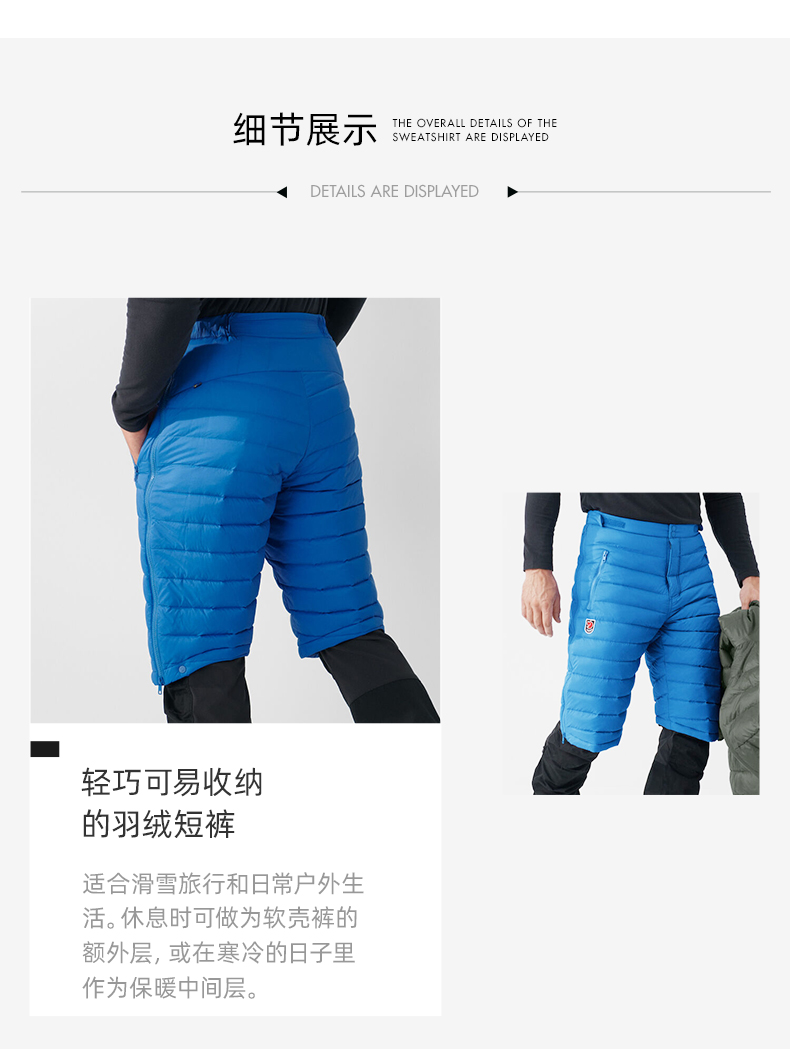 北极狐秋冬户外羽绒男短裤白鹅绒700蓬松度保暖轻便露营87077
