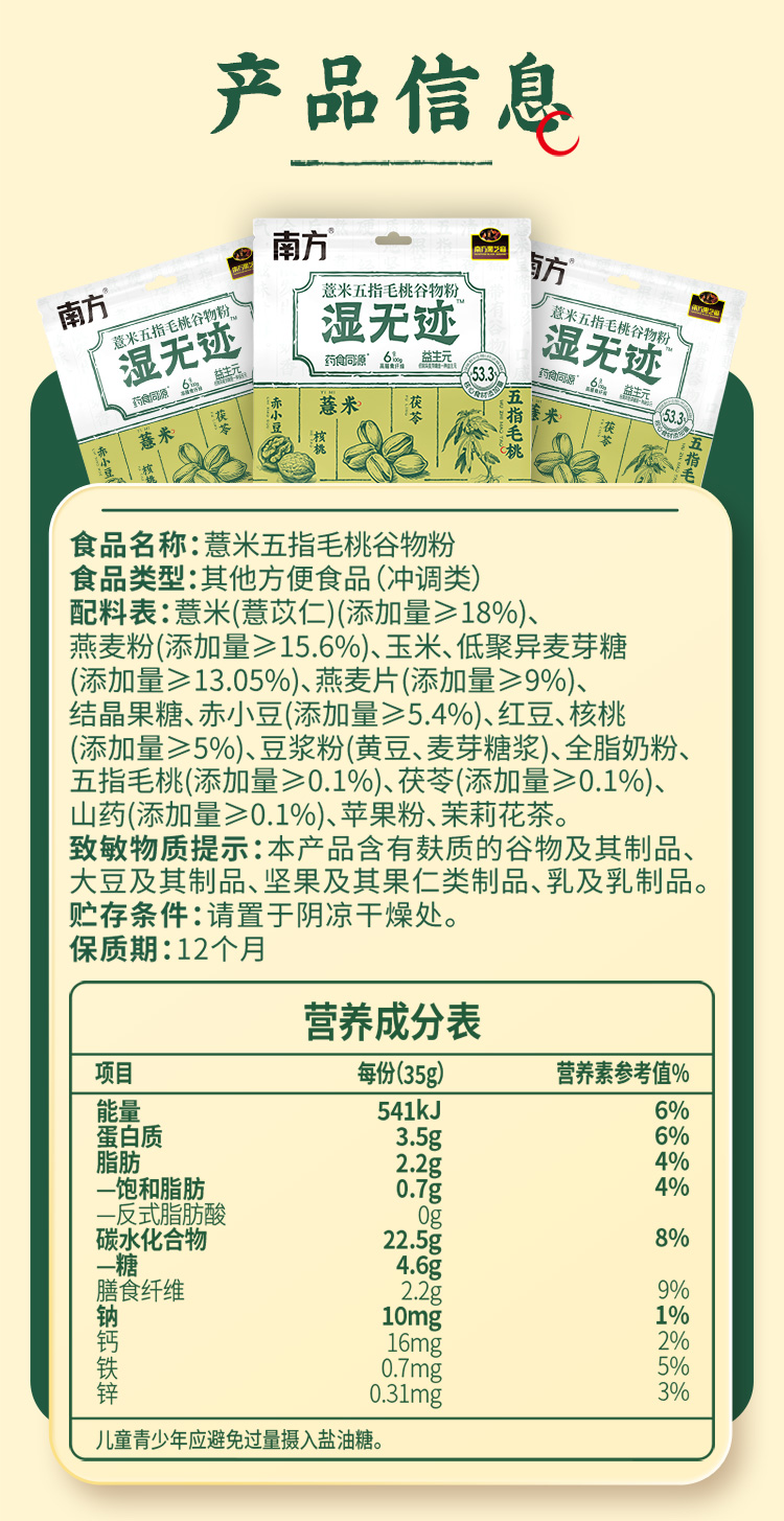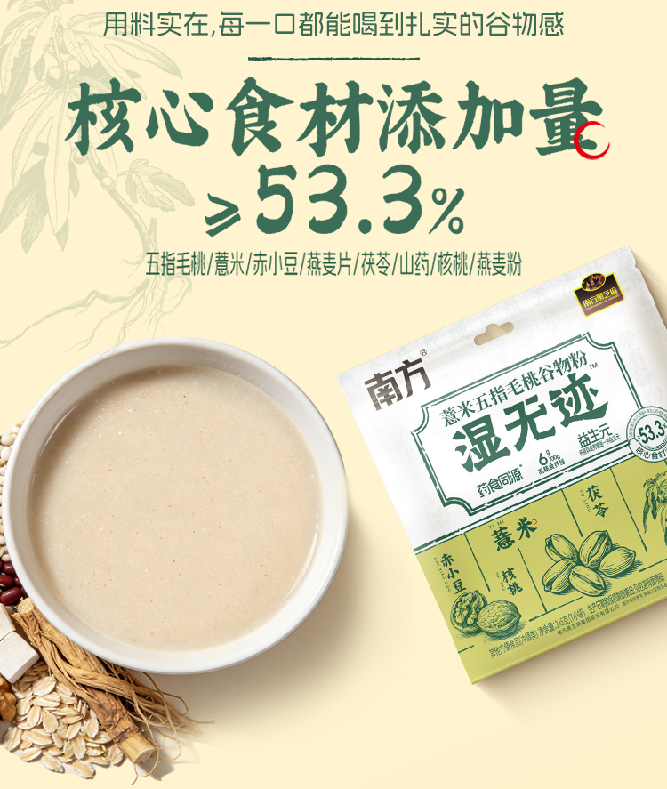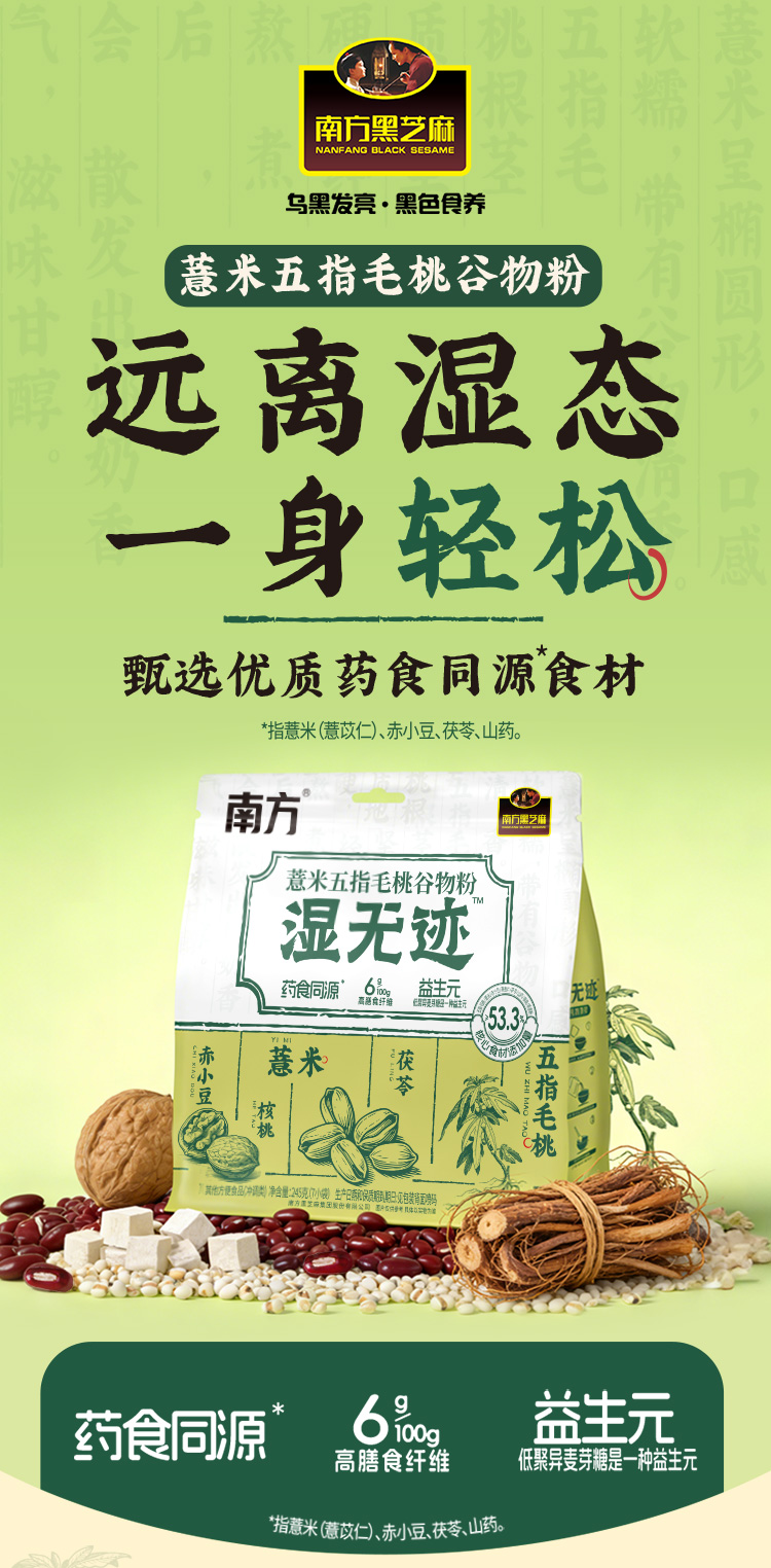 【新品上市】南方黑芝麻 湿无迹薏米五指毛桃谷物粉245g健康谷物营养早餐代餐